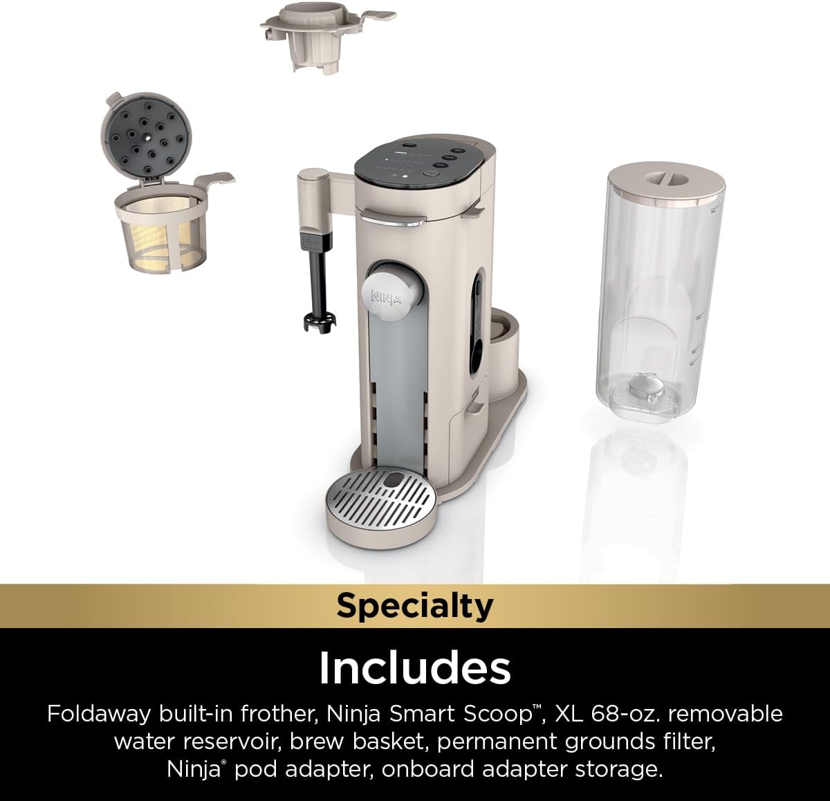 Ninja Pods & Grounds Single-Serve Coffee Maker, K-Cup Pod Compatible, Brews Grounds, Compact Design, 56-oz. Reservoir, 6-oz. Cup to 24-oz. Travel Mug Brew Sizes, Iced Coffee Maker, Stone, PB041ST