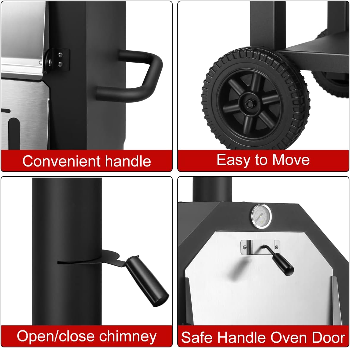 EDOSTORY Outdoor Pizza Oven, Wood Fired for Outside, Patio Maker With Stone, Peel, Grill Rack, and Waterproof Cover for Backyard Camping