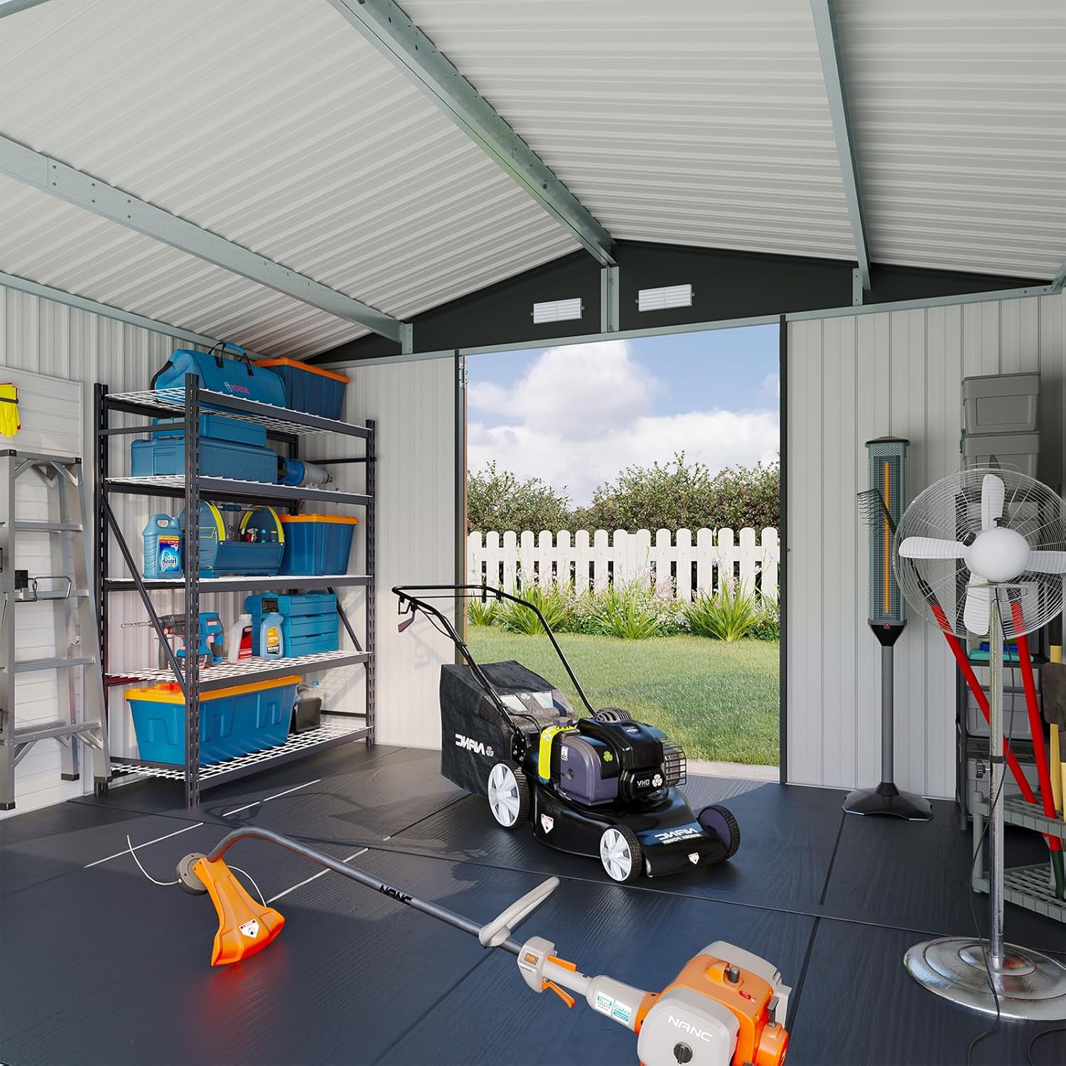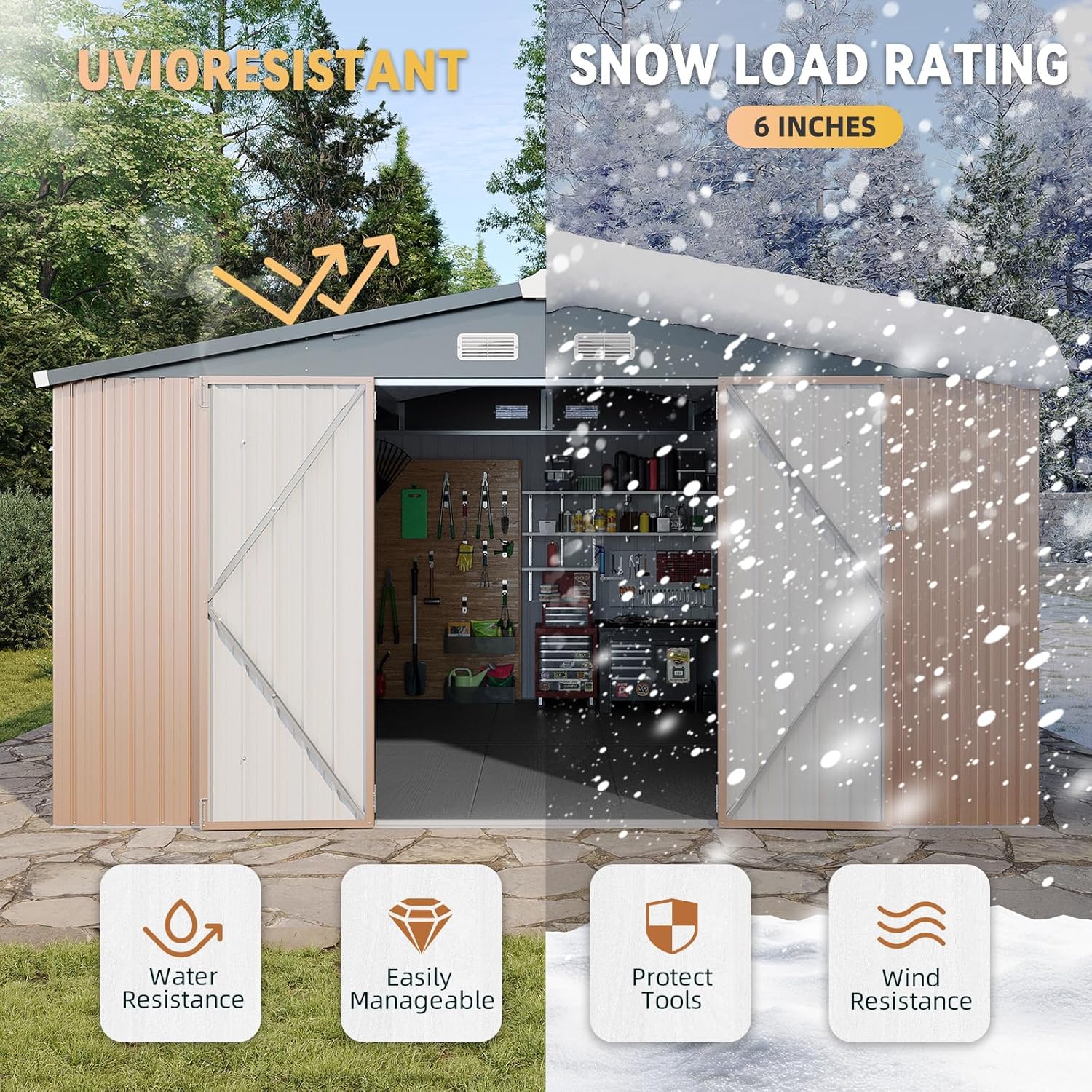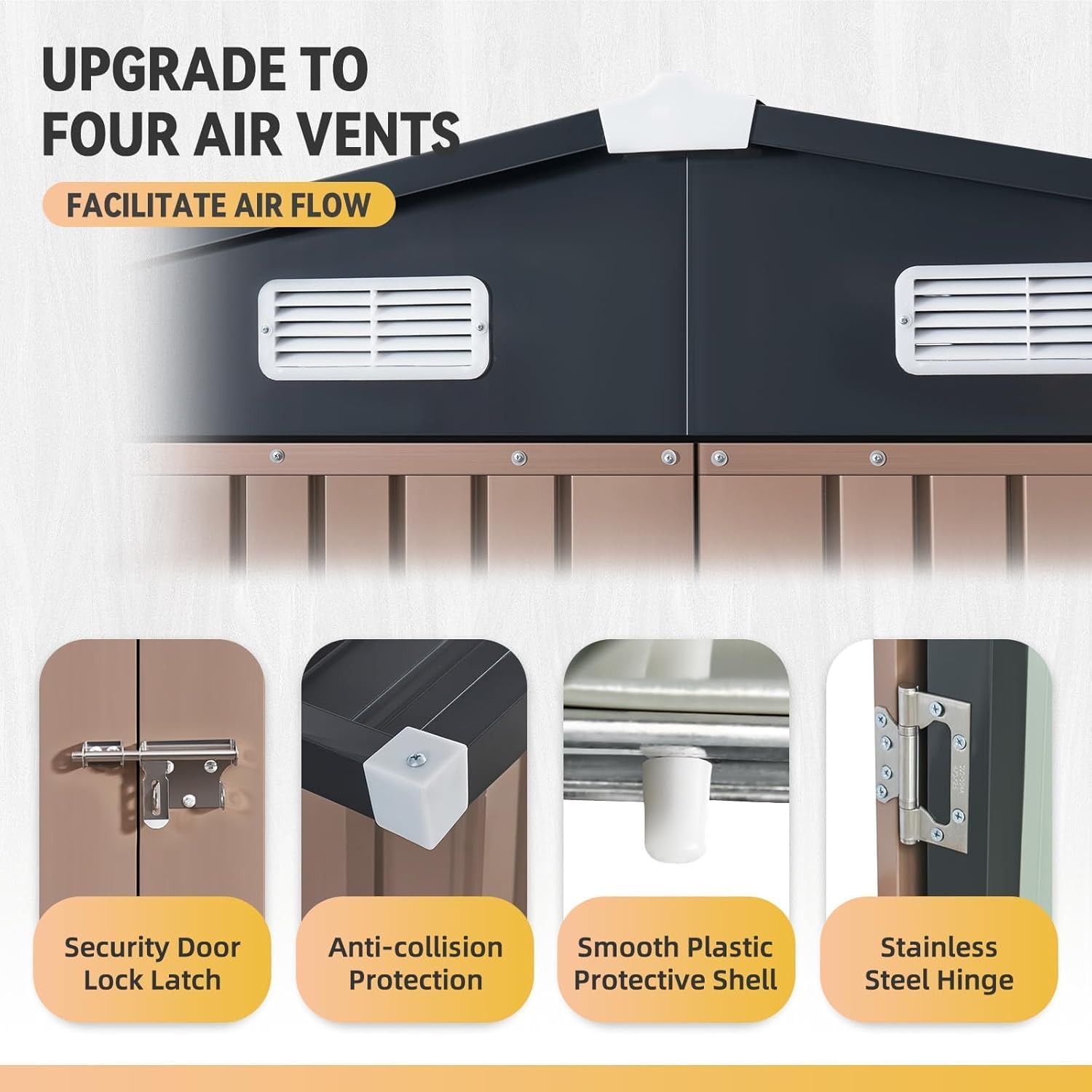 Aoxun 7.4x5.3FT Shed with Floor Galvanized Steel Outdoor Storage Shed Metal Garden Shed with Double Doors, 15mm Moisture-Proof Floor & Ventilation, Sloped Roof for Bike/Generator/Tool Storage (Brown)