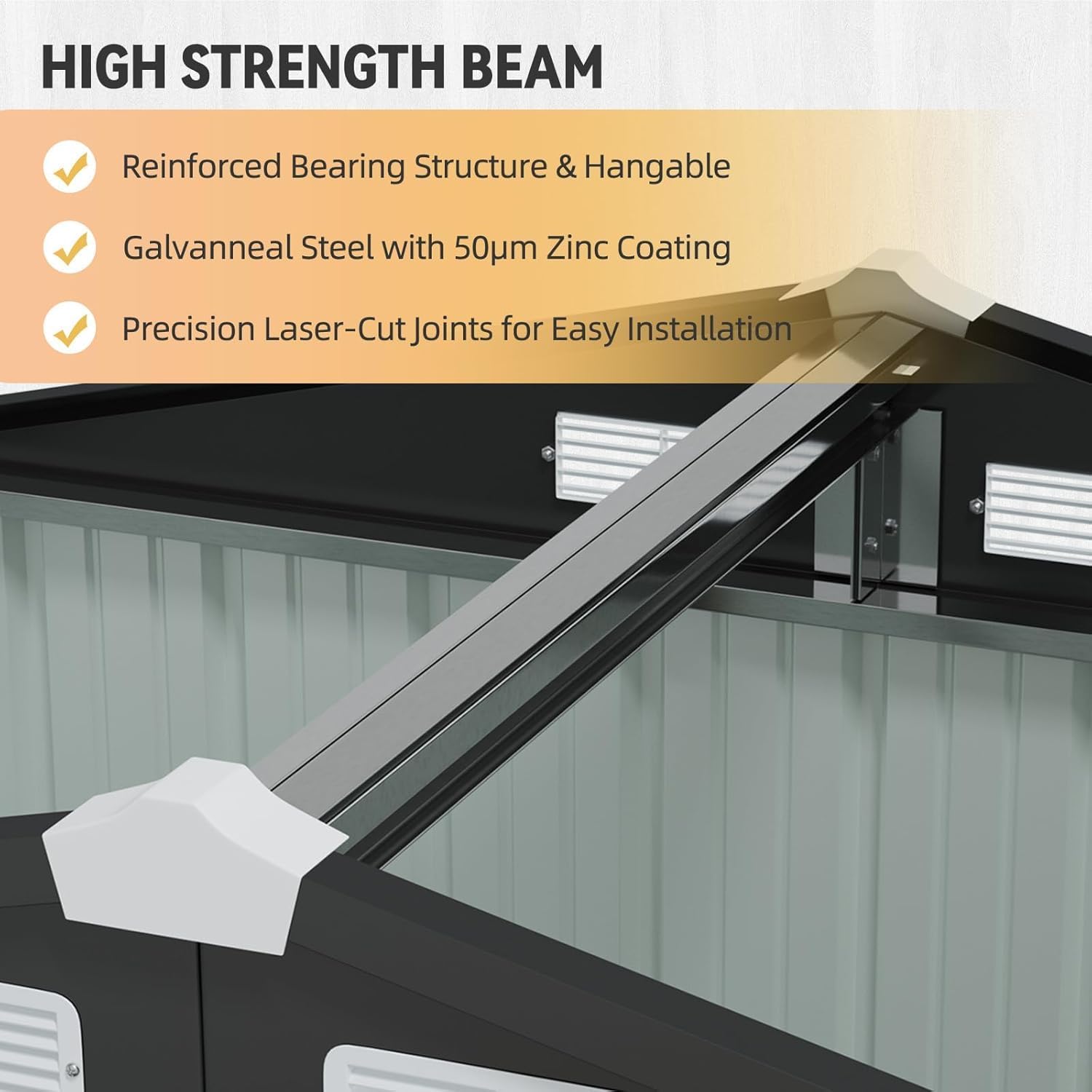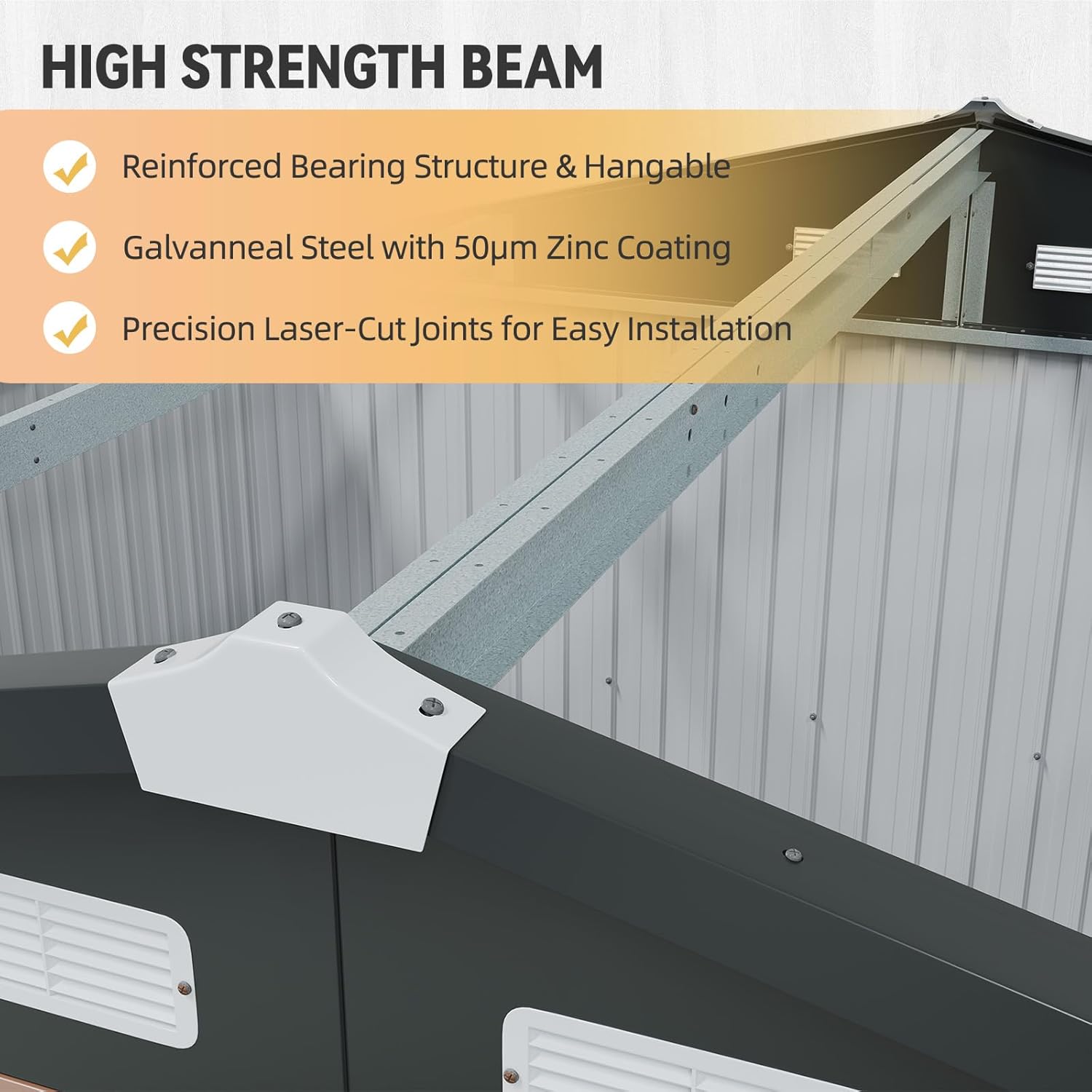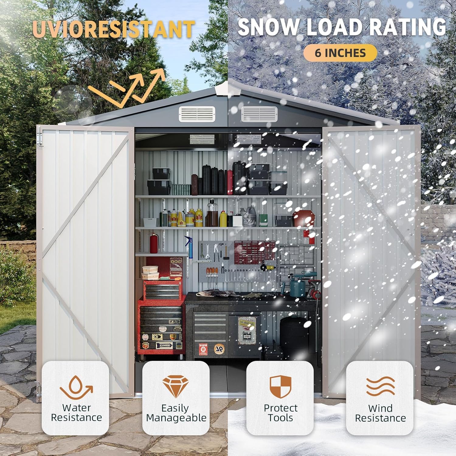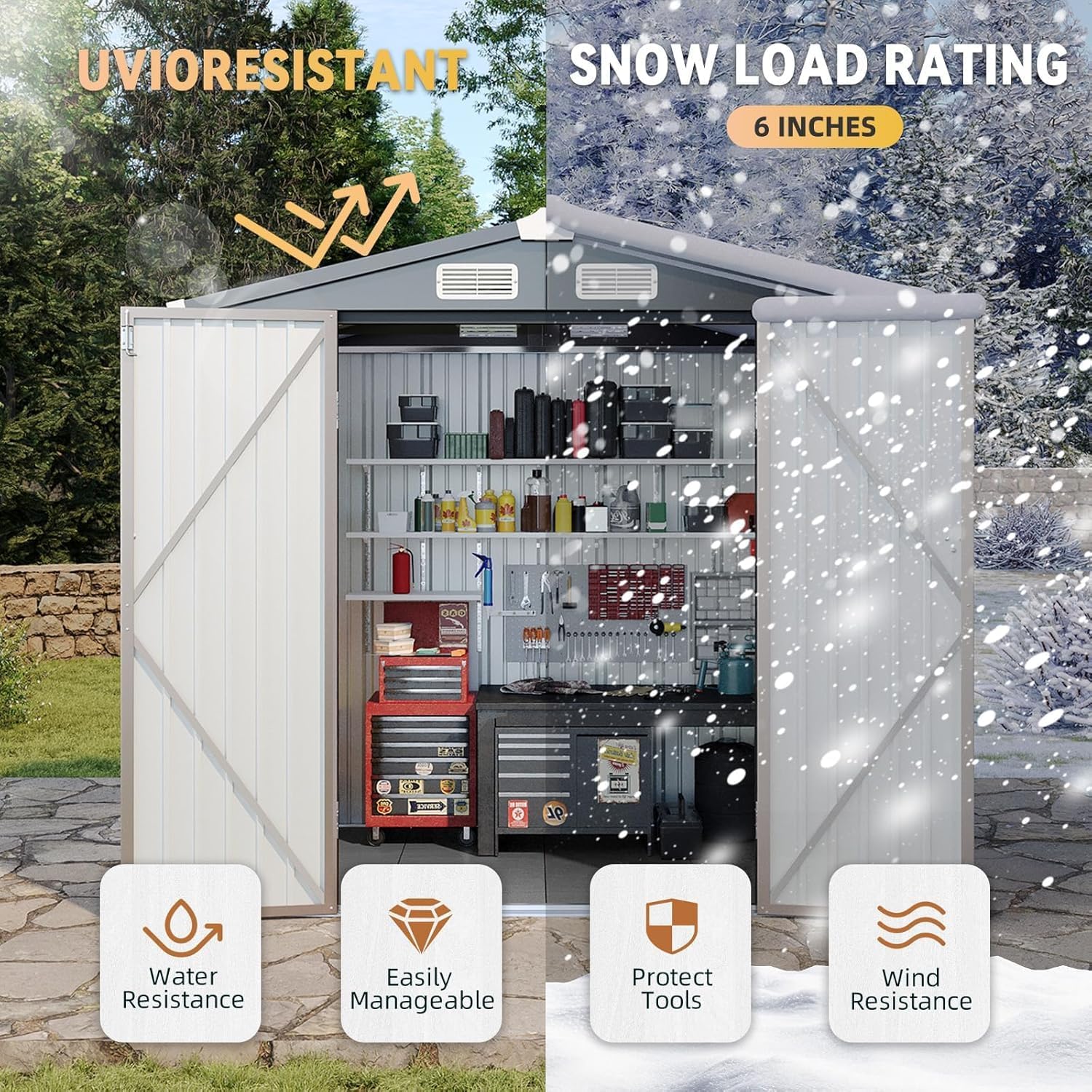 Aoxun 7.4x5.3FT Shed with Floor Galvanized Steel Outdoor Storage Shed Metal Garden Shed with Double Doors, 15mm Moisture-Proof Floor & Ventilation, Sloped Roof for Bike/Generator/Tool Storage (Brown)