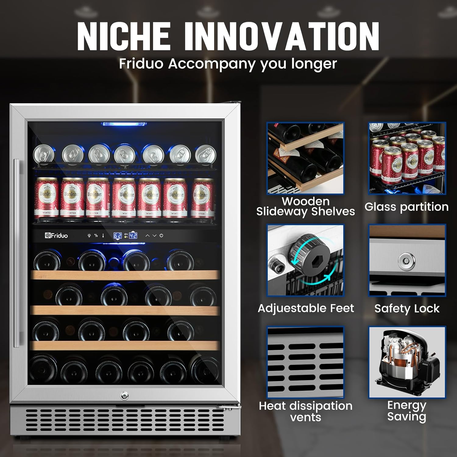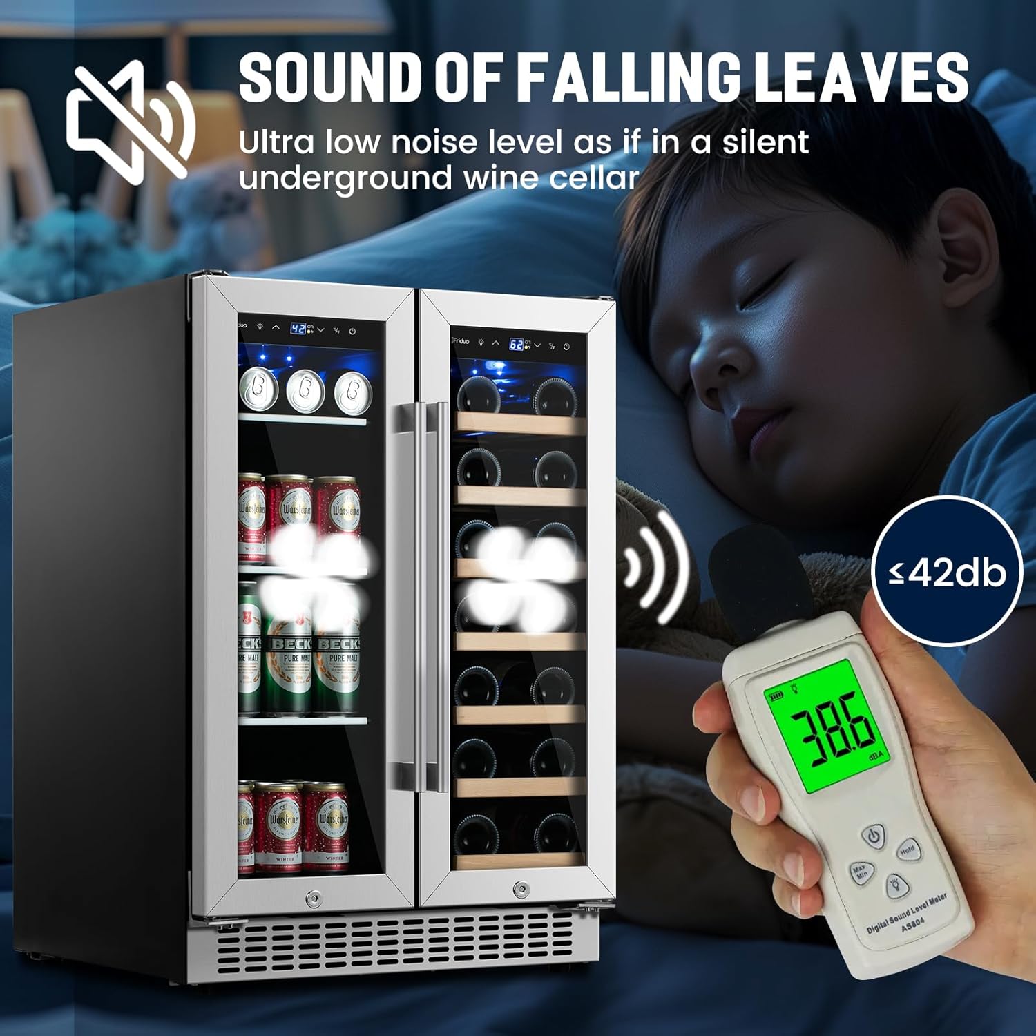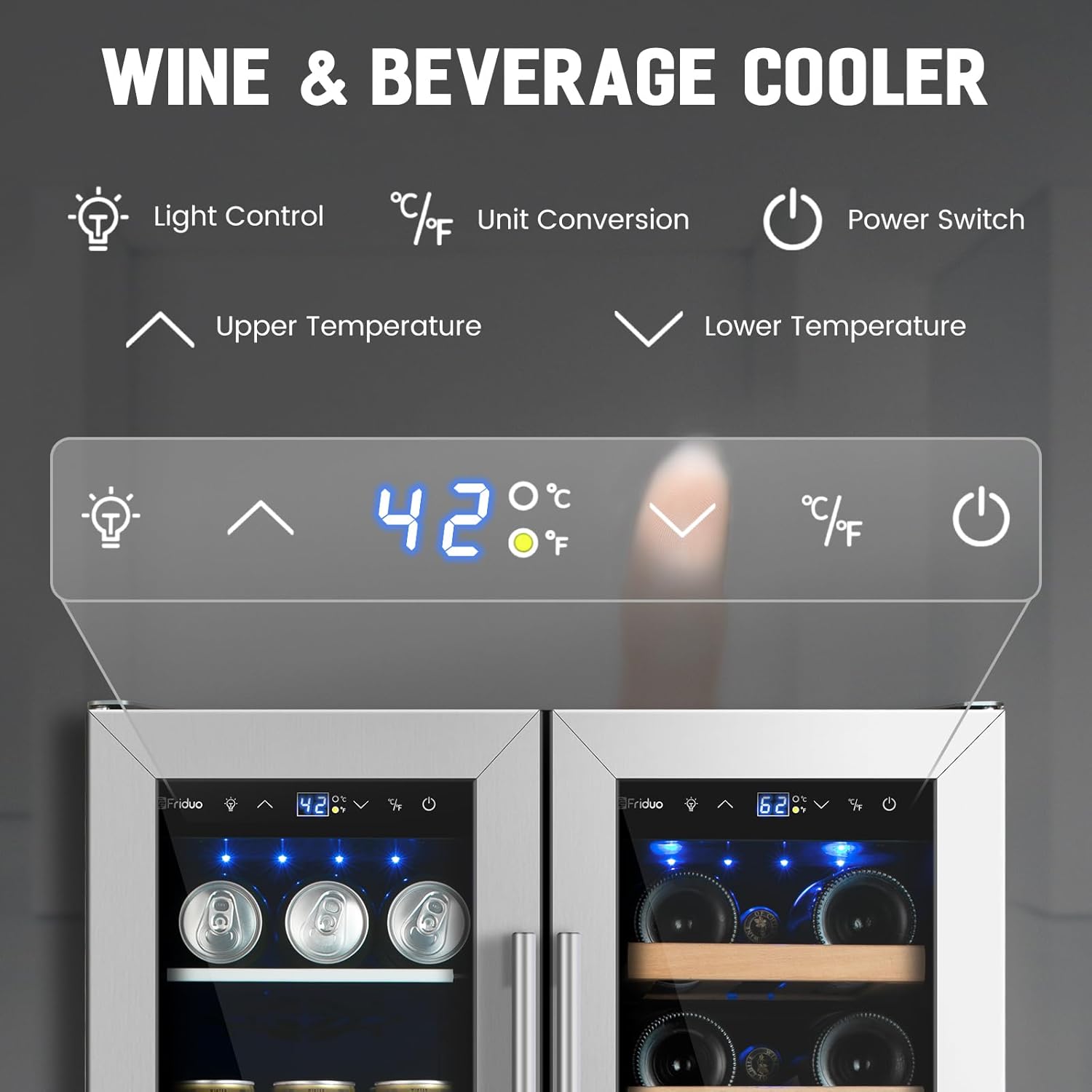 24 inch Dual Zone Beverage Refrigerator, 30 Bottles & 82 Cans Wine Fridge Built-in or Freestanding with Glass Door, Wine and Beverage Refrigerator Cooler for Kitchen Home Bar