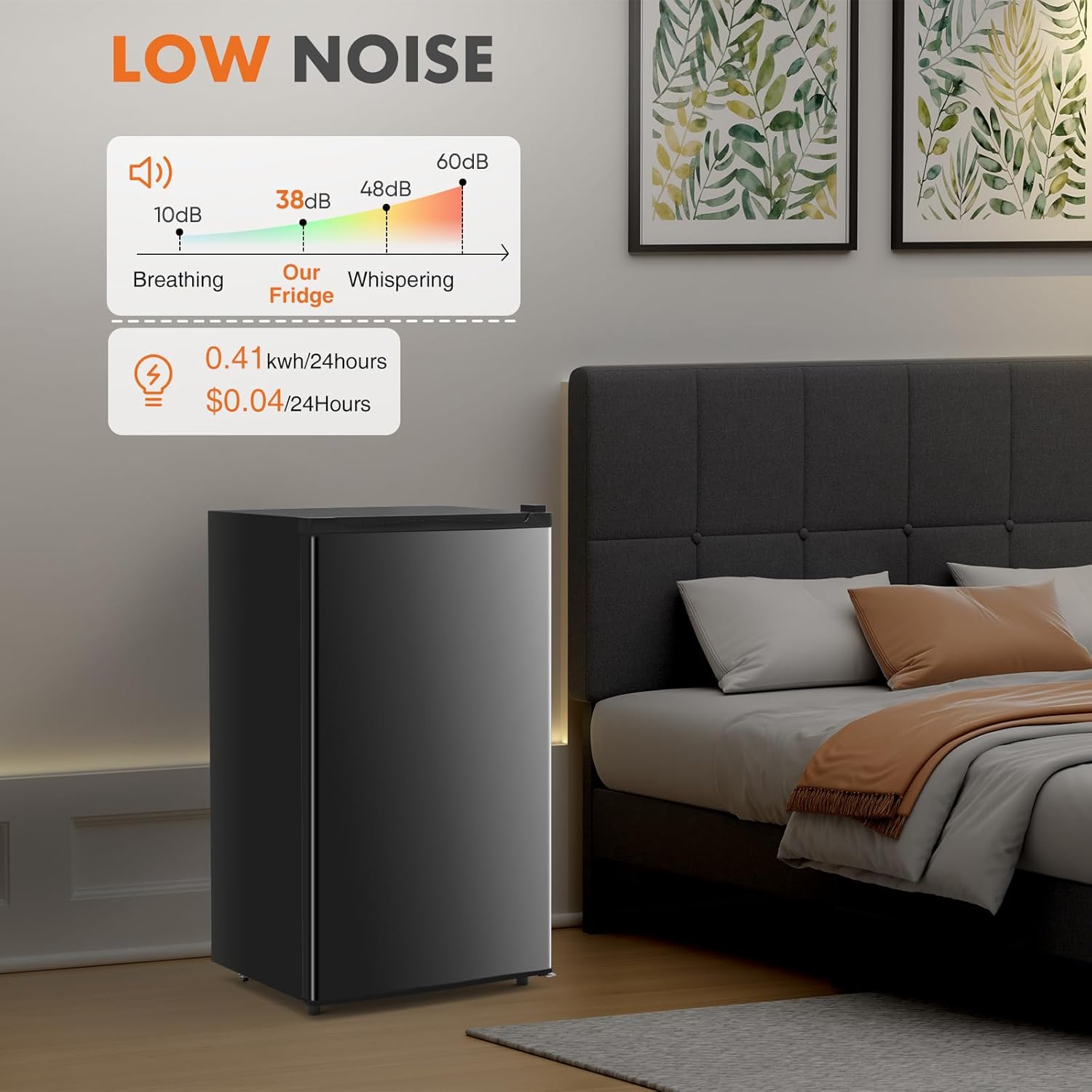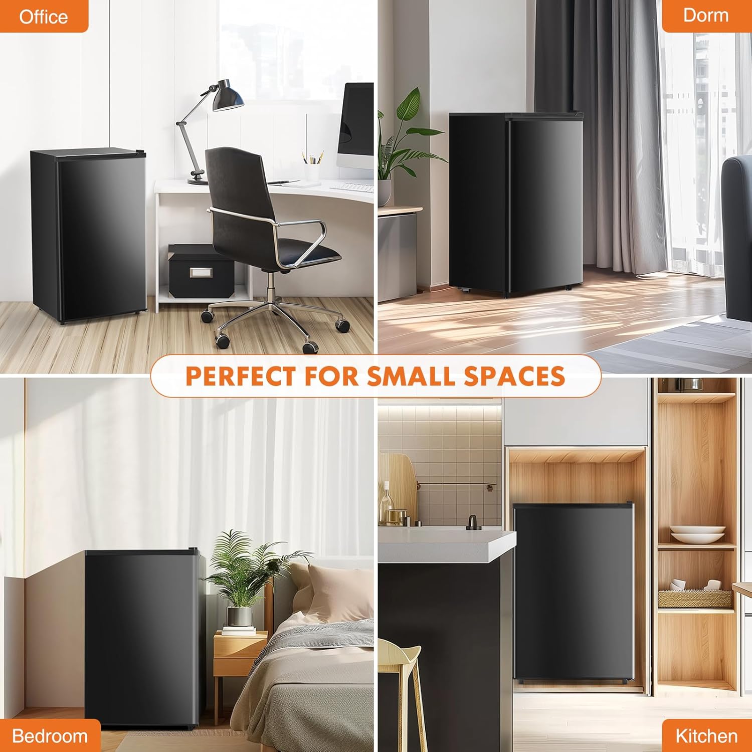 Sweetcrispy 3.2 Cu.Ft Mini Fridge with Freezer Small Refrigerator Single Door Adjustable Thermostat Energy-efficient Low Noise, Compact Fridge for Bedroom, Office, Dorm (Black)