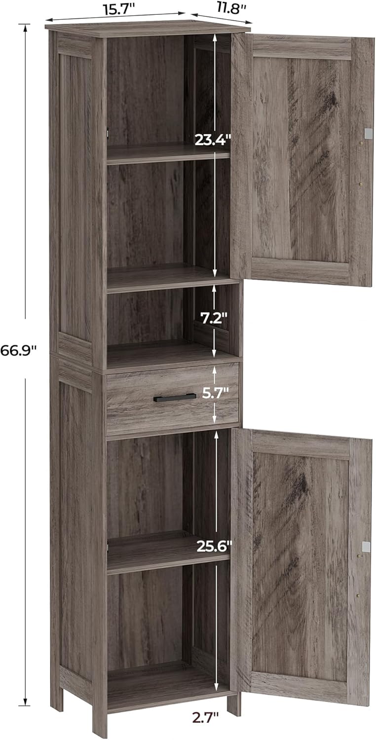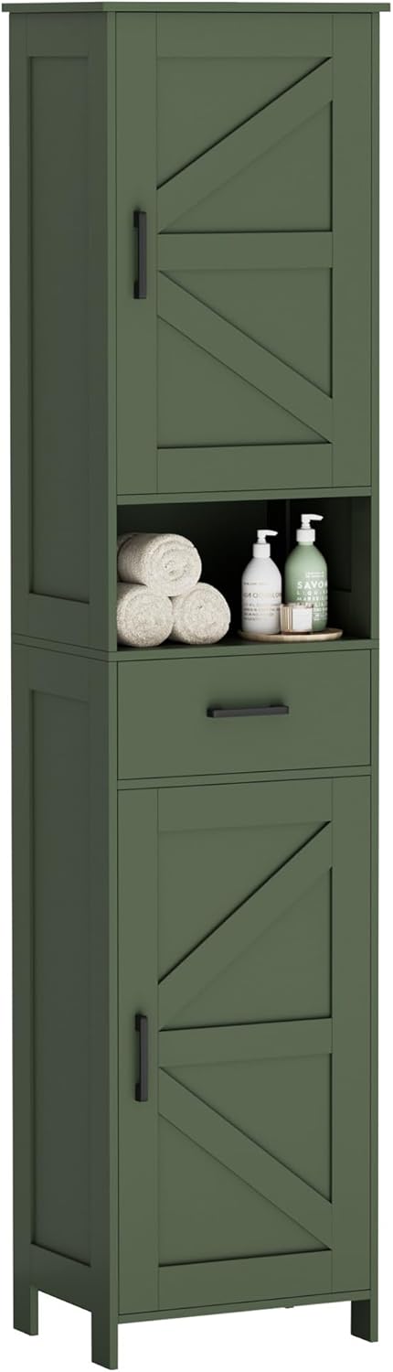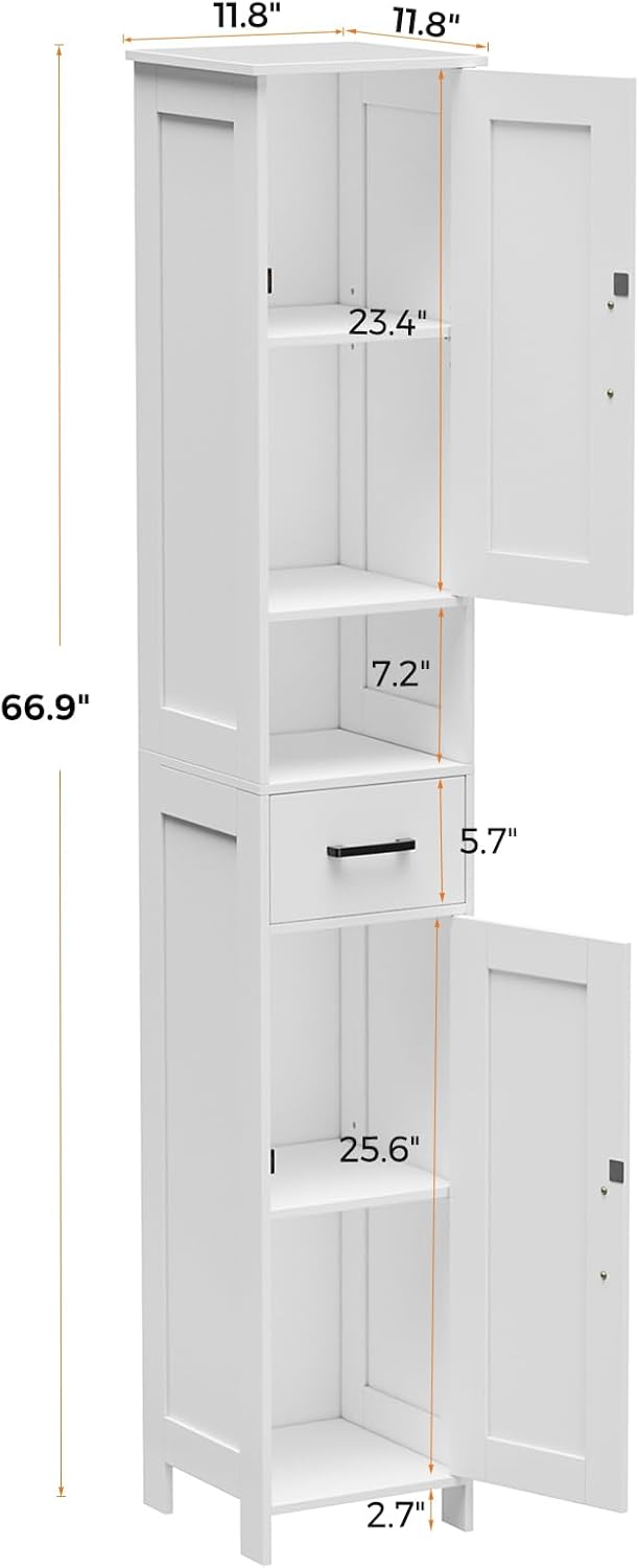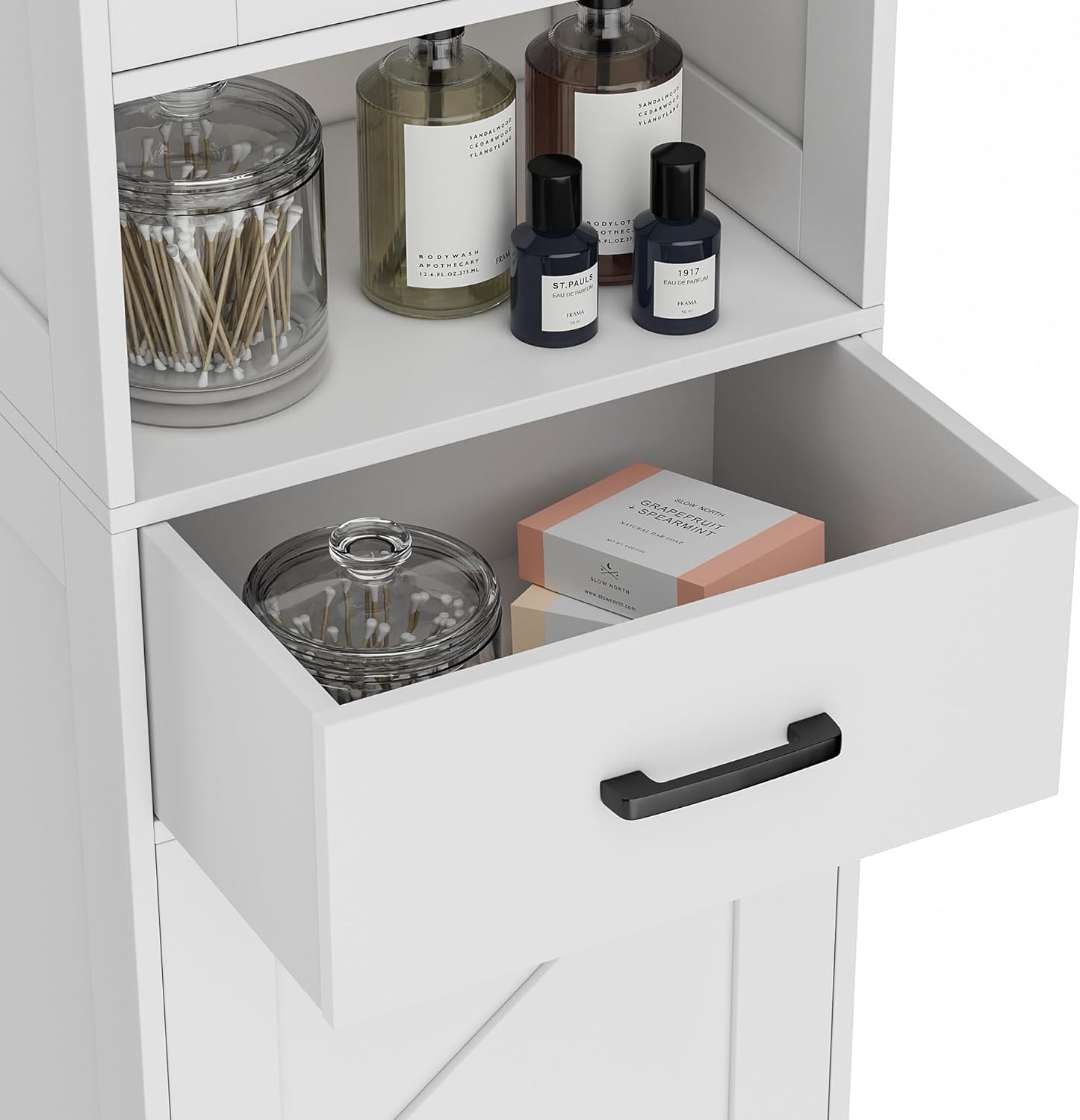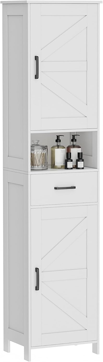 Homhedy 67" H Tall Bathroom Storage Cabinet with 2 Barn Doors and 1 Drawer, Narrow Storage Unit, Adjustable Shelves, Floor Cabinet for Bathroom, Living Room, Entryway, Kitchen, White, (15.7" W)