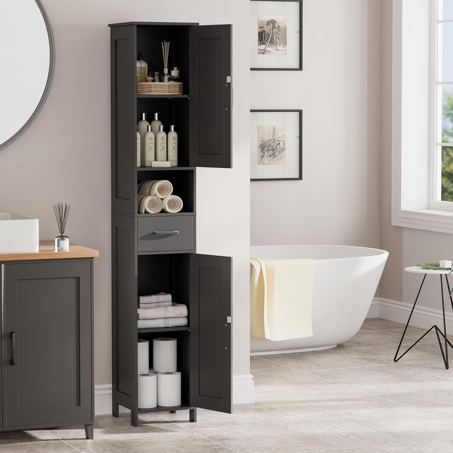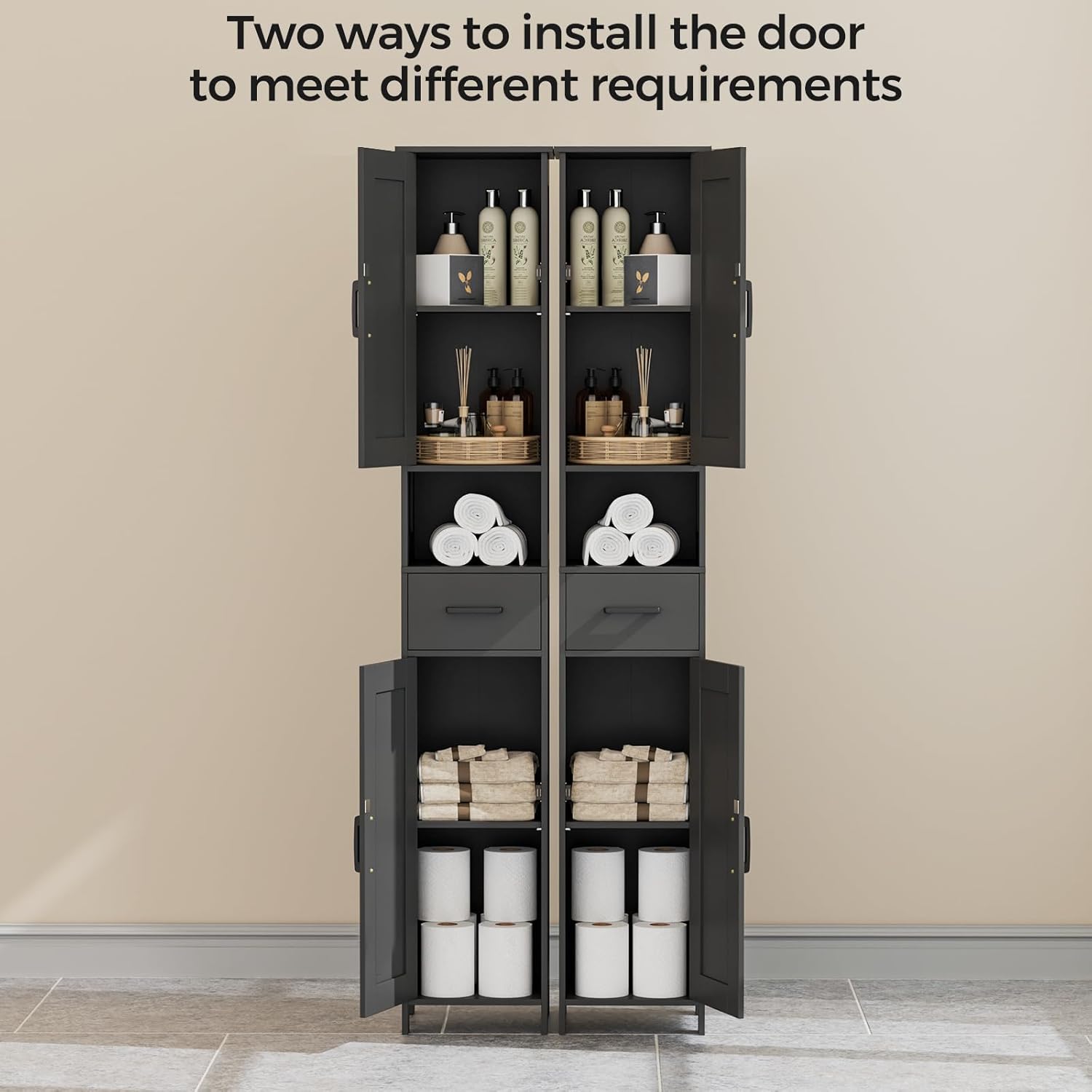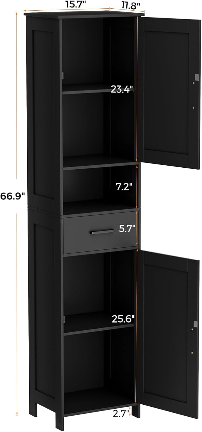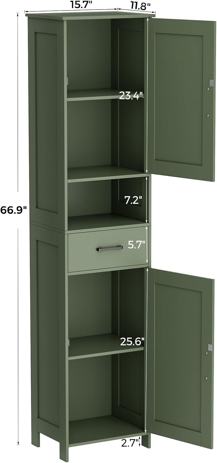 Homhedy 67" H Tall Bathroom Storage Cabinet with 2 Barn Doors and 1 Drawer, Narrow Storage Unit, Adjustable Shelves, Floor Cabinet for Bathroom, Living Room, Entryway, Kitchen, White, (15.7" W)