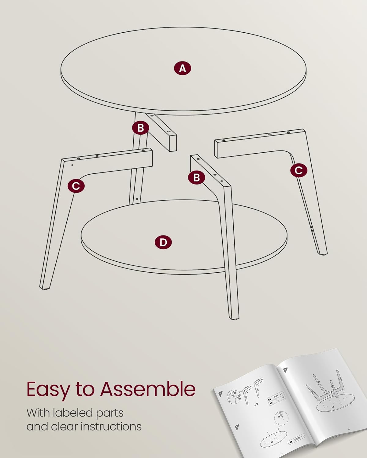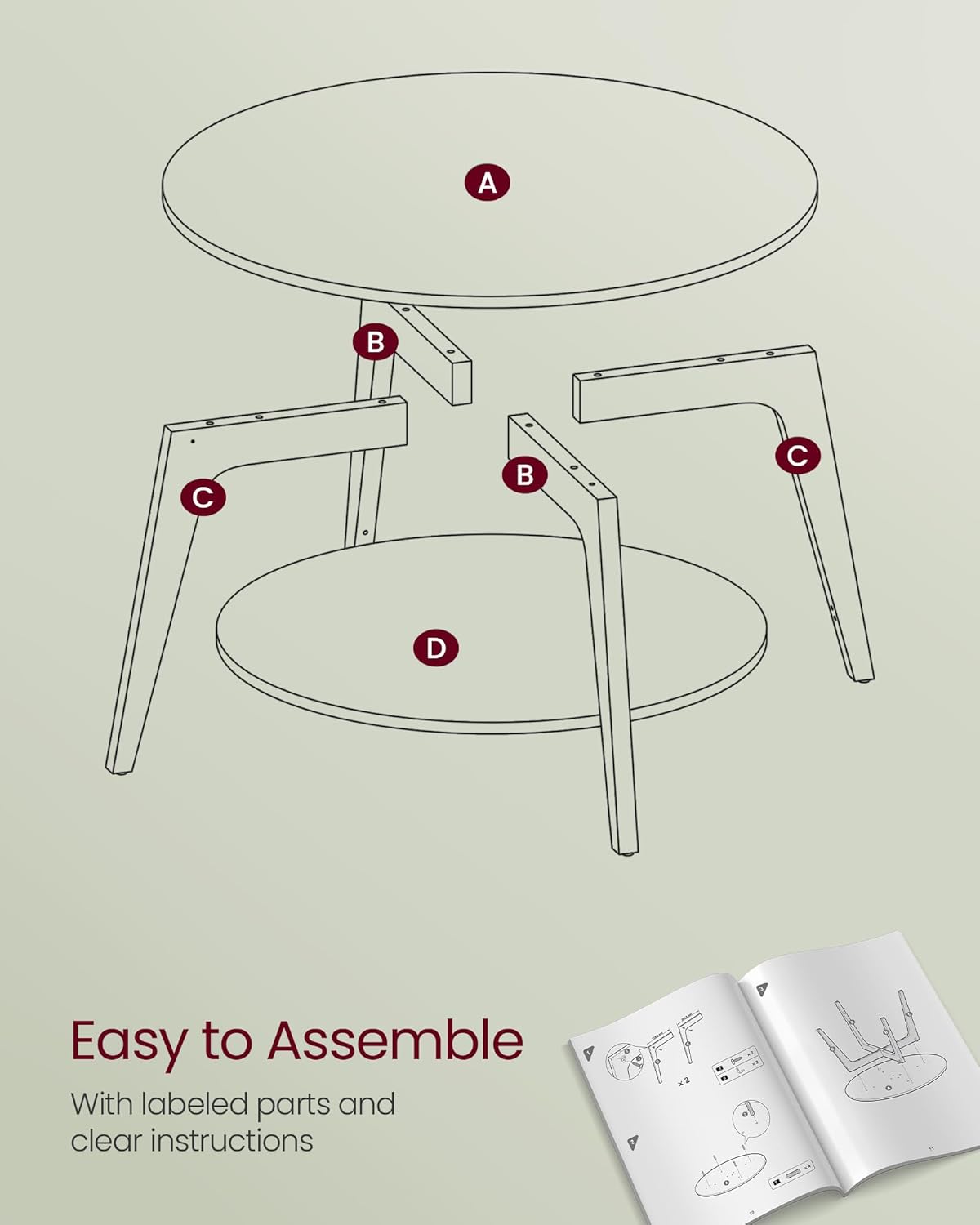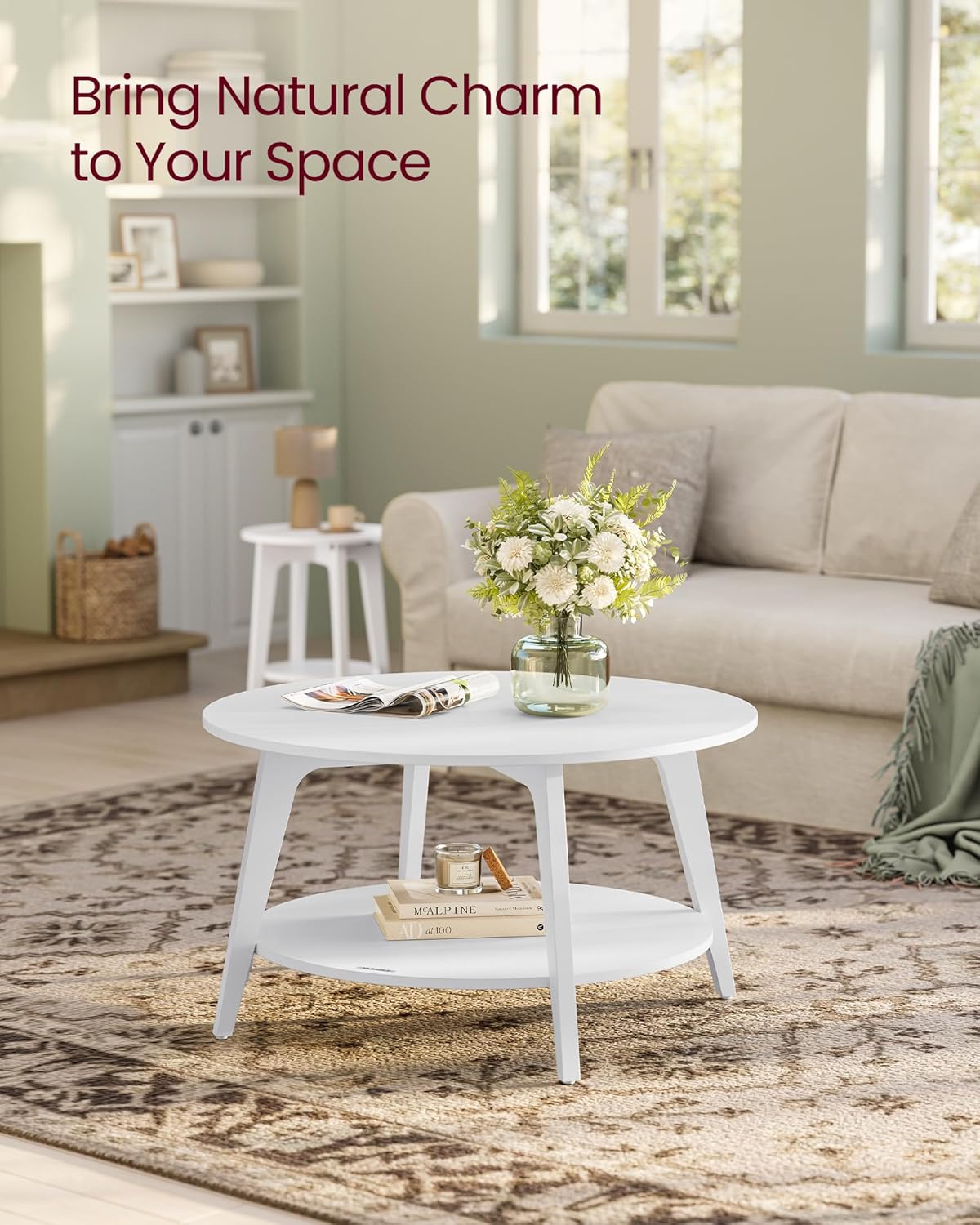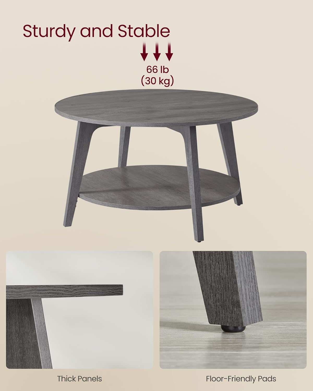 VASAGLE Round Coffee Table, 2 Tier Coffee Table with Storage, for Living Room, 31.5 x 17.7 Inches