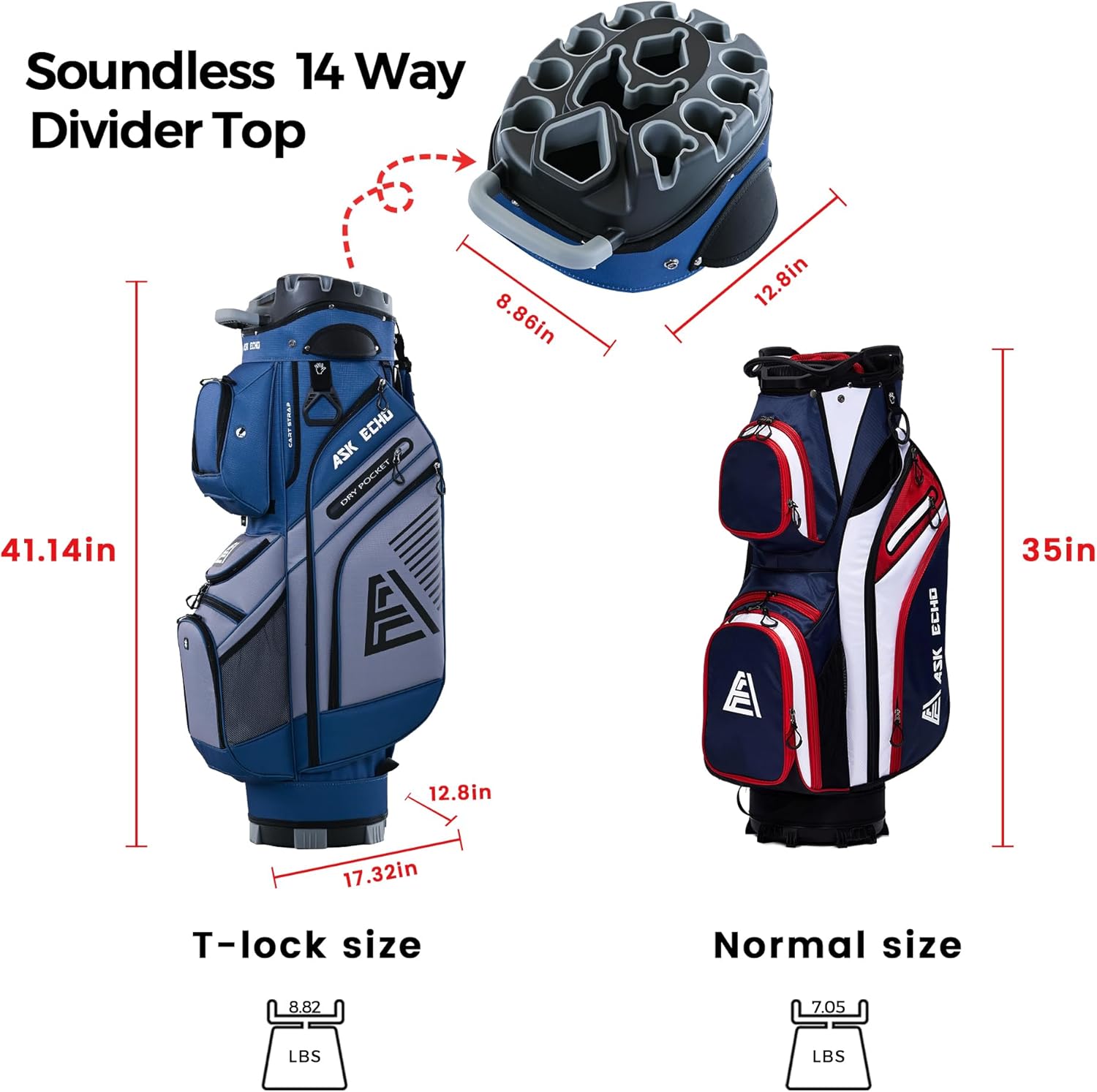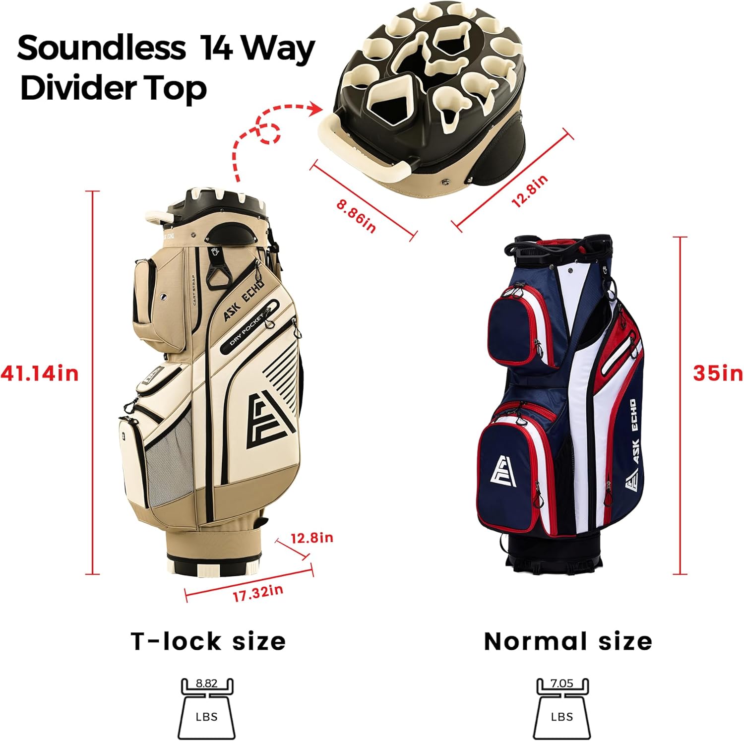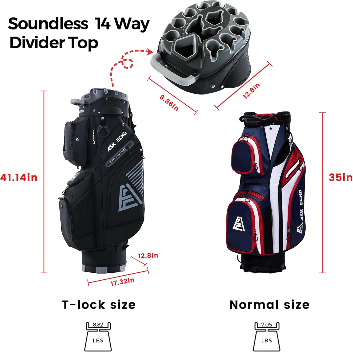 T-Lock Golf Cart Bag with 14 Way Organizer Divider Top, Premium Cart Bag with Handles and Rain Cover for Men