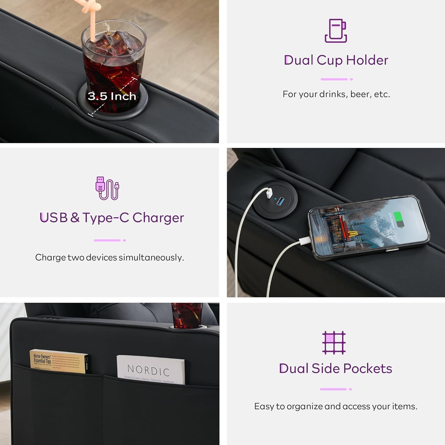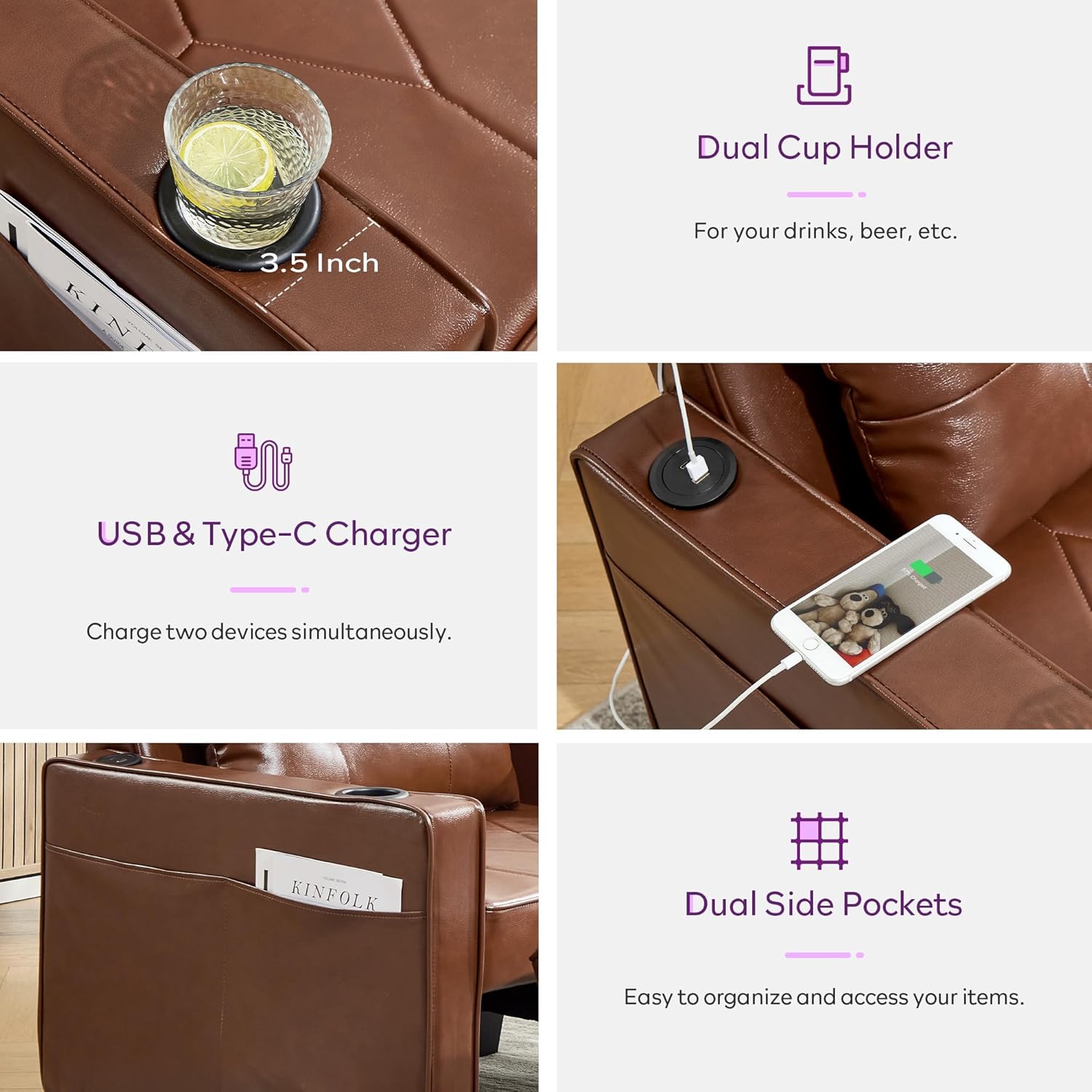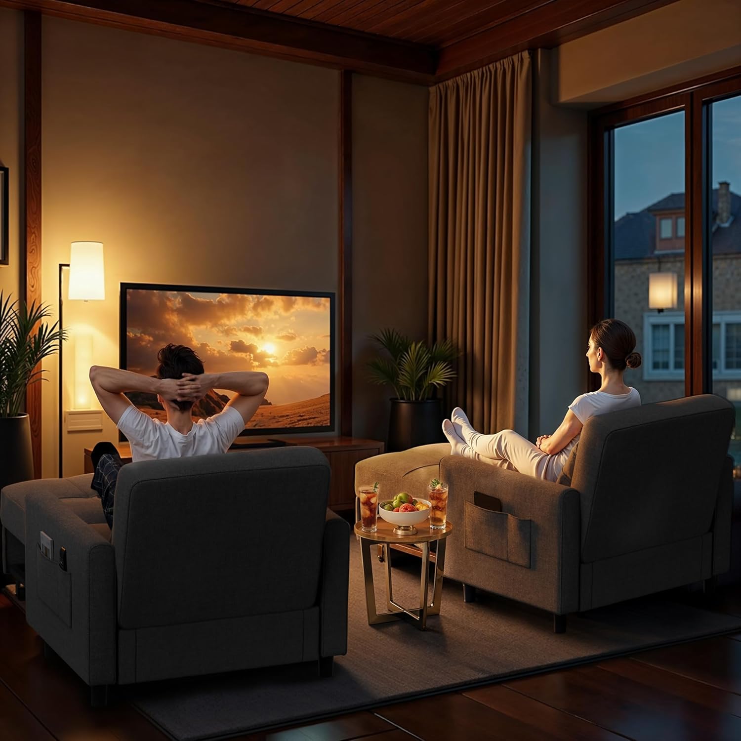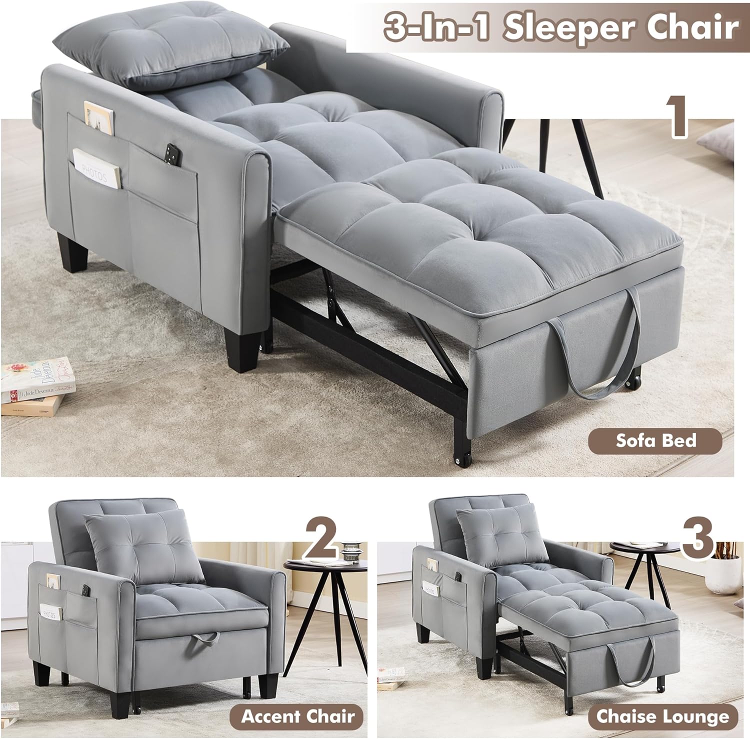 Adult Convertible Sleeper Chair Bed, 3-in-1 Pull-Out Sofa Bed with USB/Type-C Ports, Cup Holders, Side Pockets, Single Sofa