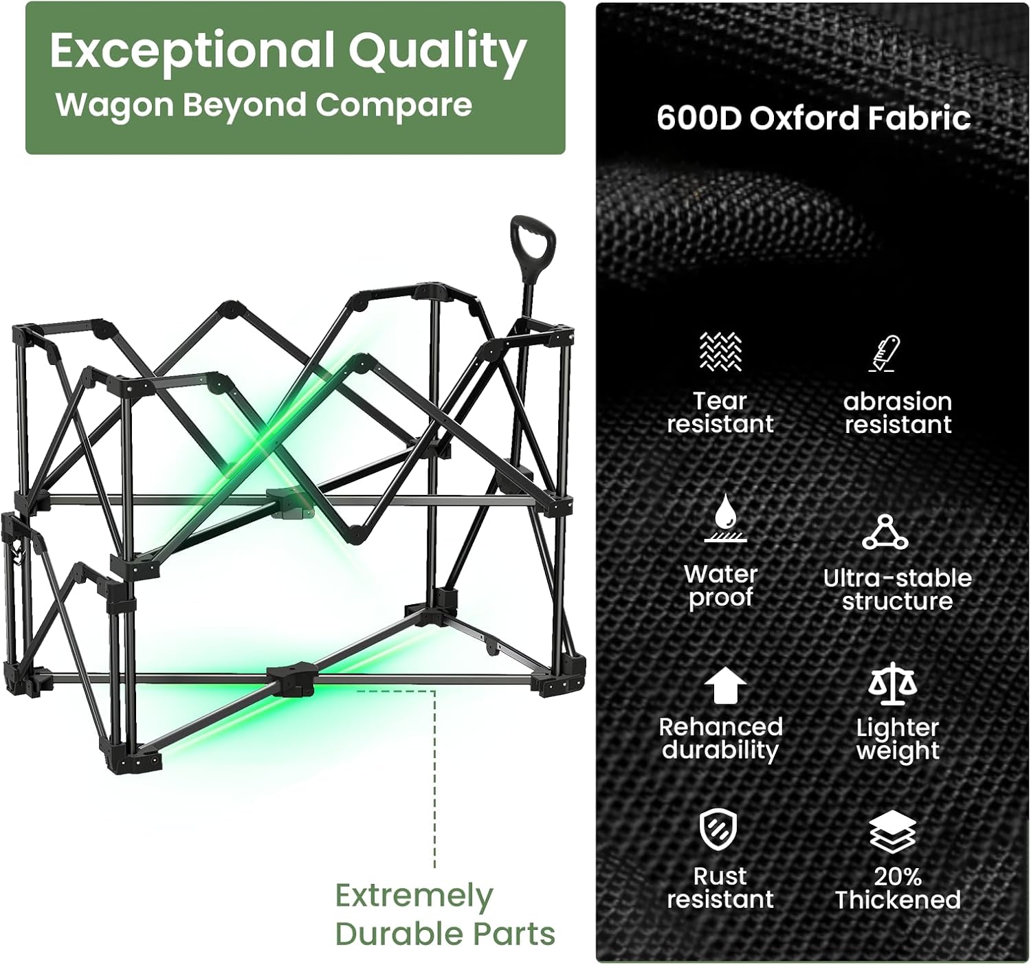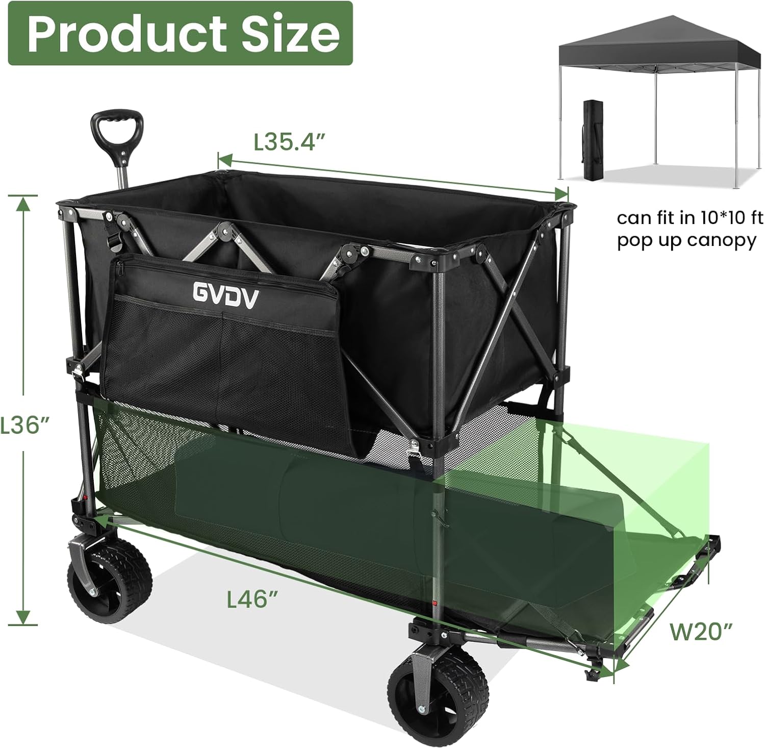 Foldable 50''L Extra Long Double Decker Wagon for Sport, 400L Collapsible Heavy Duty Wagon Cart with Big Wheels, Utility All-Terrain Large Extender Cart for Outdoors