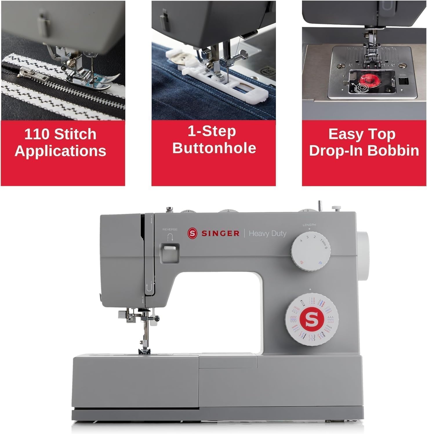 SINGER Heavy Duty 4452 High Speed Sewing Machine With Accessory Kit | Strong Motor with Enhanced Piercing Power, 110 Stitch Applications, Full Metal frame, 1-step Buttonhole & LED Lights