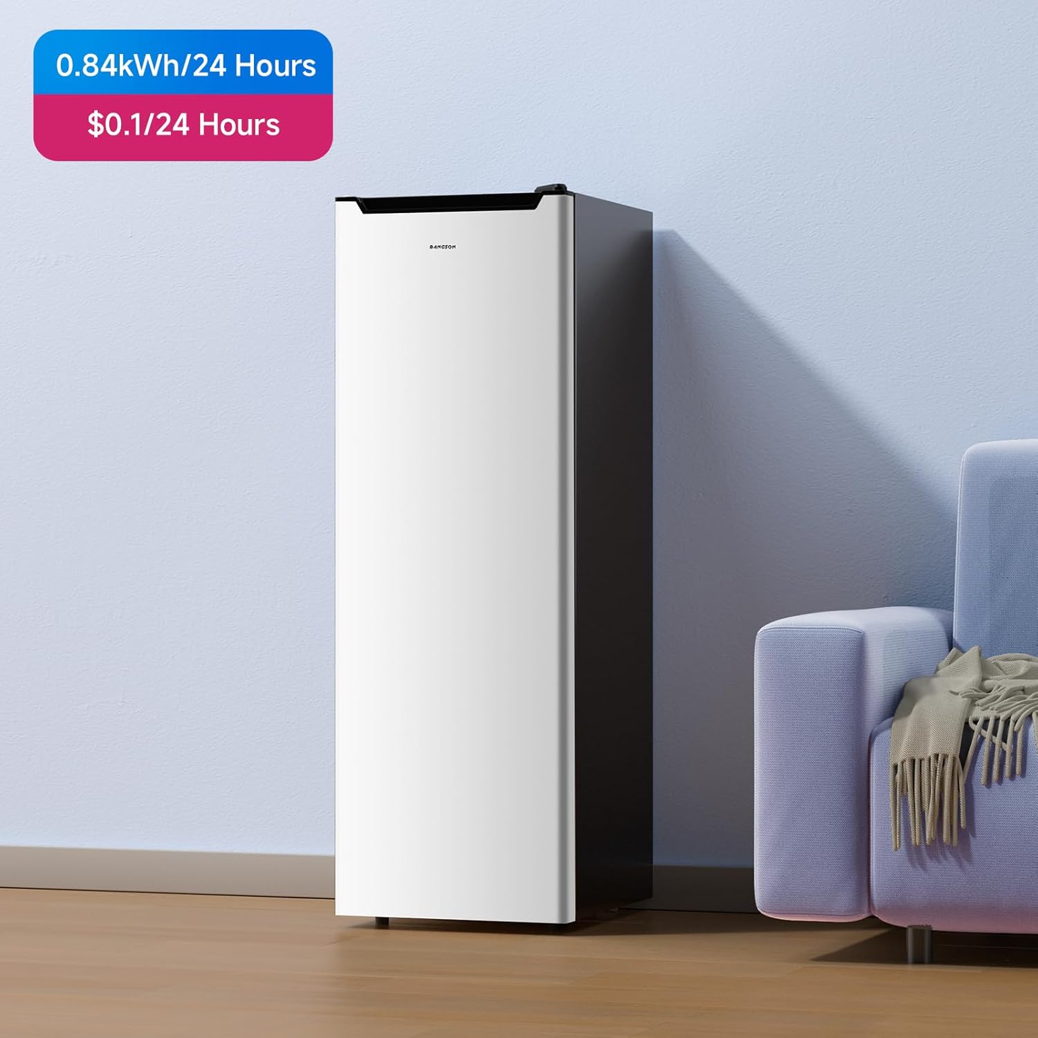 BANGSON Upright Freezer, 7.0 Cu.ft Stand Up Freezer, Convertible Upright Freezer/Refrigerator, Single Door for Kitchen,Garage, Office, Apartment, Silver