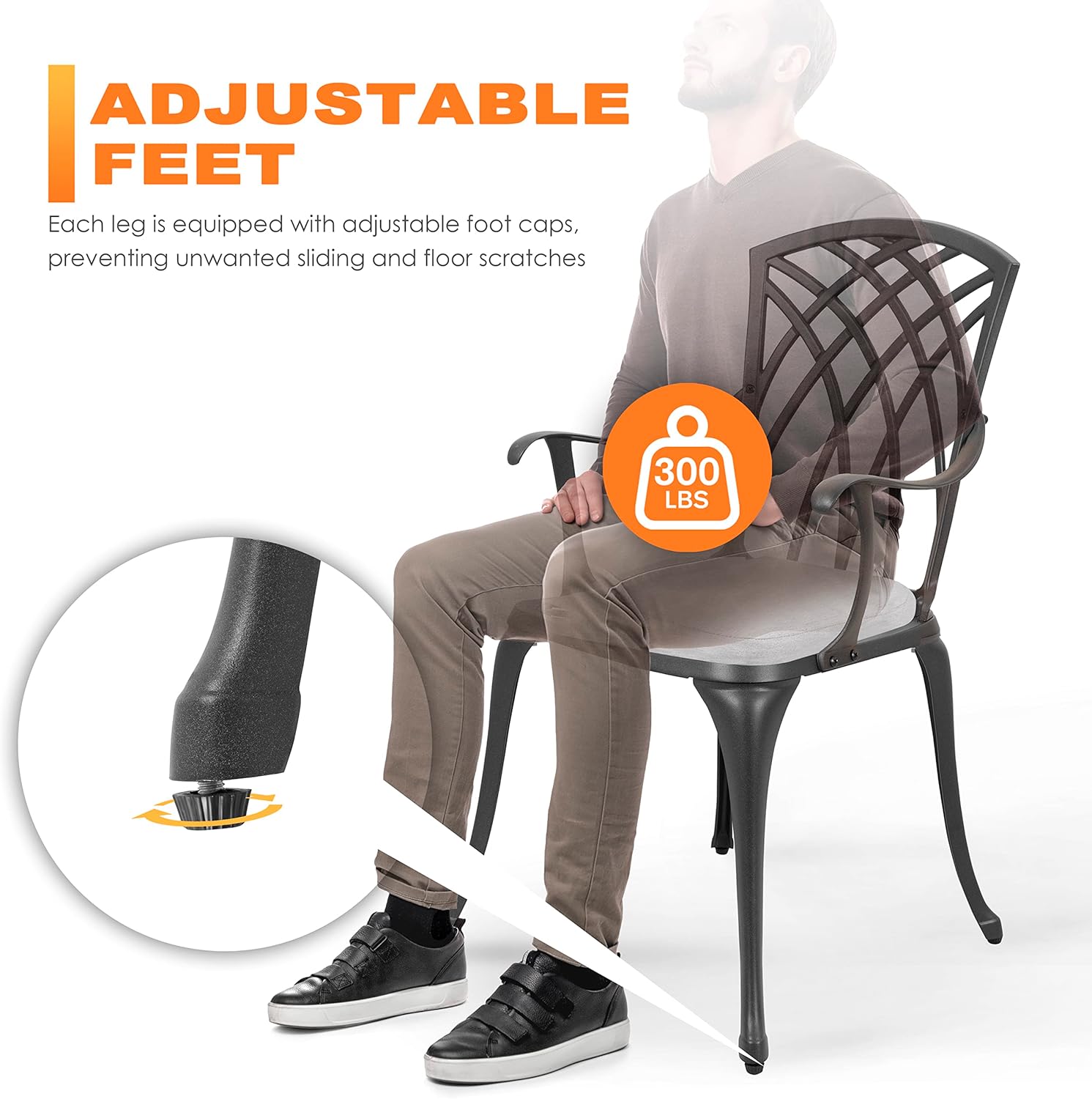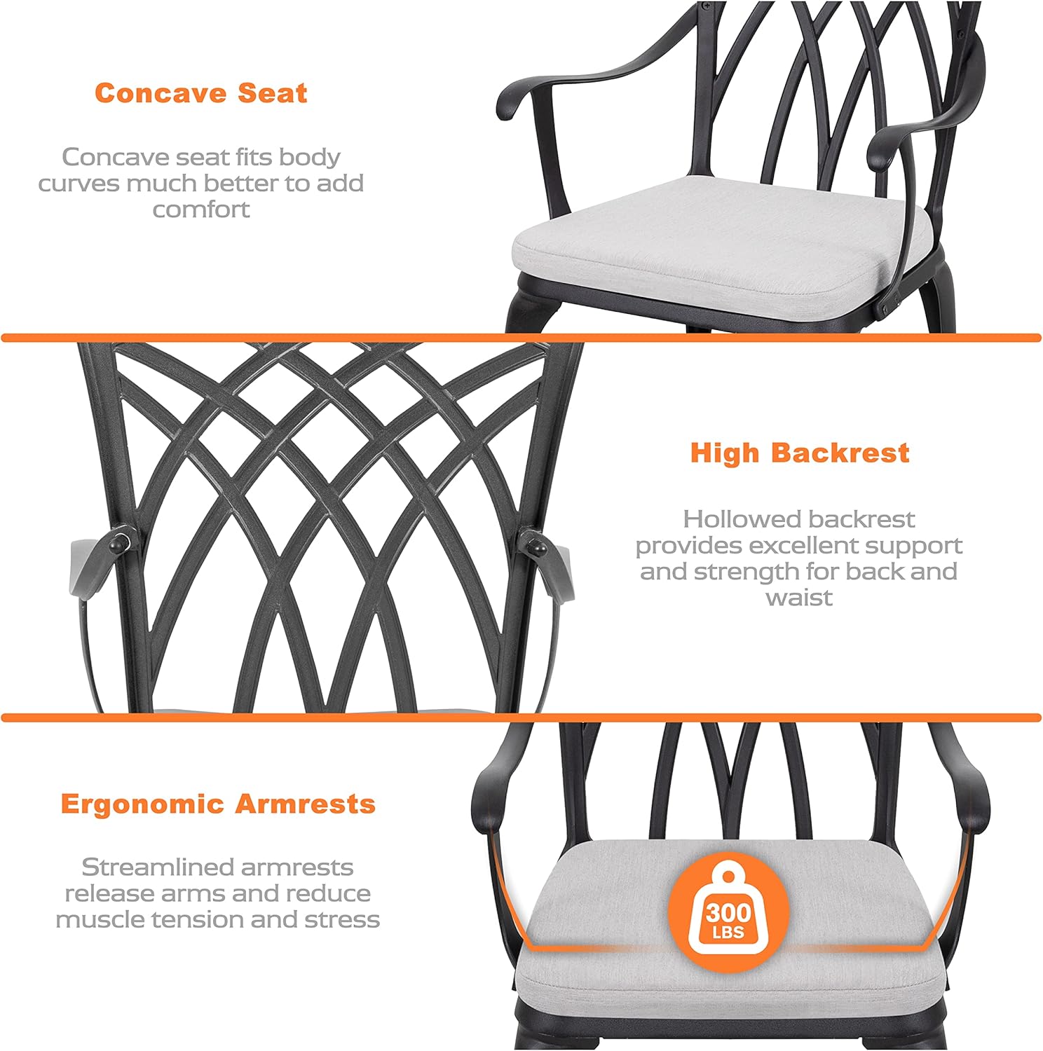 NUU GARDEN Bistro Set 3 Piece Outdoor Cast Aluminum Patio Bistro Set Patio Table and Chairs Set of 2 with Umbrella Hole and Gray Cushions, Black