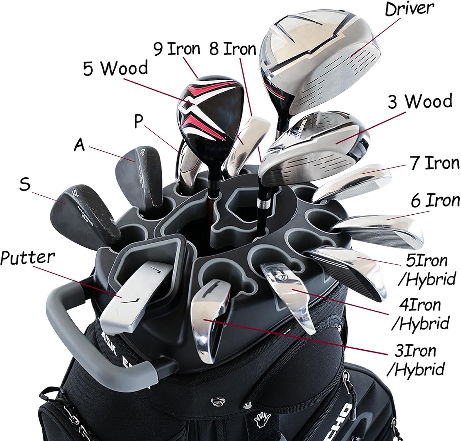 Golf Cart Bag 15 Way Organizer Divider Top with Handles and Rain Cover