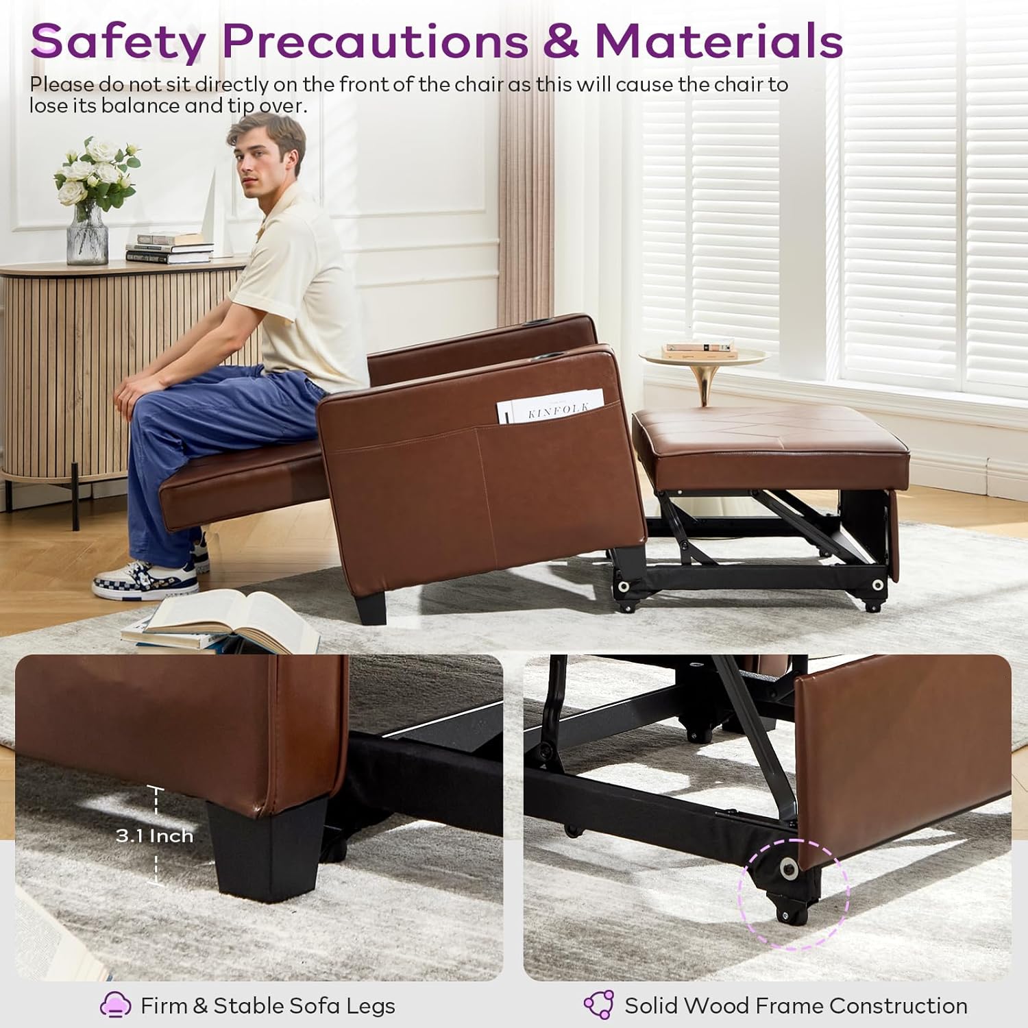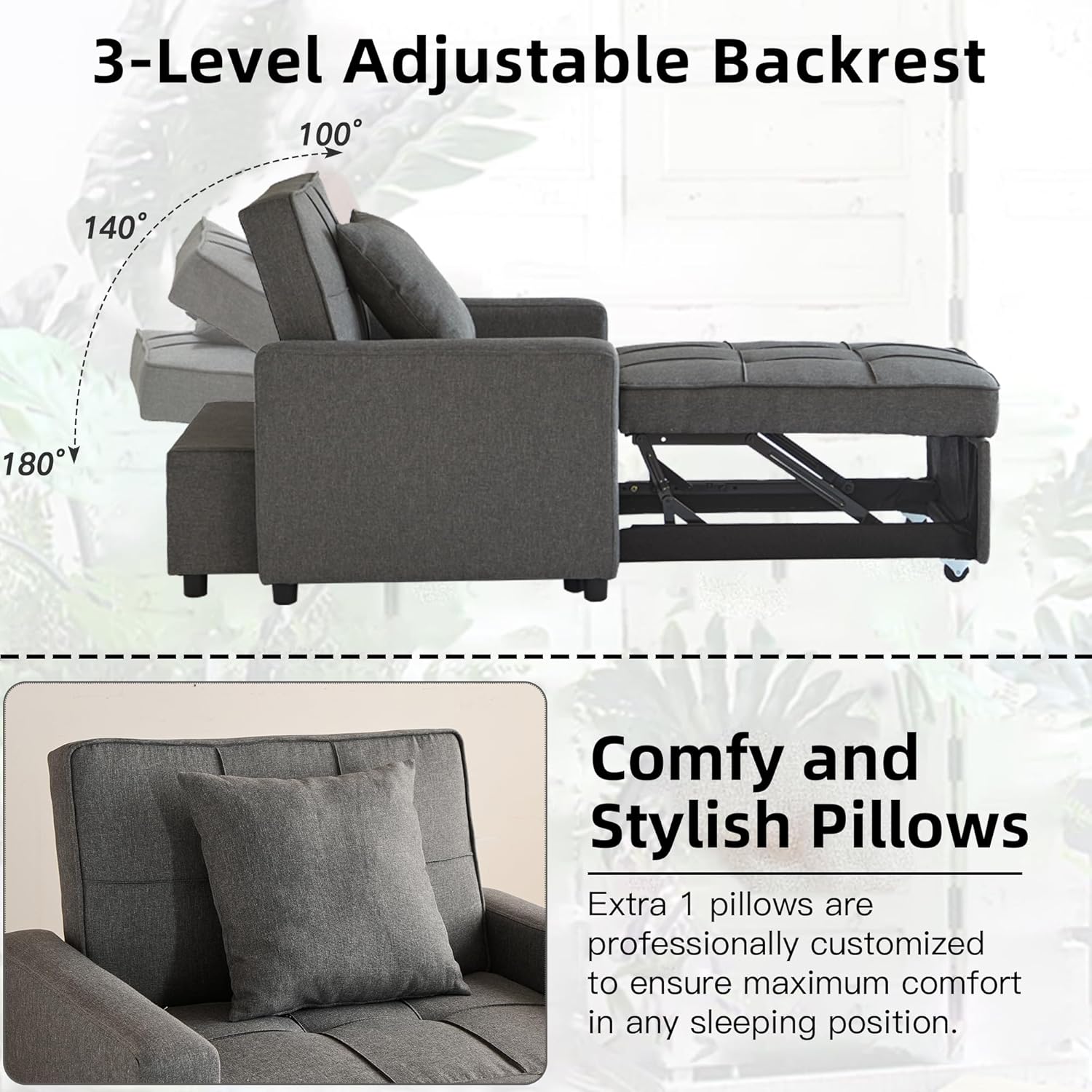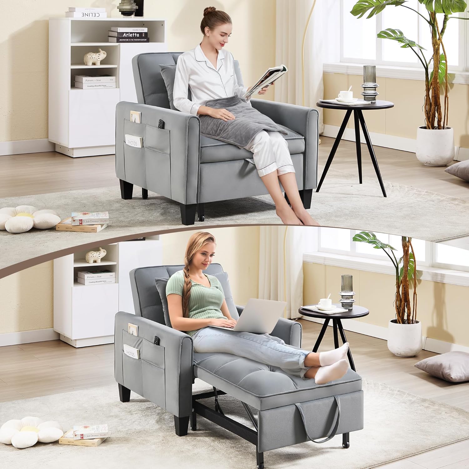 Sofa Bed Chair 3 in 1 Convertible, Pullout Single Sleeper Chair Bed with Adjustable Backrest, Spacious Multifunctional Sofa Couches