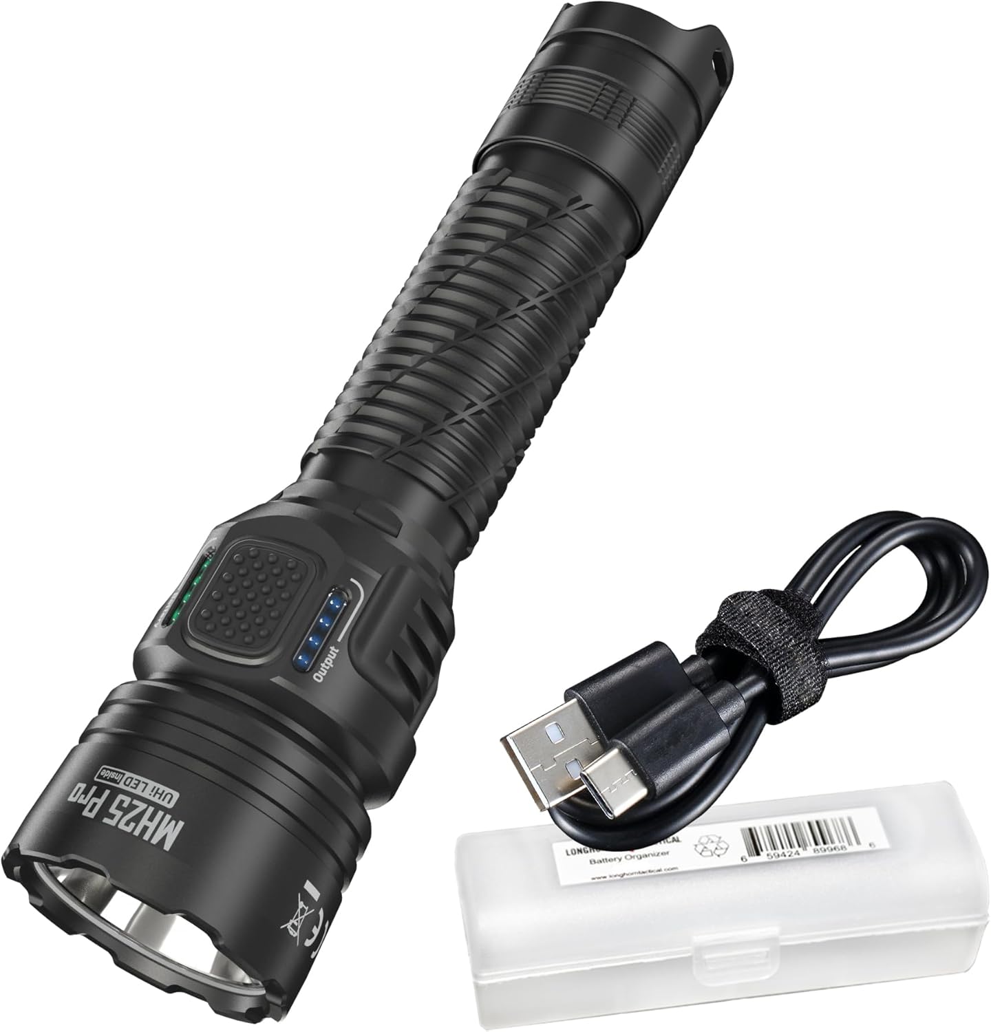 MH25 Pro 770 Yard Long Throw Flashlight, 3300 Lumen USB-C Rechargeable Compact Duty Work Light with Lumentac Organizer