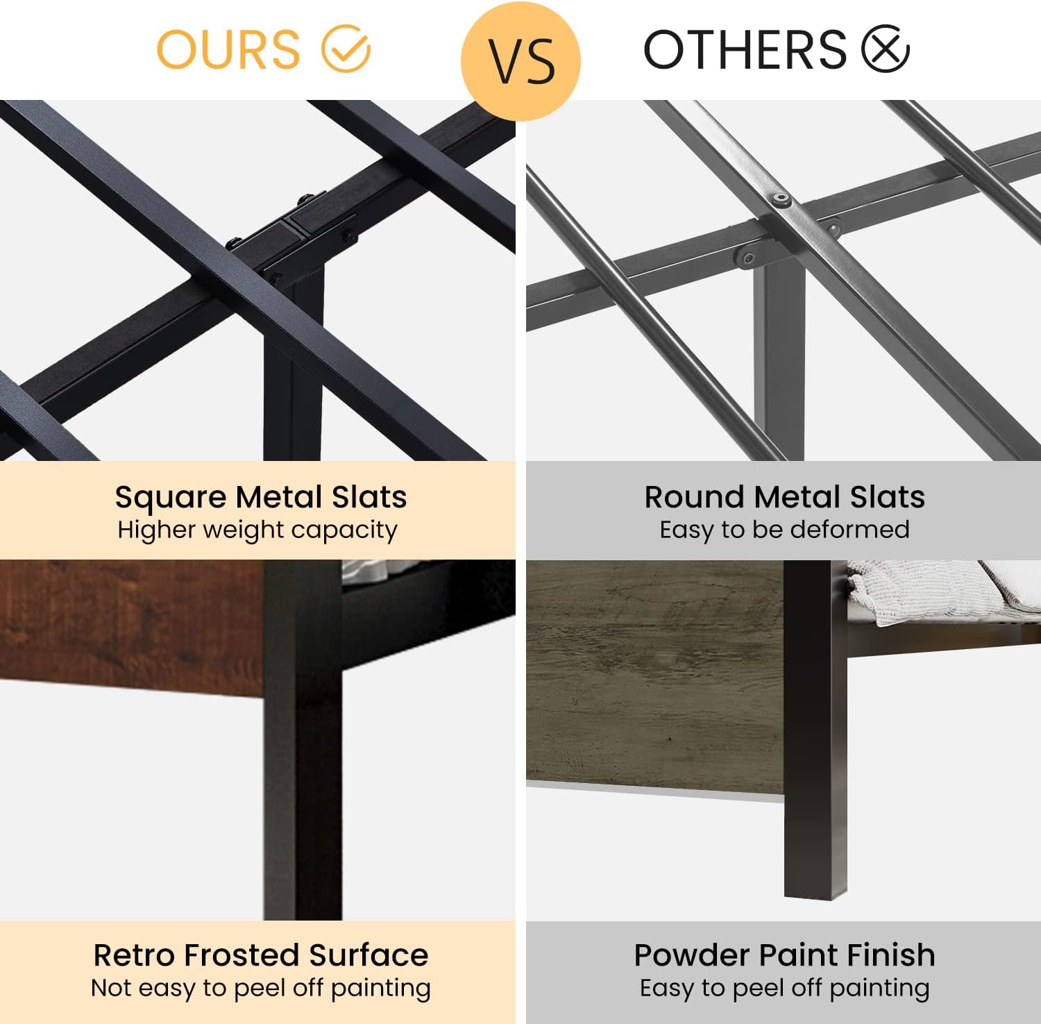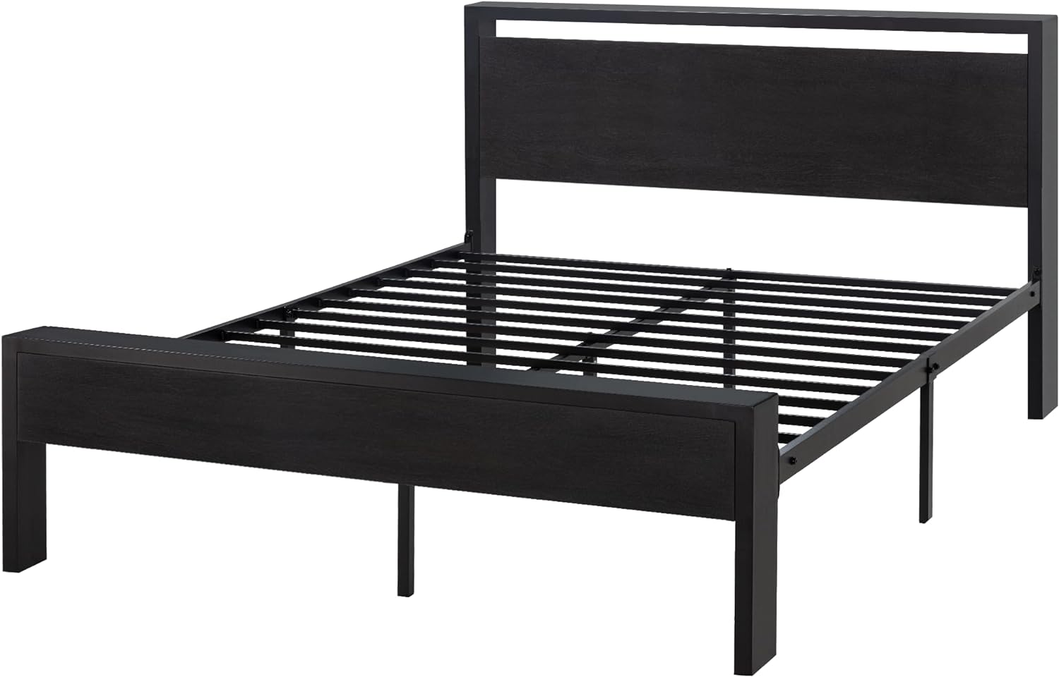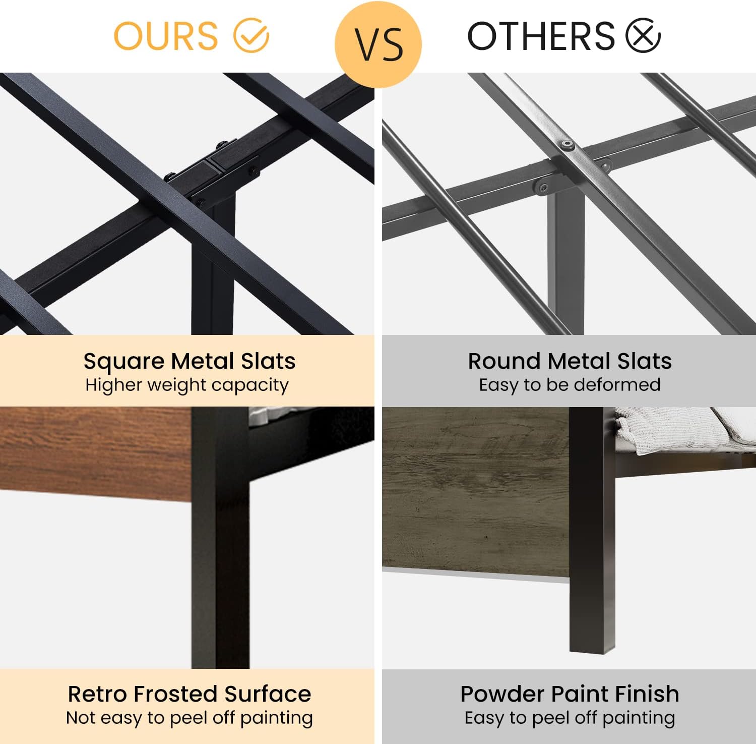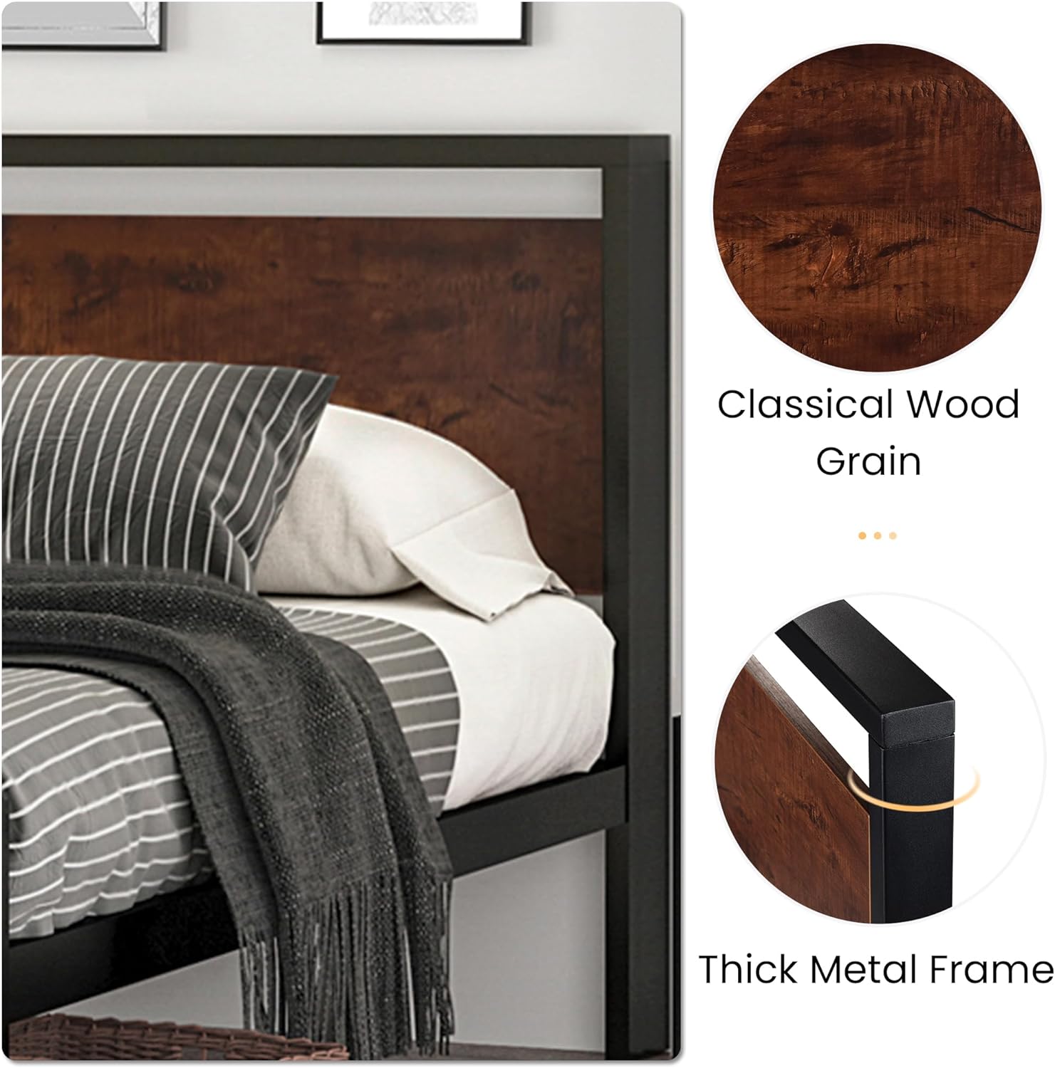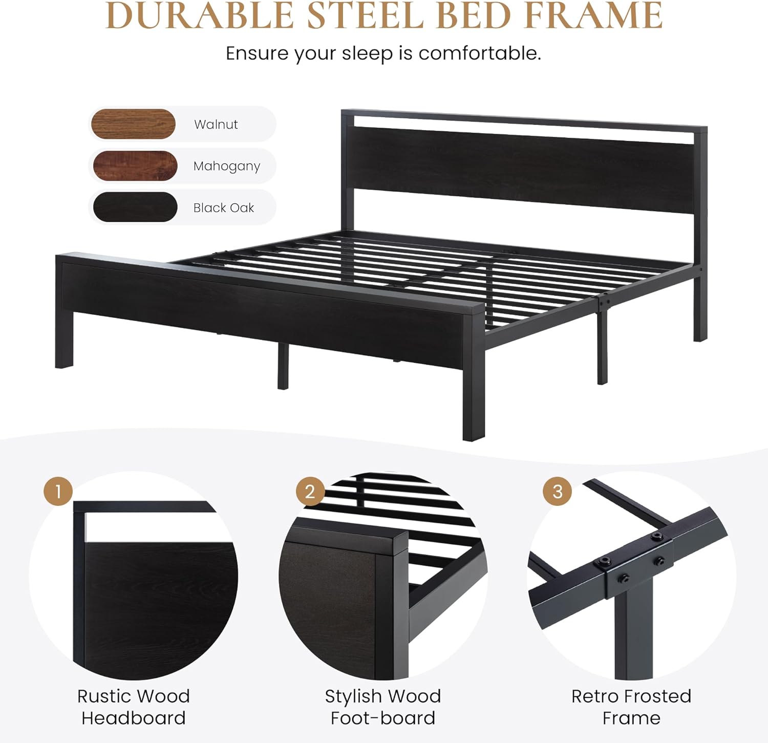 SHA CERLIN 14 Inch Queen Size Metal Platform Bed Frame with Wooden Headboard and Footboard, Mattress Foundation, No Box Spring Needed, Large Under Bed Storage, Non-Slip Without Noise, Black Oak