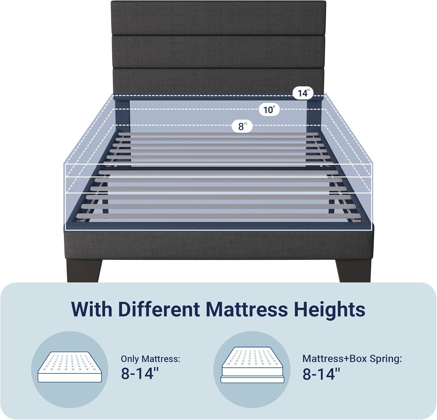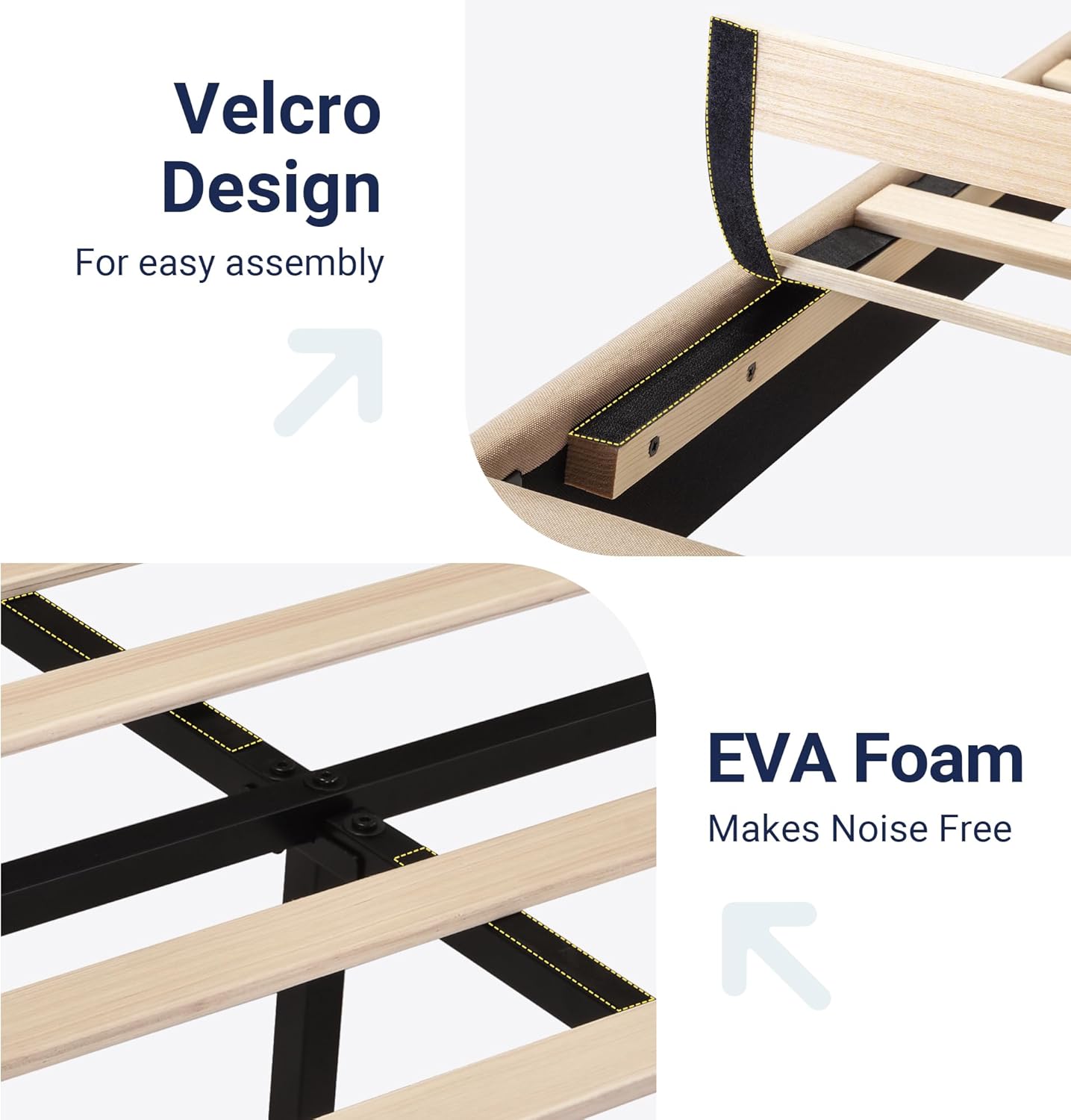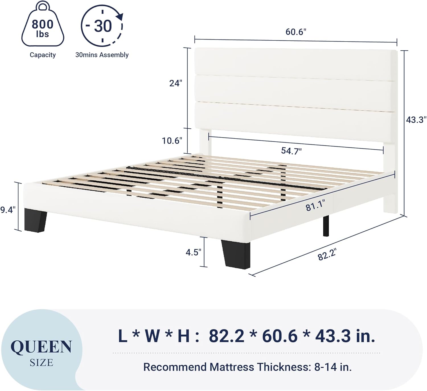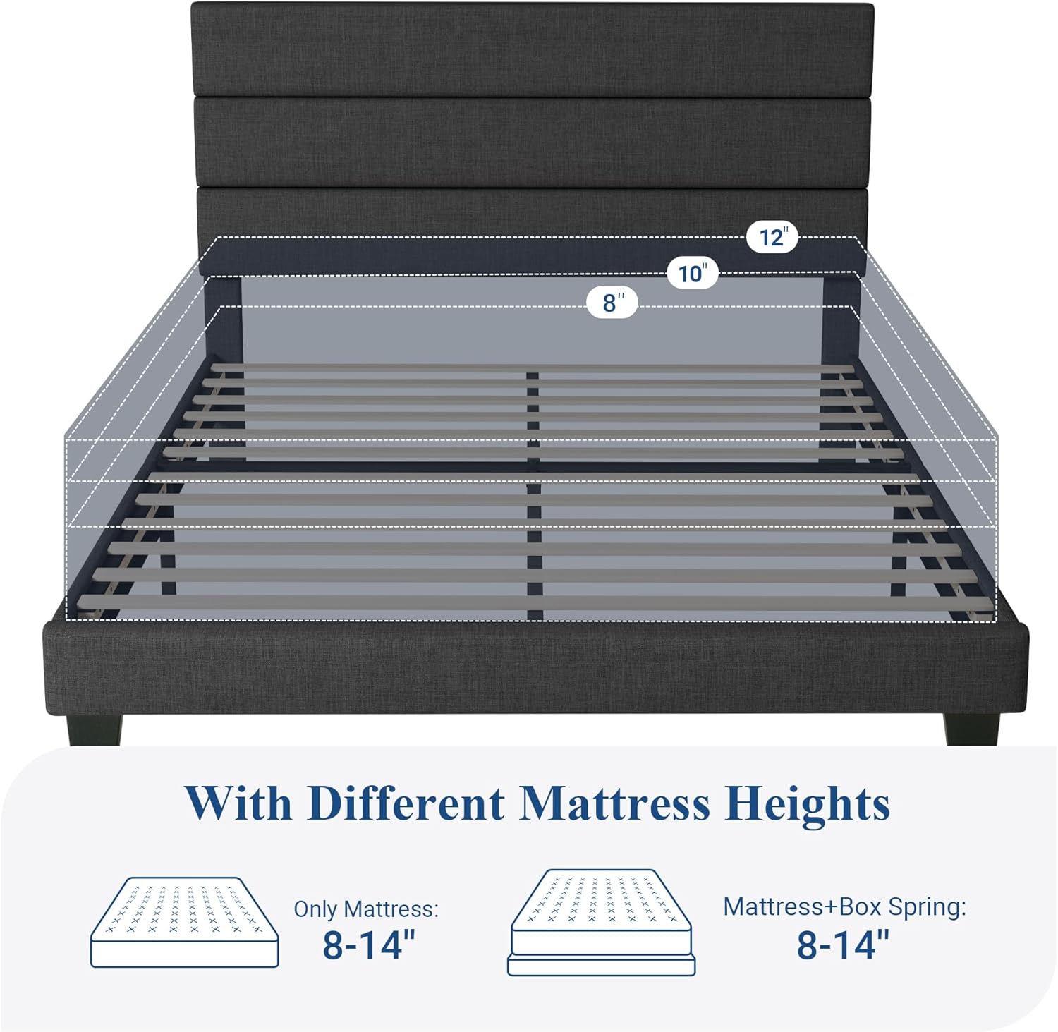 Allewie Queen Size Platform Bed Frame with Fabric Upholstered Headboard and Wooden Slats Support, Fully Upholstered Mattress Foundation/No Box Spring Needed