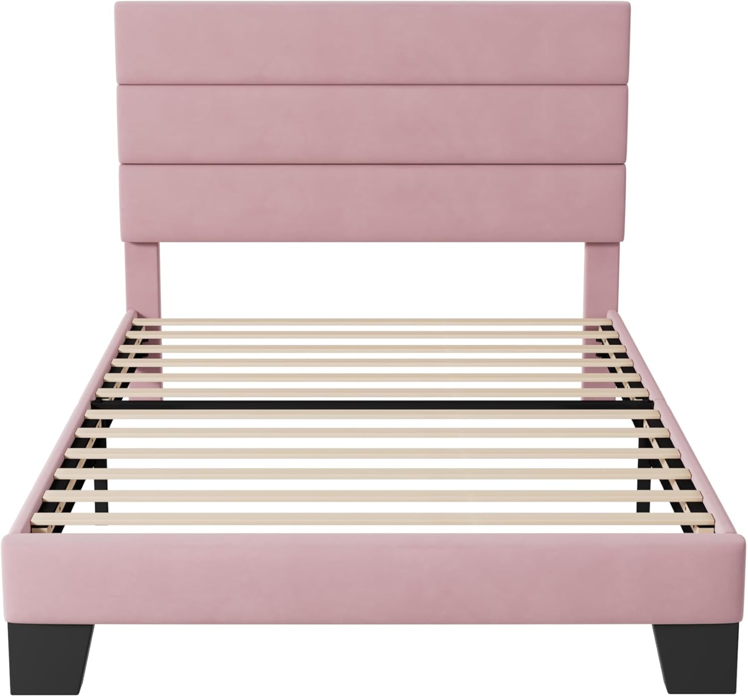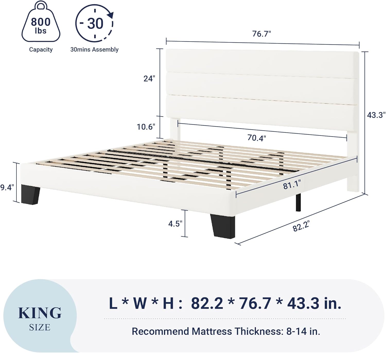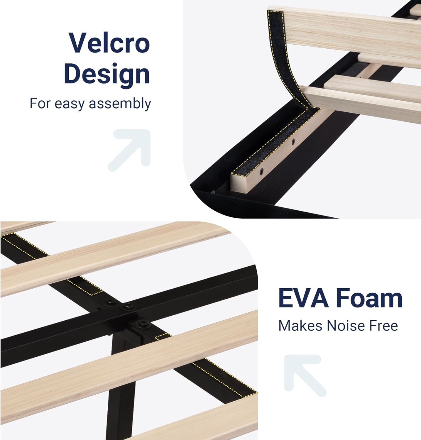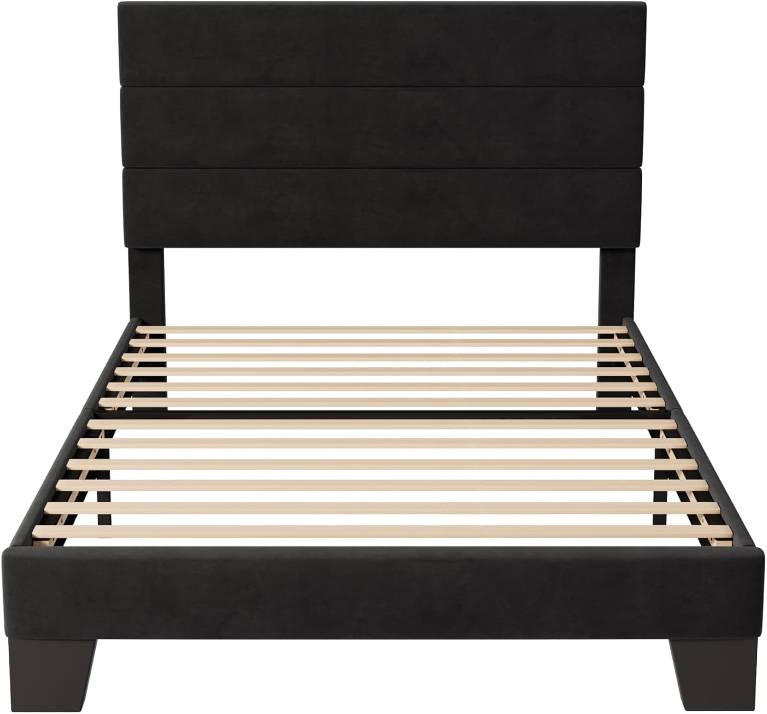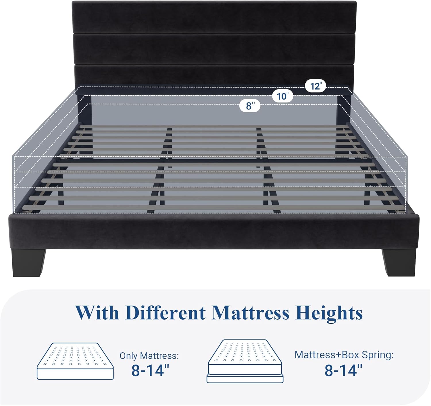 Allewie Queen Size Platform Bed Frame with Fabric Upholstered Headboard and Wooden Slats Support, Fully Upholstered Mattress Foundation/No Box Spring Needed