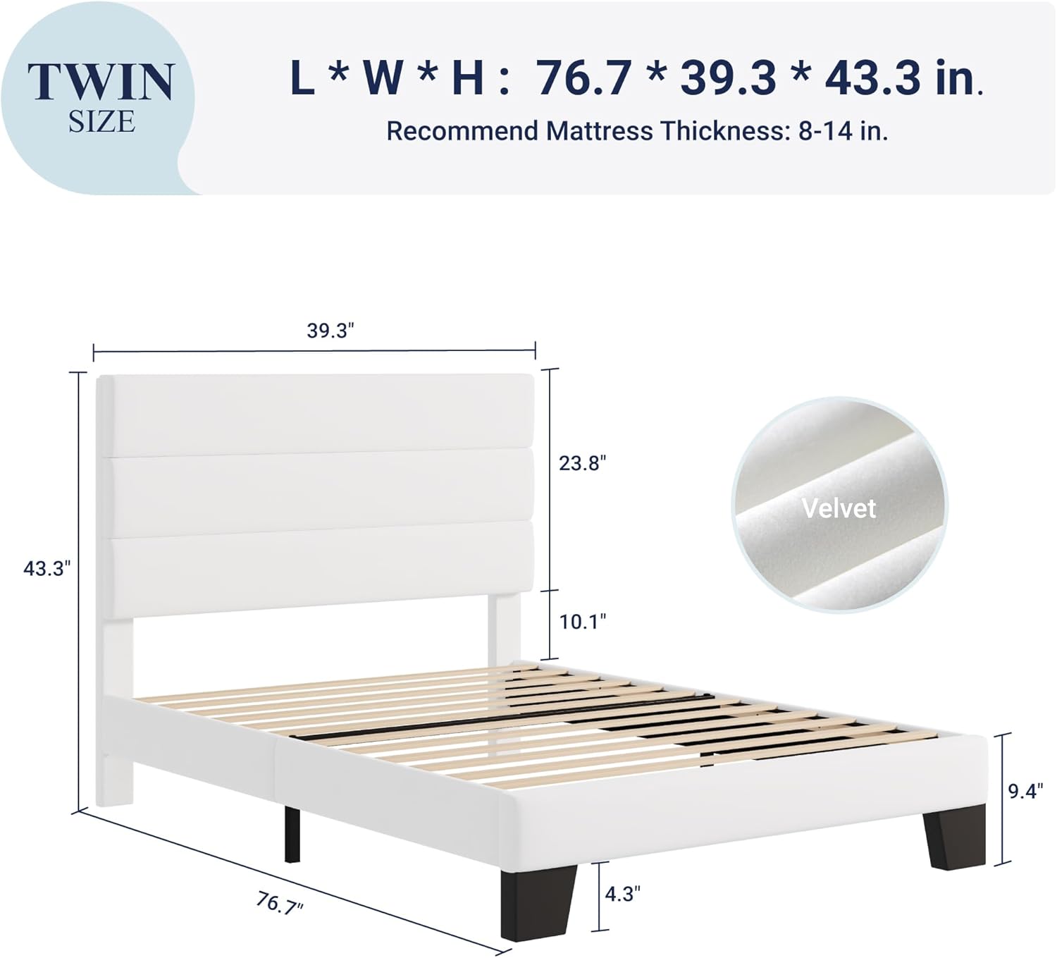 Allewie Full Size Velvet Bed Frame/Vertical Channel Tufted Wingback Headboard/Upholstered Platform Bed/Strong Wooden Slats/No Box Spring Needed/Easy Assembly/White