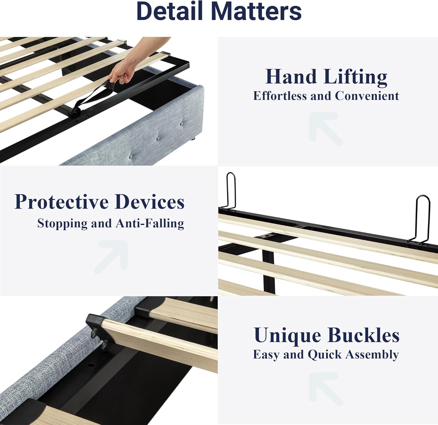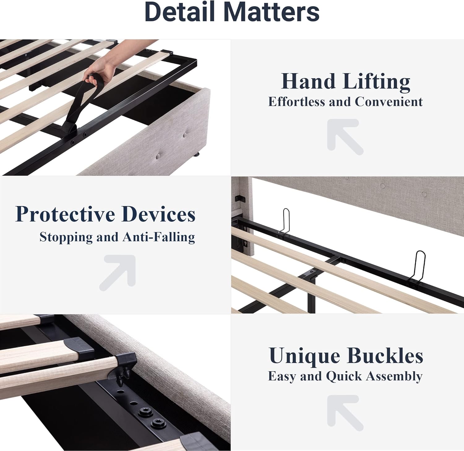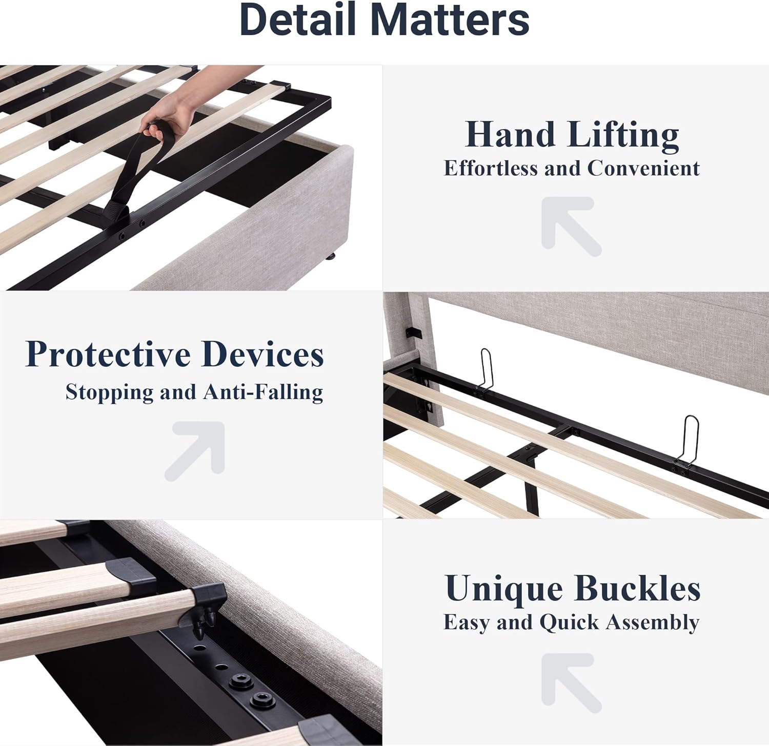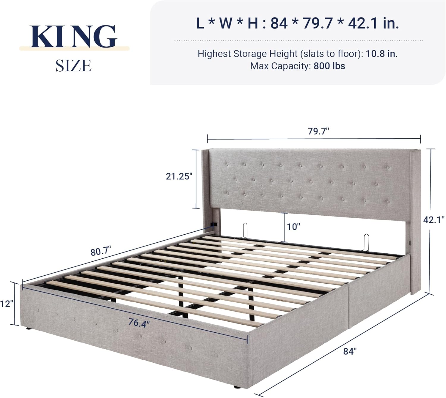 Allewie Queen Size Lift Up Storage Bed, Modern Wingback Headboard, Hydraulic Support, No Box Spring Needed, Light Beige