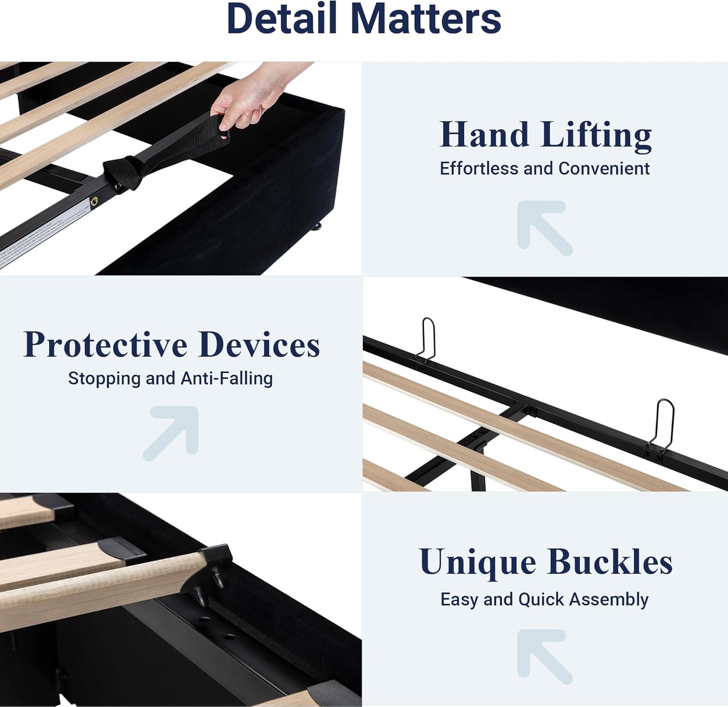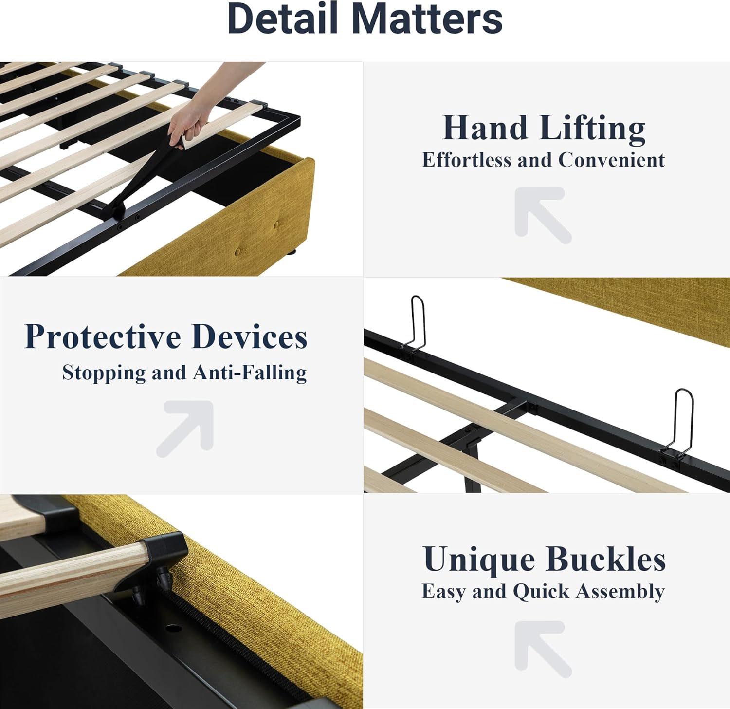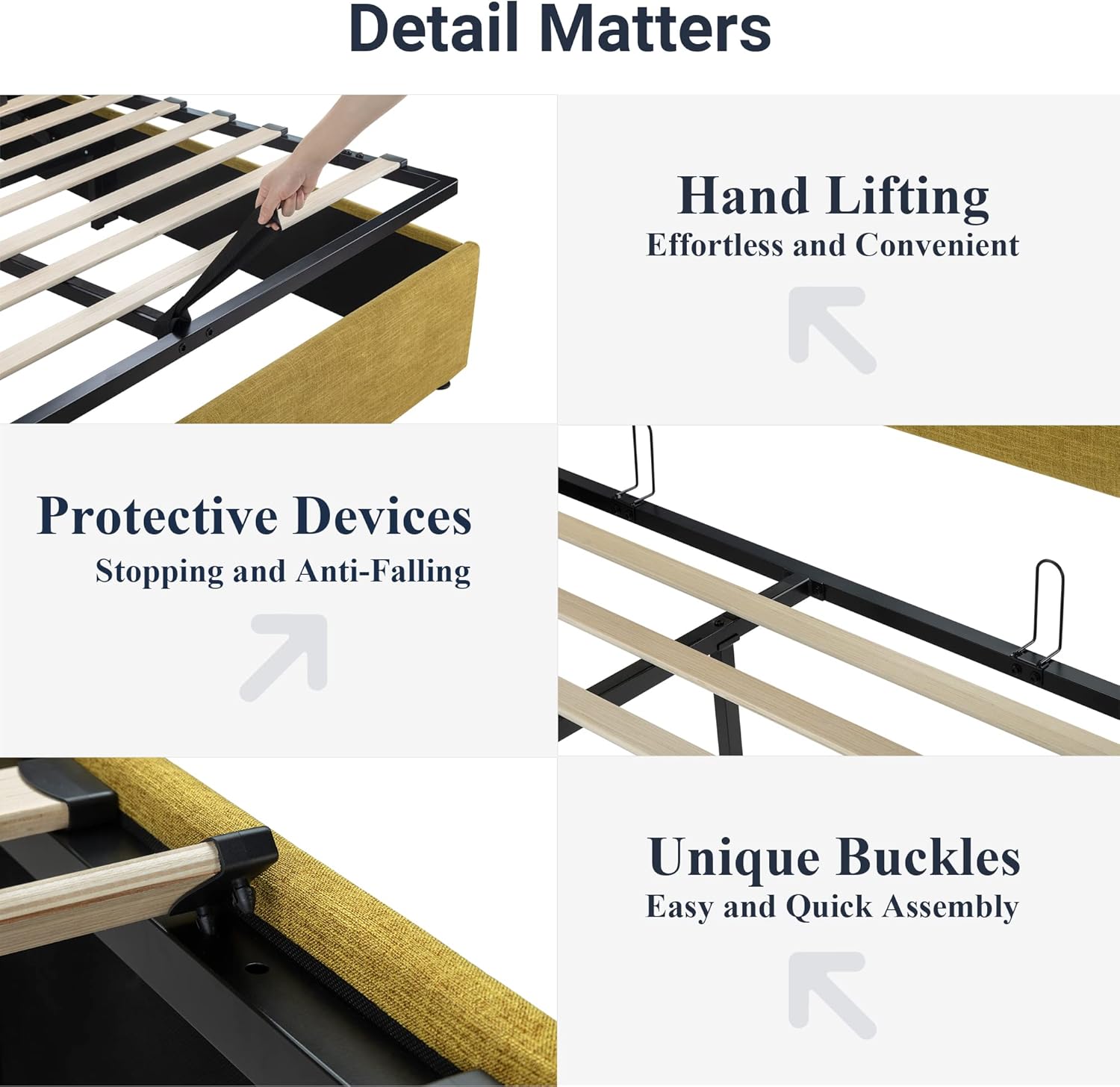 Allewie Queen Size Lift Up Storage Bed, Modern Wingback Headboard, Hydraulic Support, No Box Spring Needed, Light Beige