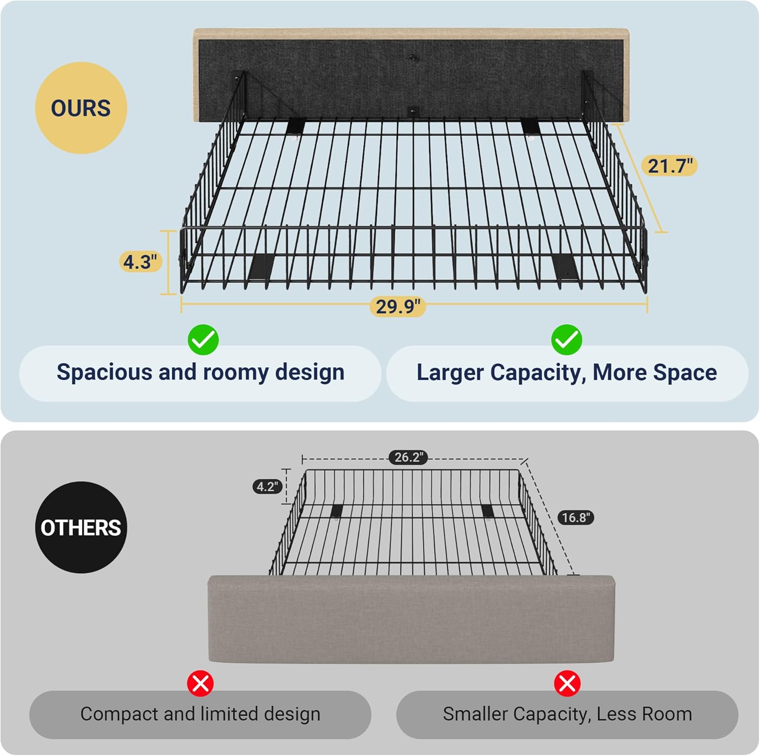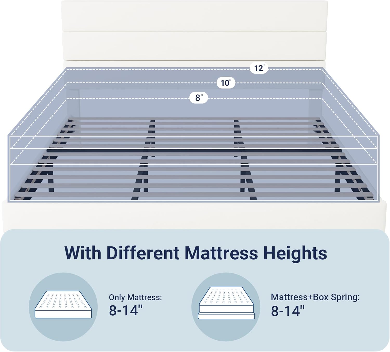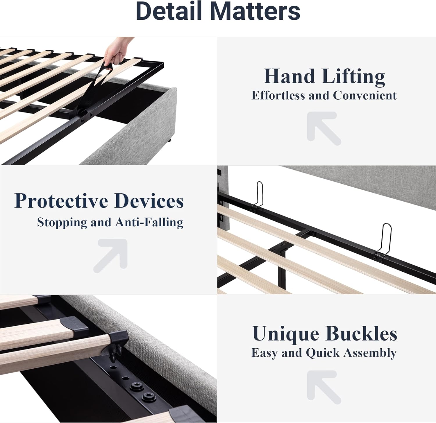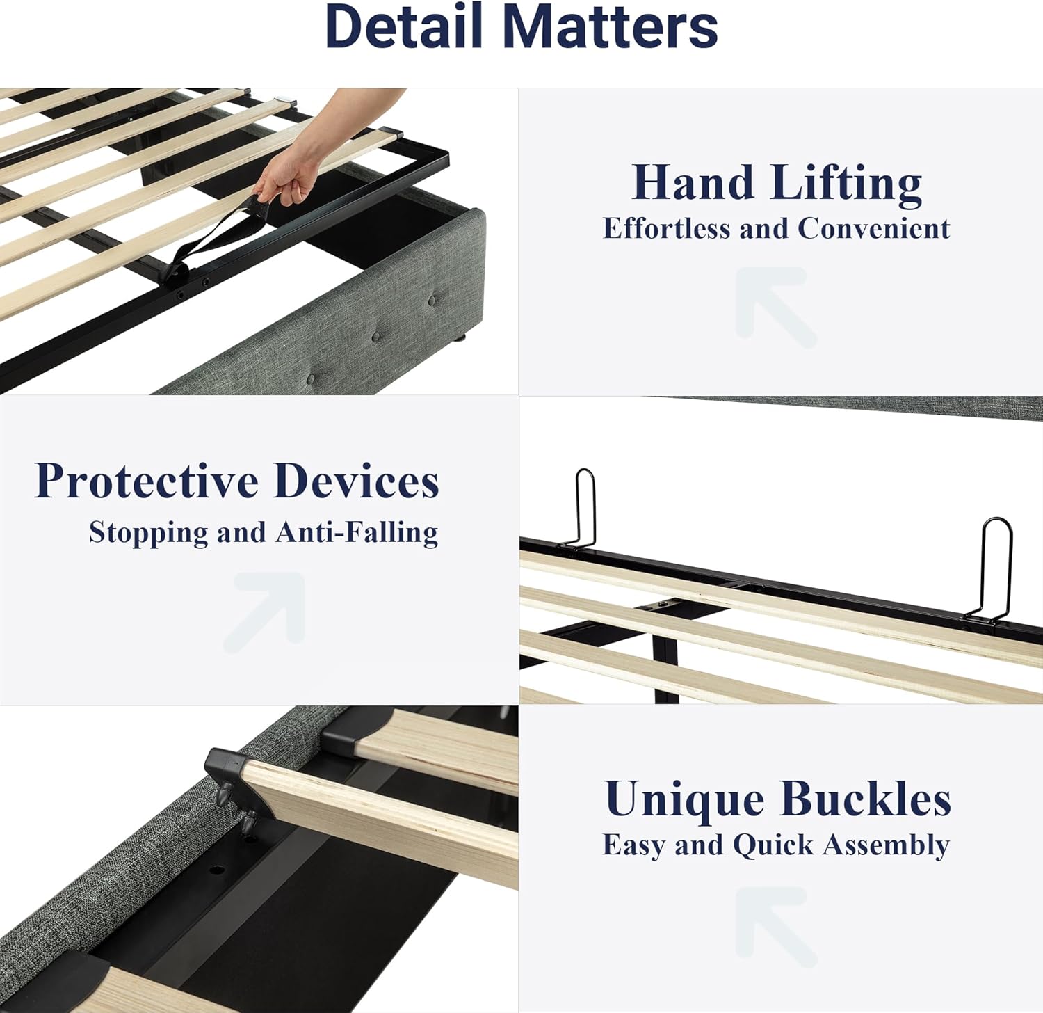 Allewie Queen Size Lift Up Storage Bed, Modern Wingback Headboard, Hydraulic Support, No Box Spring Needed, Light Beige