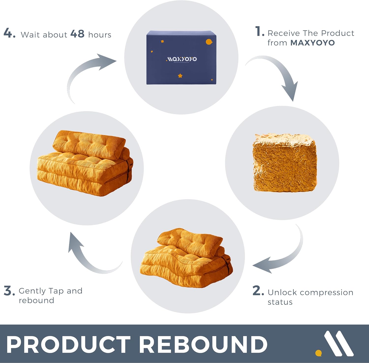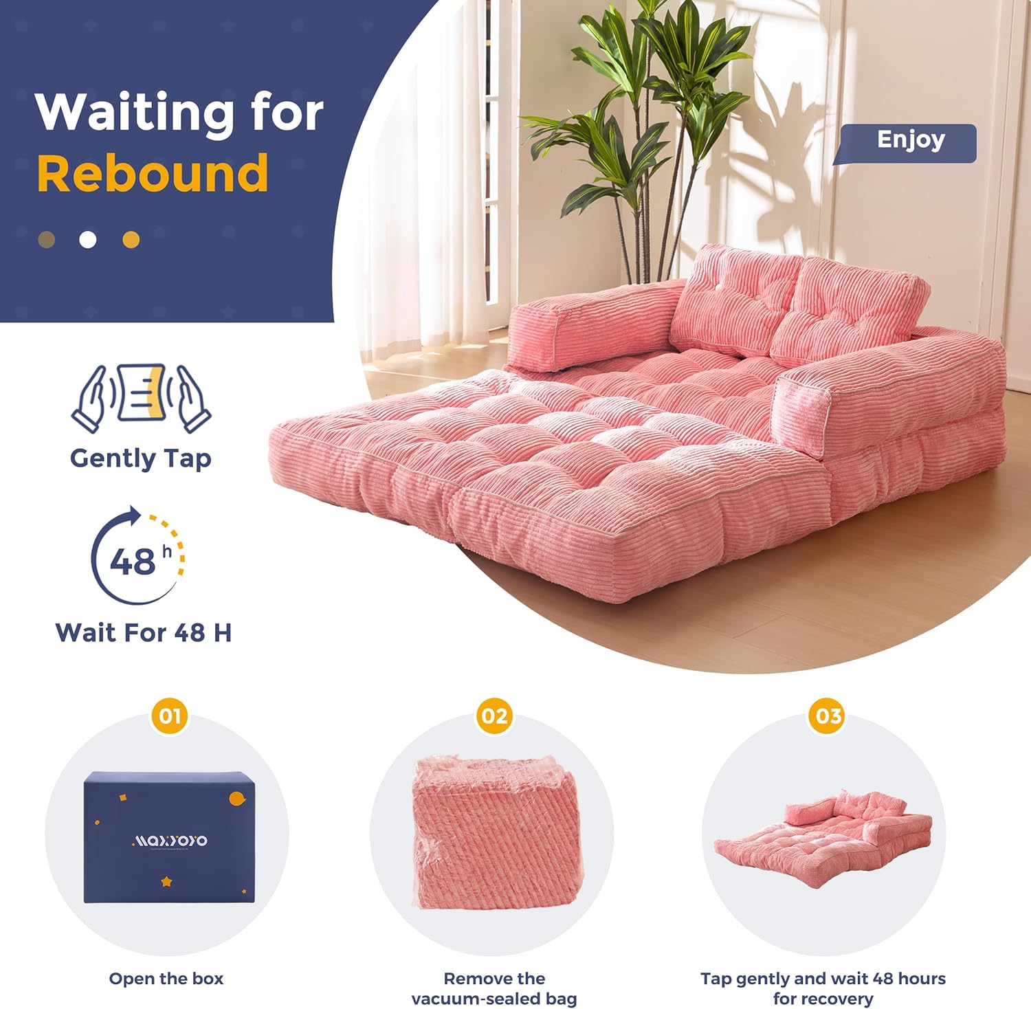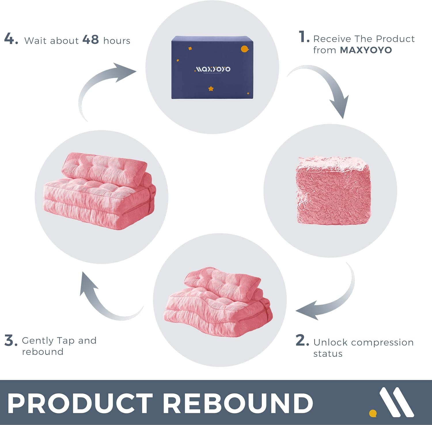 MAXYOYO Folding Sofa Bed, Convertible Sleeper Chair with Pillow Foldable Mattress with Back Support, Portable Fold Out Chair Bed Comfy Floor Sofa Lounge