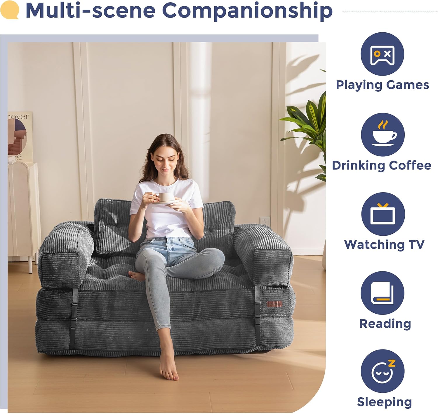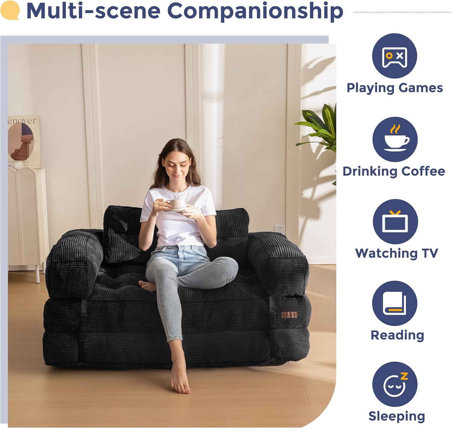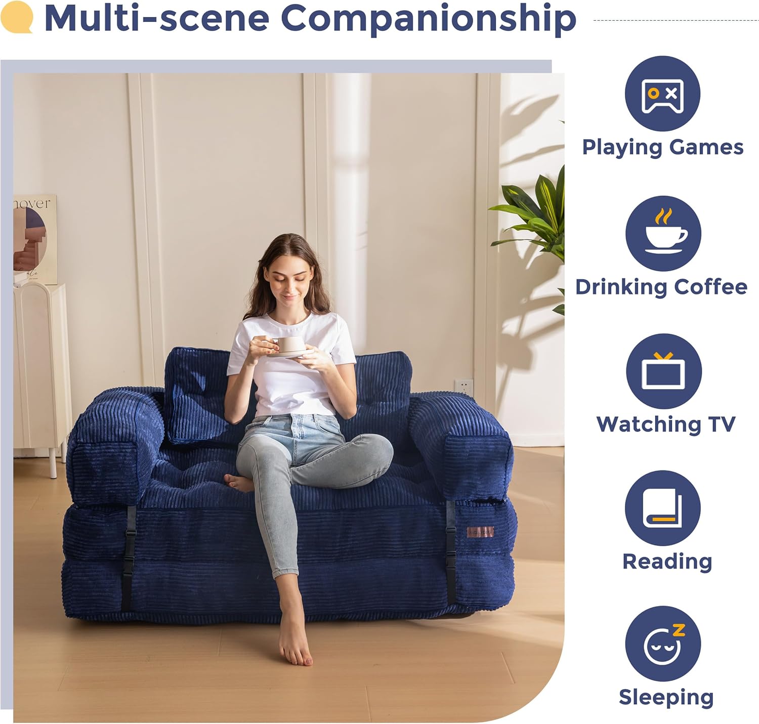 MAXYOYO Folding Sofa Bed, Convertible Sleeper Chair with Pillow Foldable Mattress with Back Support, Portable Fold Out Chair Bed Comfy Floor Sofa Lounge