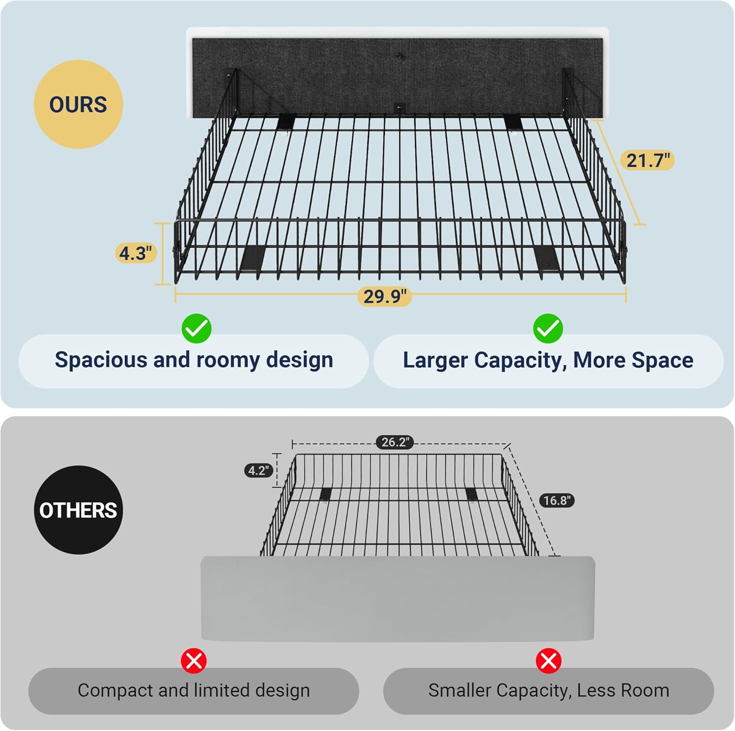 Lifezone Queen Bed Frame with 2-Tier Storage Headboard, Metal Platform Bed Frame with 4 Storage Drawers, Built in Charging Station & LED, Noise-Free/Metal Support/No Box Spring Needed