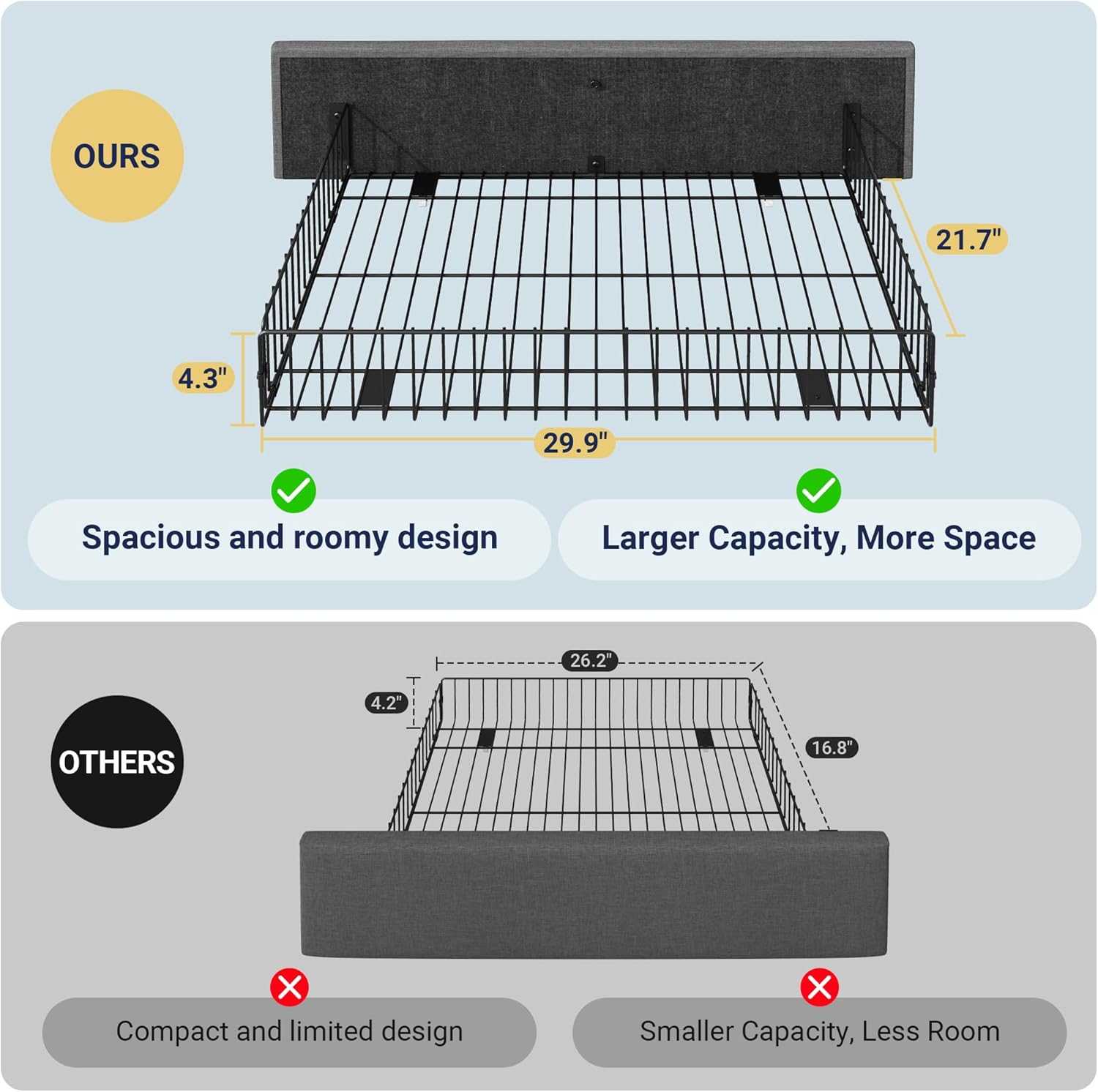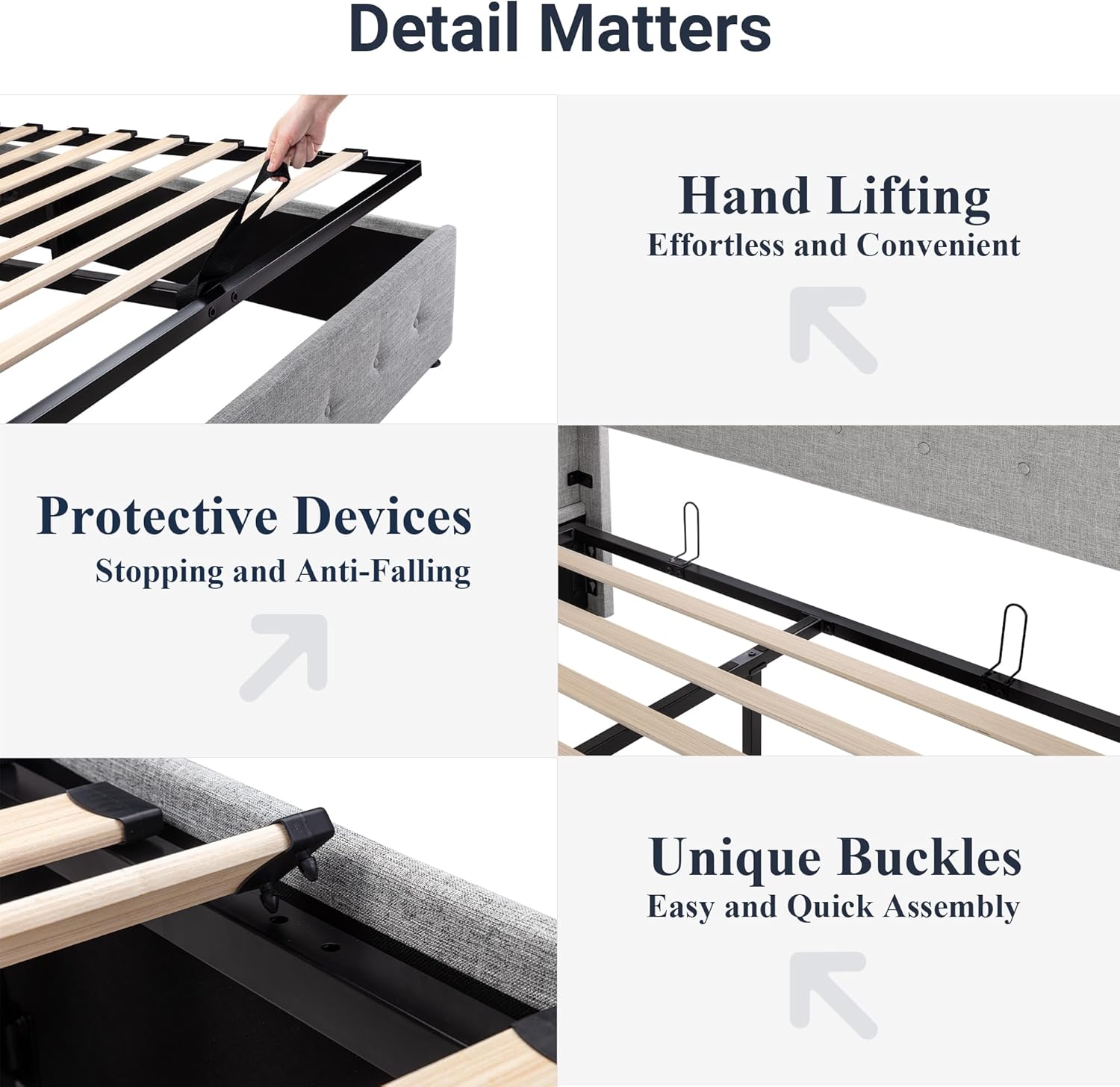 Allewie Upholstered Queen Size Platform Bed Frame with 4 Storage Drawers and Headboard, Square Stitched Button Tufted, Mattress Foundation with Wooden Slats Support, No Box Spring Needed