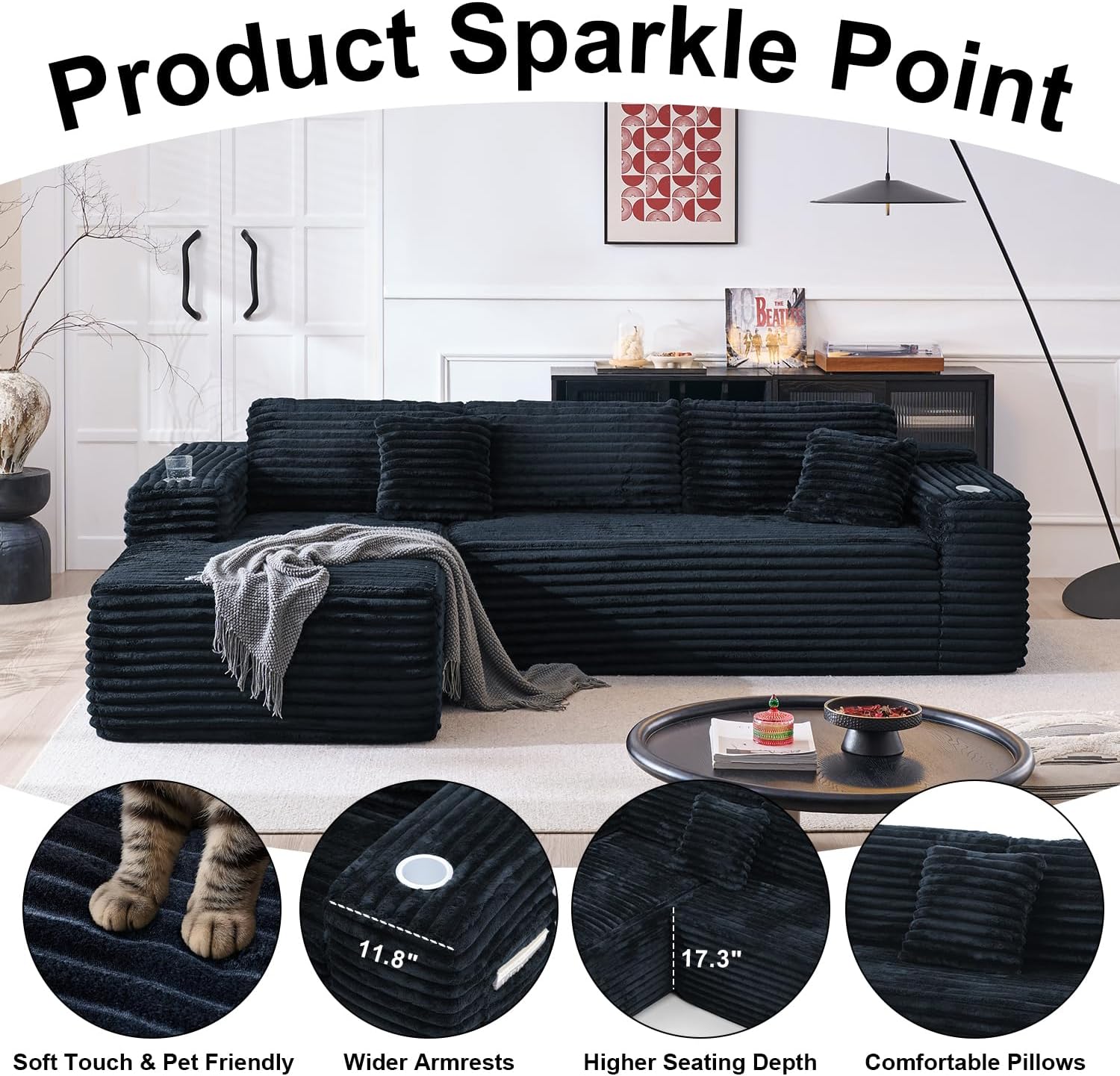108 inch sectional sofa, cloud sectional sofa with deep seat, modern sectional L shaped sofa