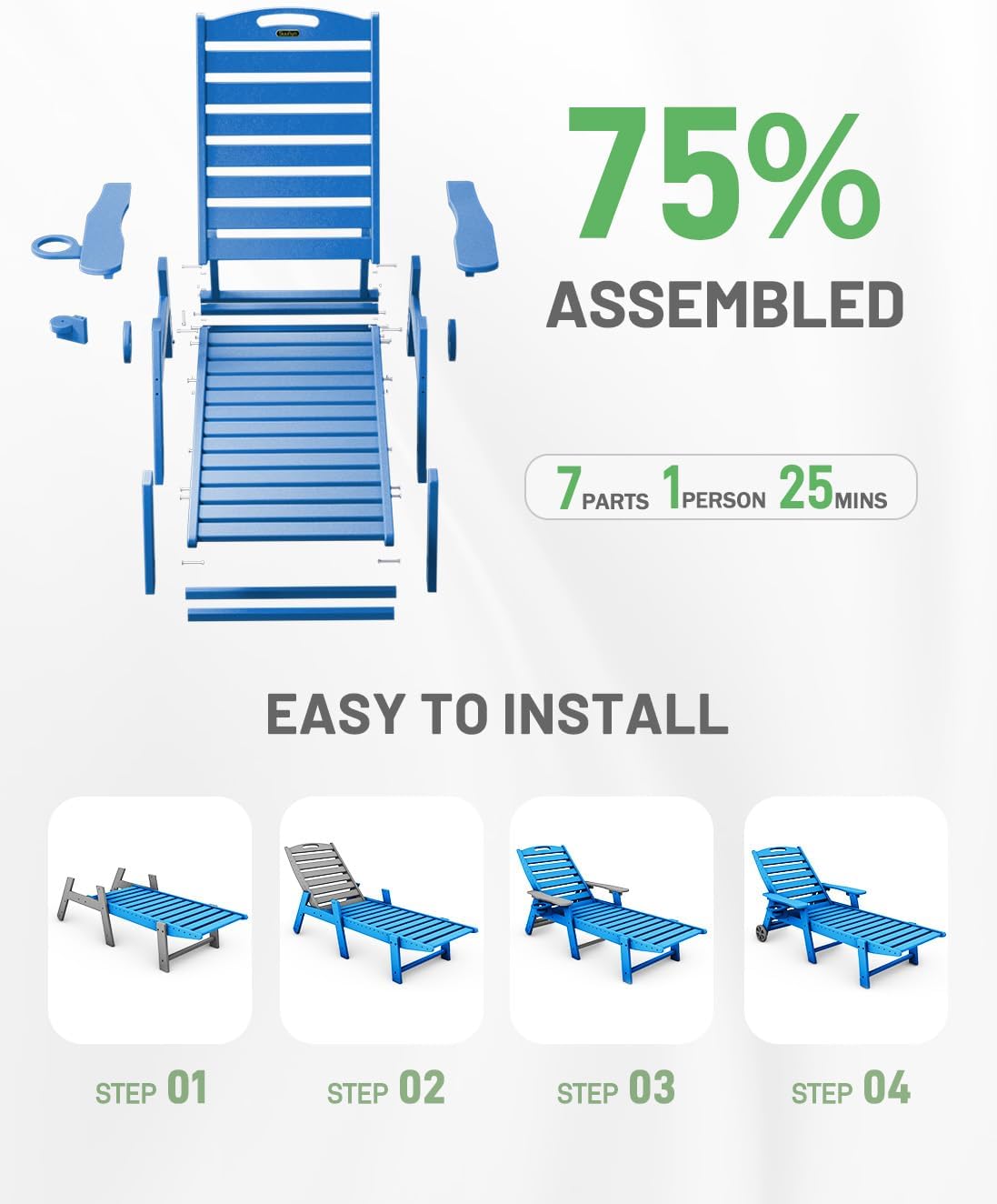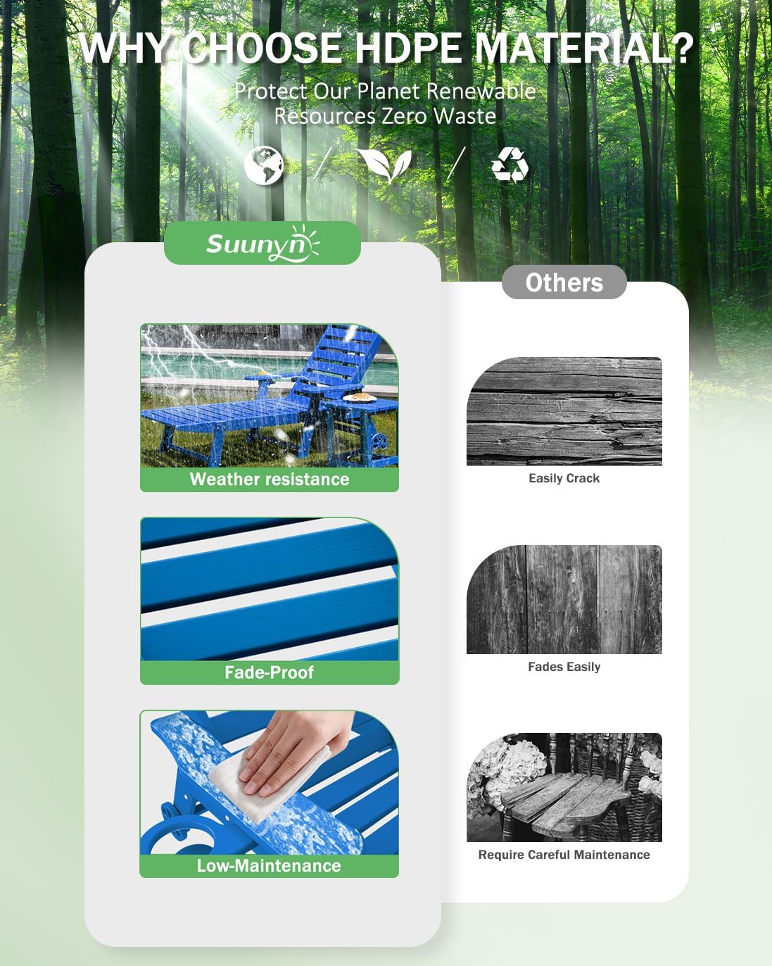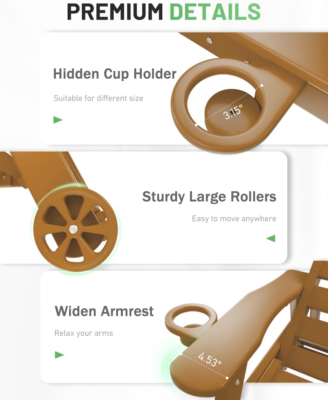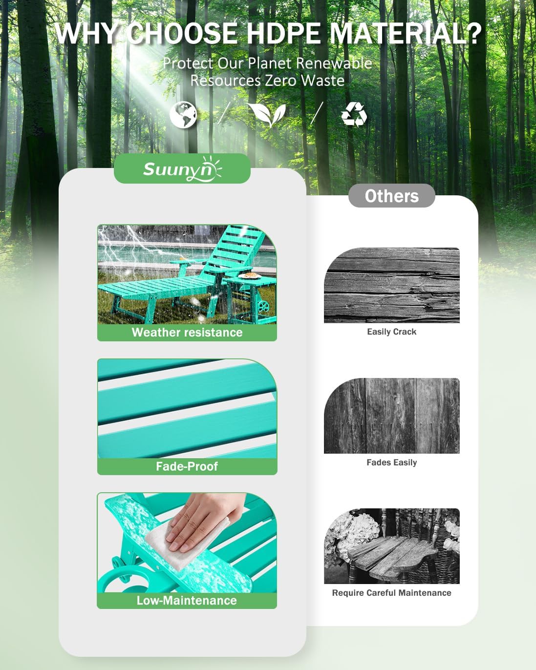 Lounge Chair Outdoor, Chaise Lounge, HDPE 6-Position Outdoor Chaise Lounge, Patio Lounge Chair with Wheels & Cup Holder for Pool Poolside Deck Backyard, Teak