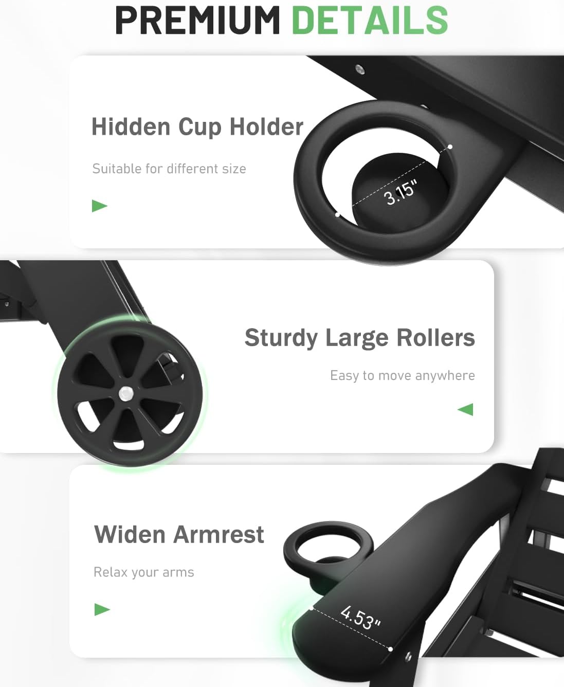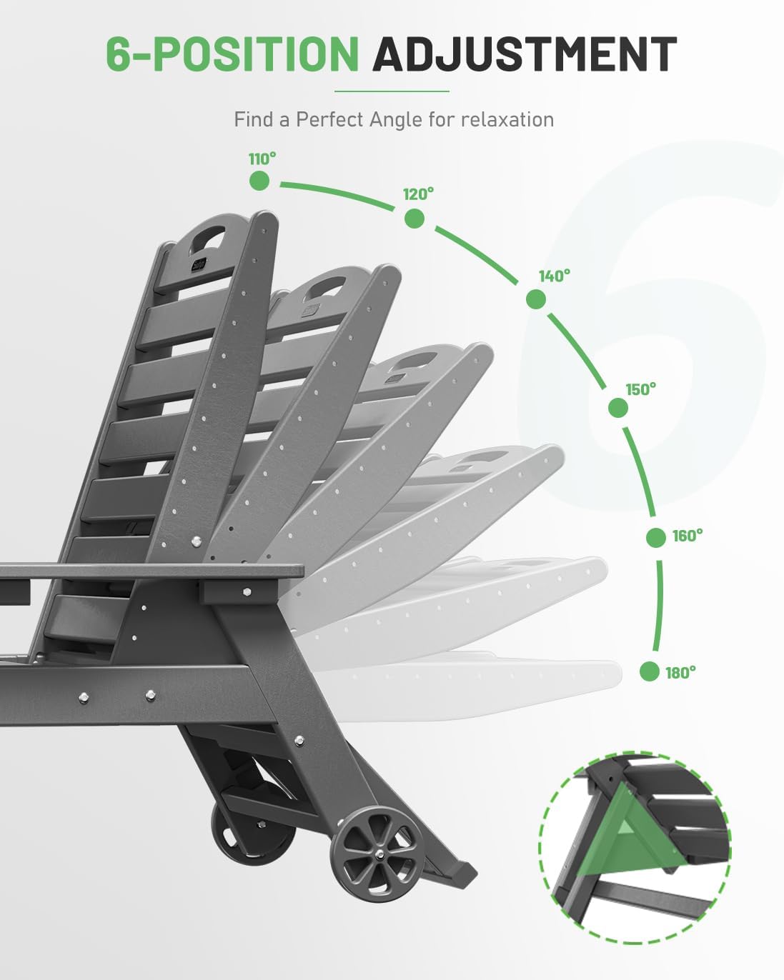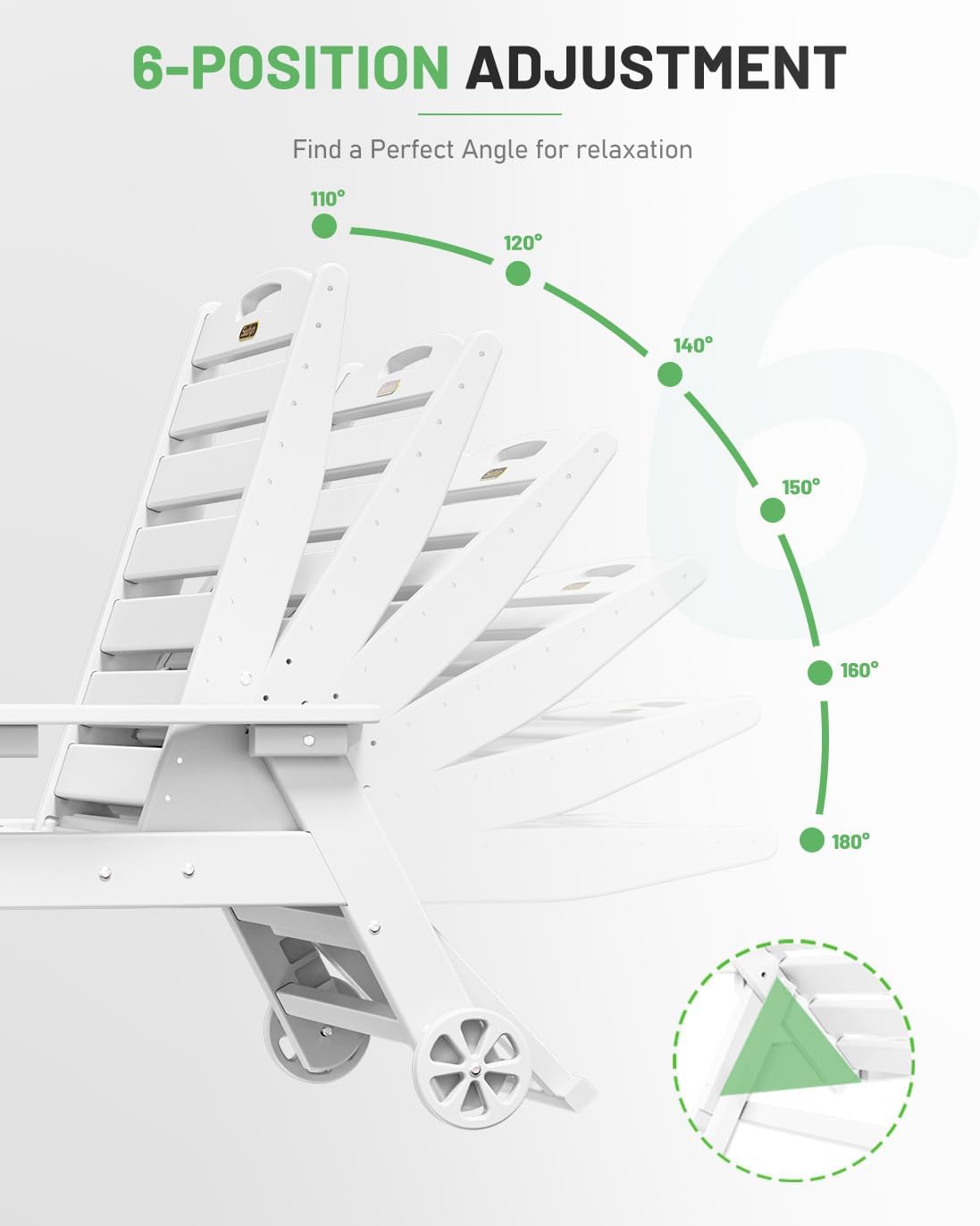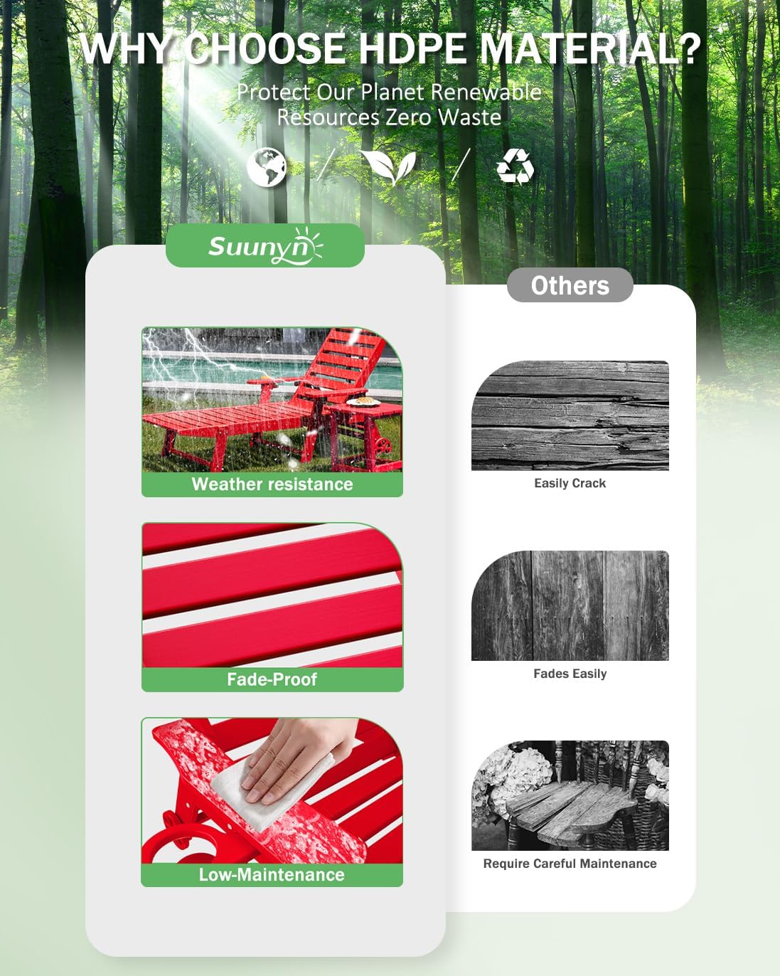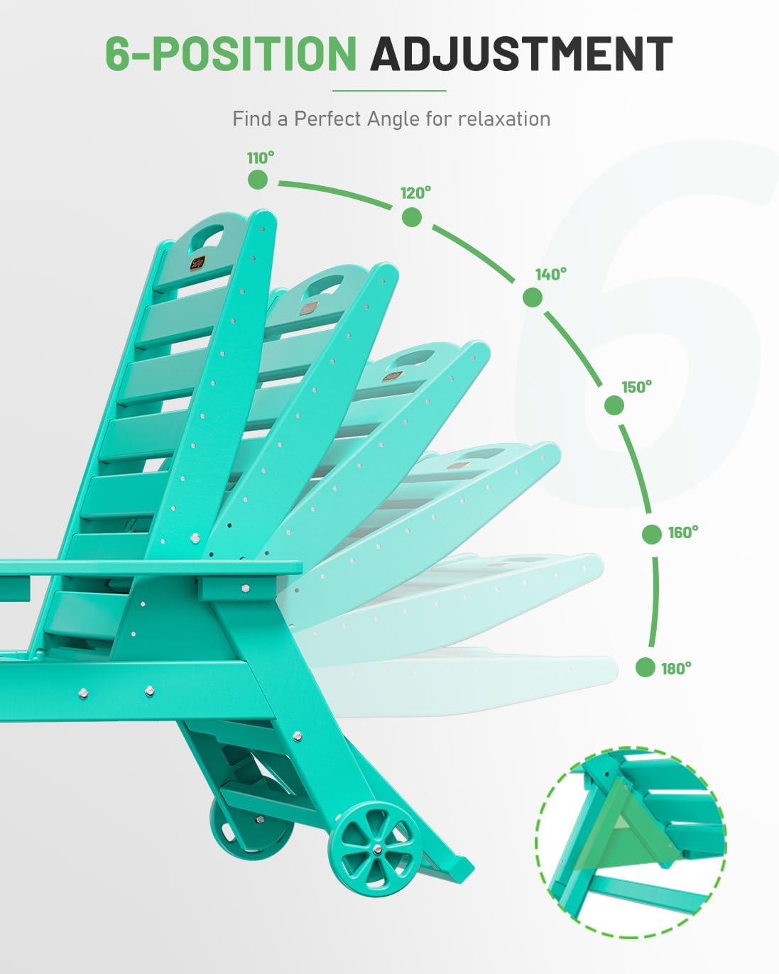 Lounge Chair Outdoor, Chaise Lounge, HDPE 6-Position Outdoor Chaise Lounge, Patio Lounge Chair with Wheels & Cup Holder for Pool Poolside Deck Backyard, Teak