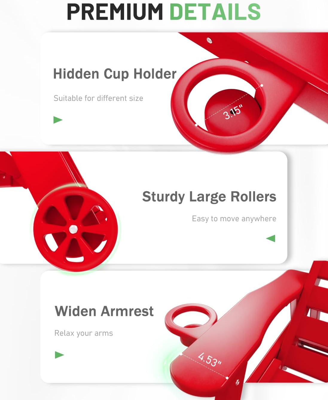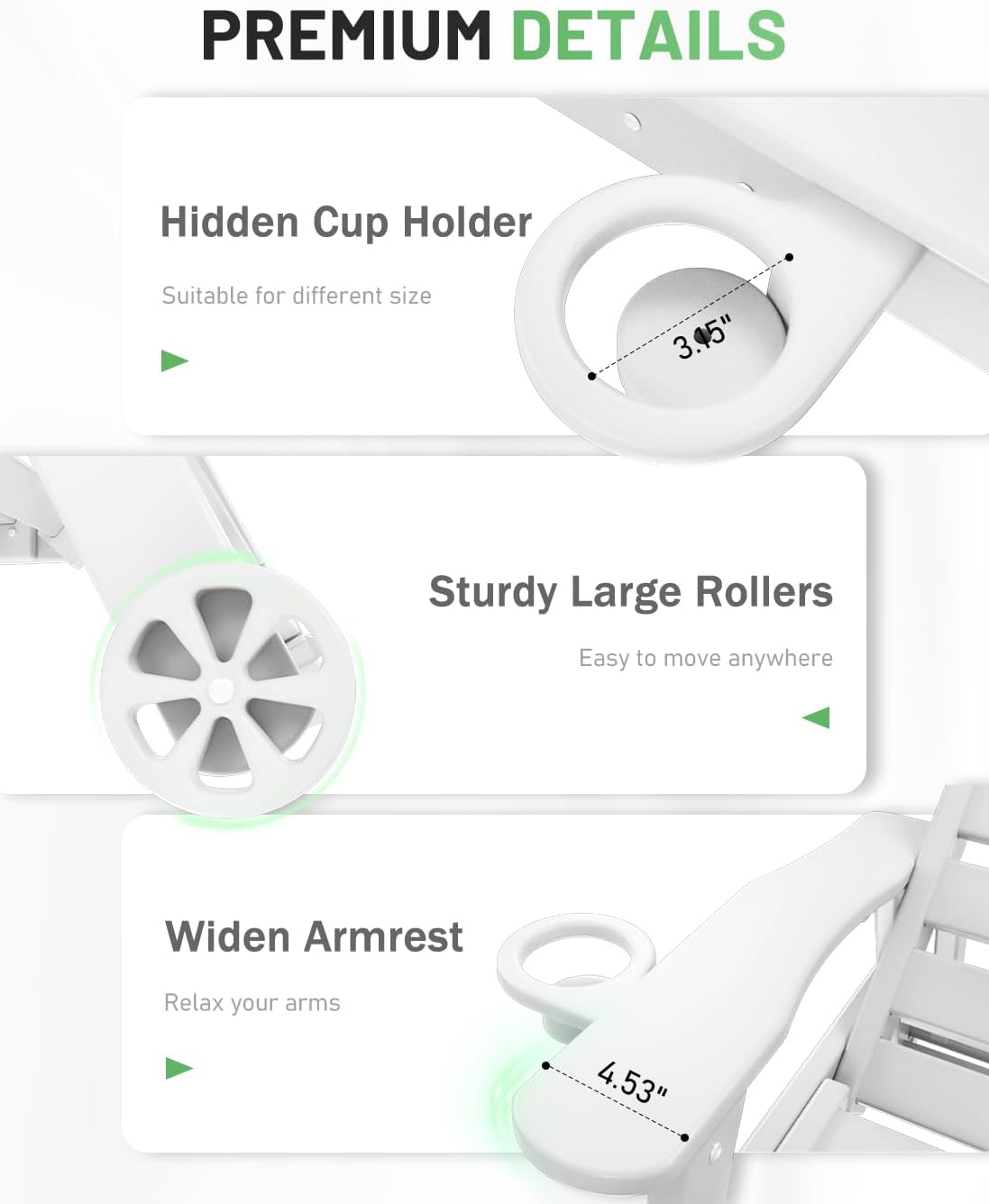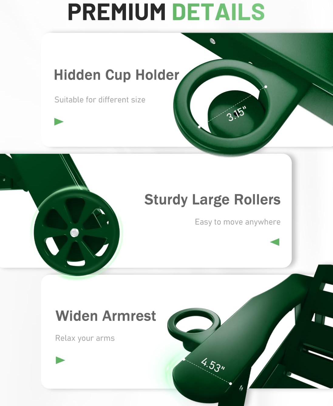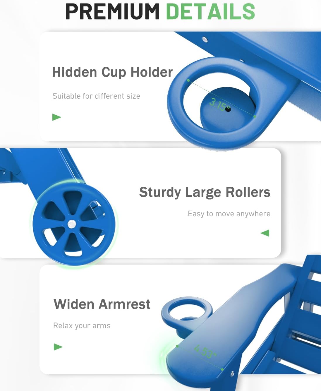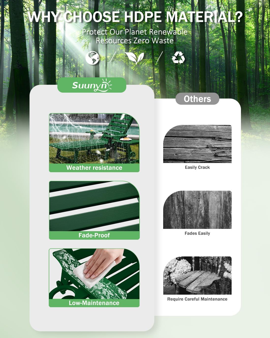 Lounge Chair Outdoor, Chaise Lounge, HDPE 6-Position Outdoor Chaise Lounge, Patio Lounge Chair with Wheels & Cup Holder for Pool Poolside Deck Backyard, Teak