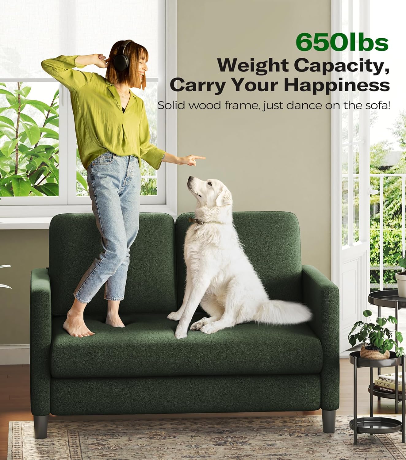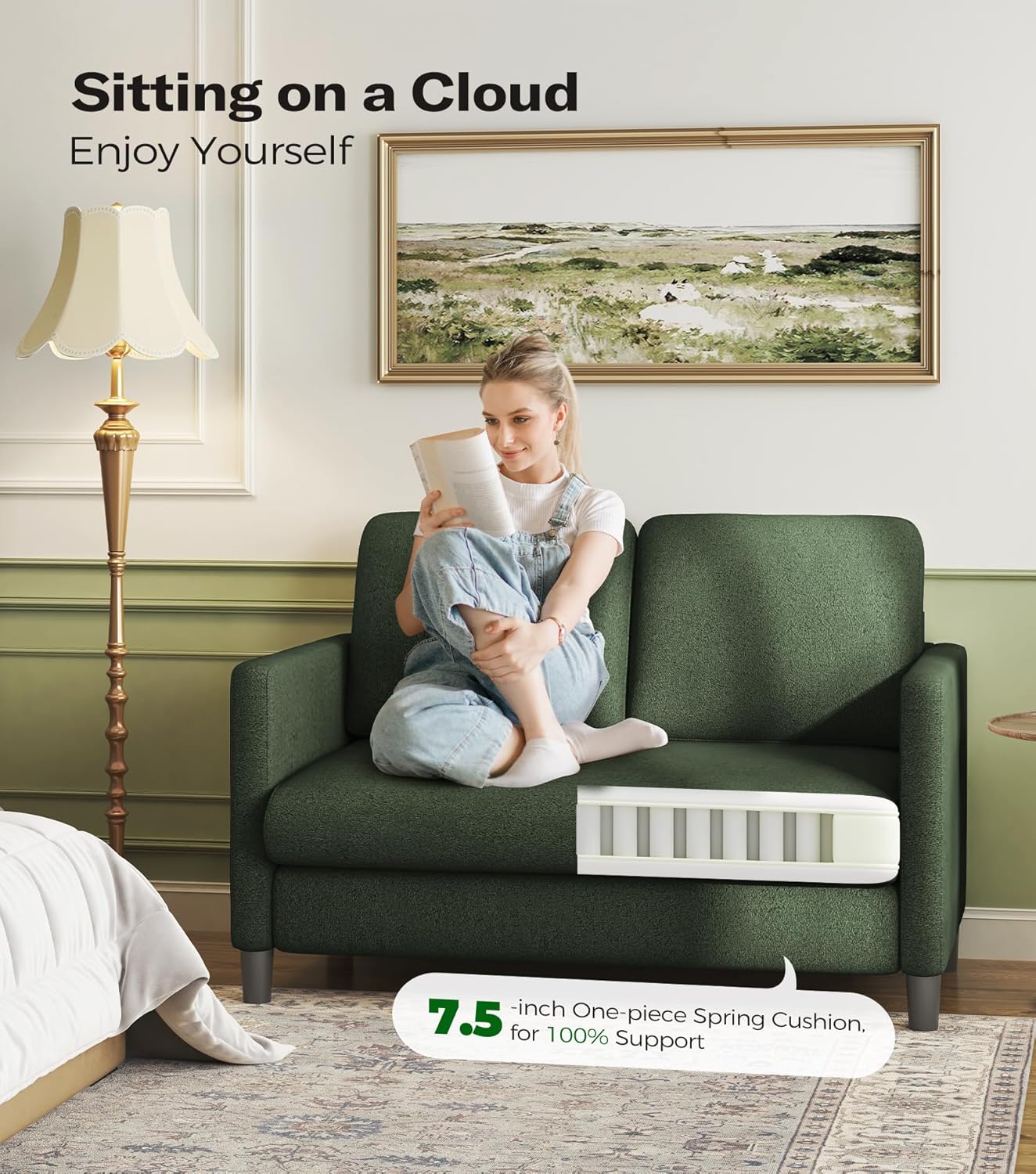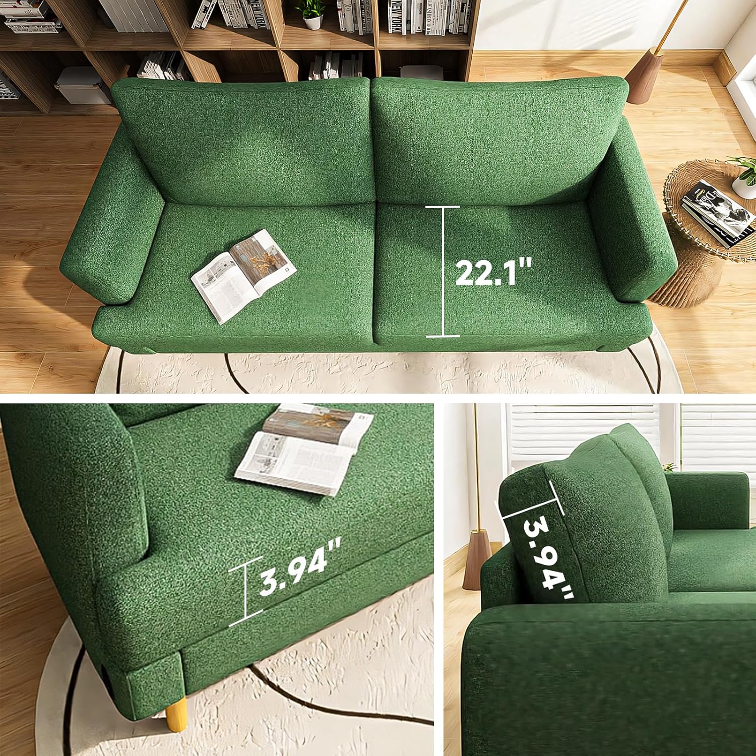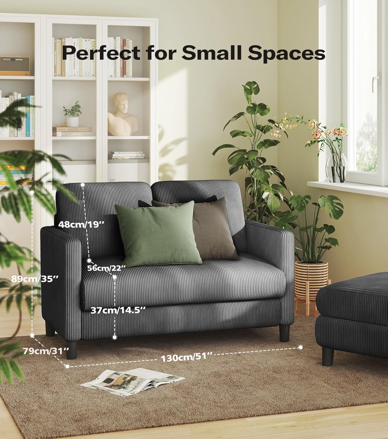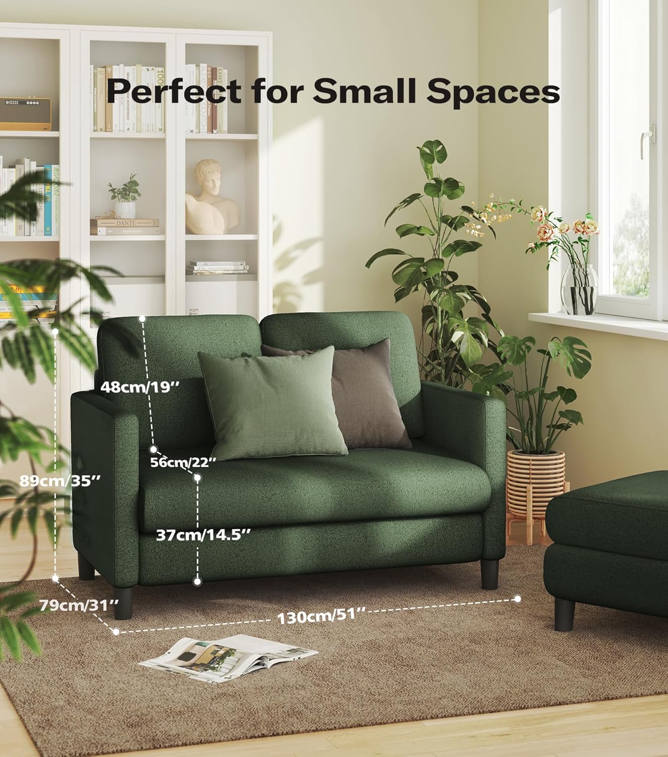 Loveseat Sofa 51" Love Seat, Comfy Corduroy Small Loveseat for Small Spaces, Tool-Free Setup Couch for Bedroom, All-Wood Couches for Living Room, No Pillow Included, Green
