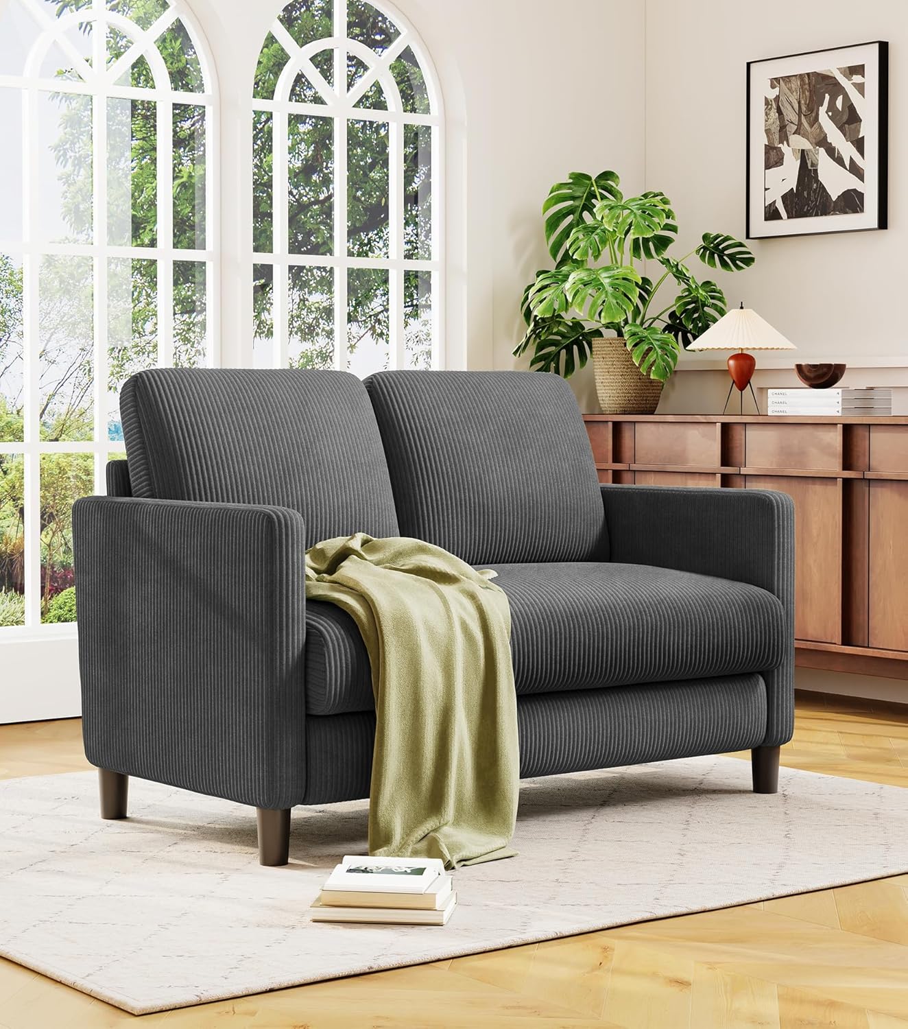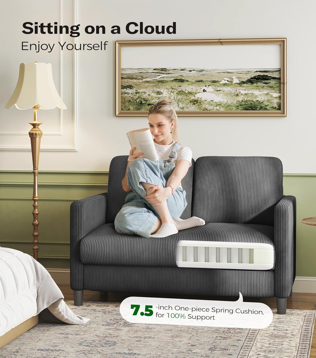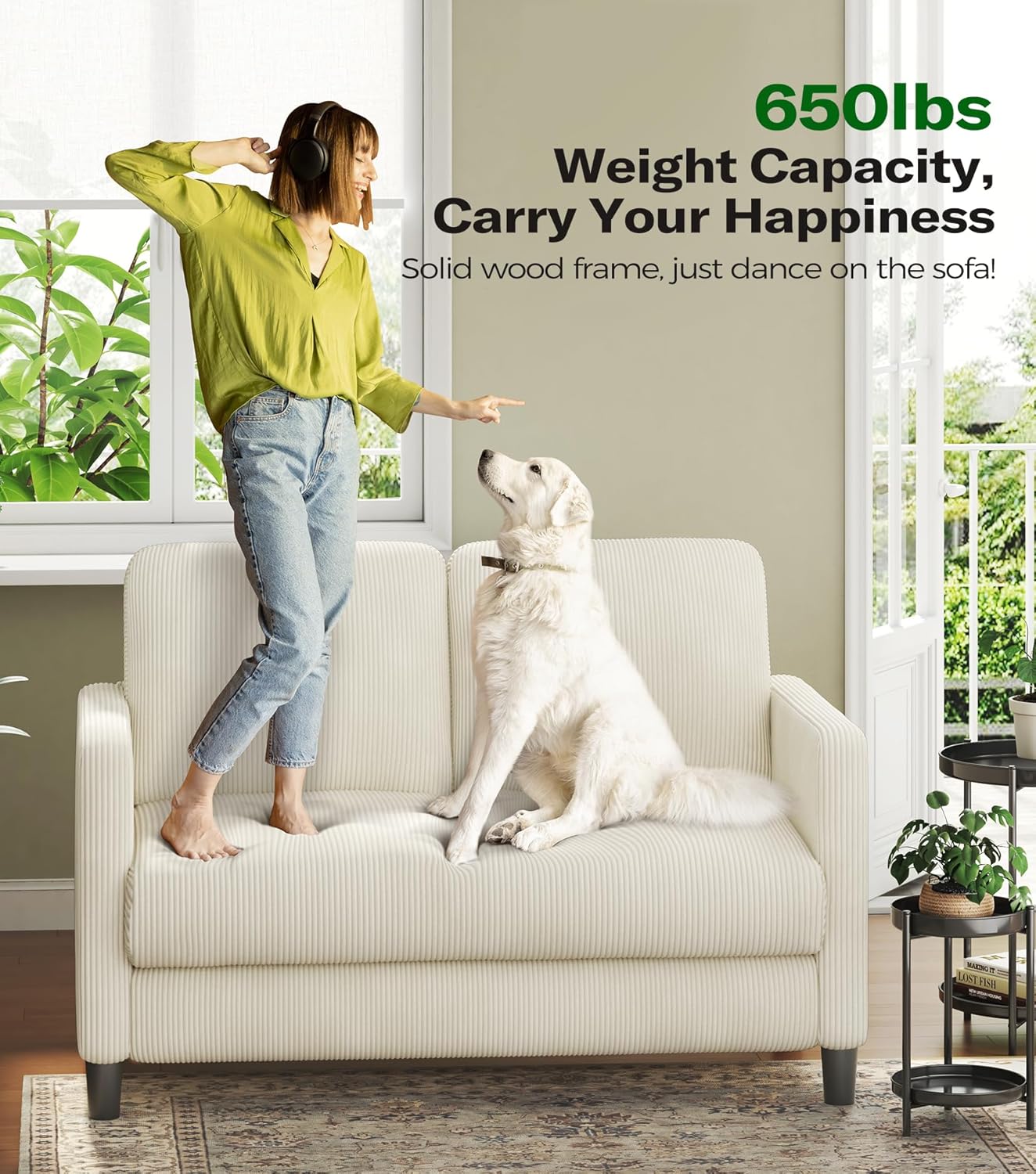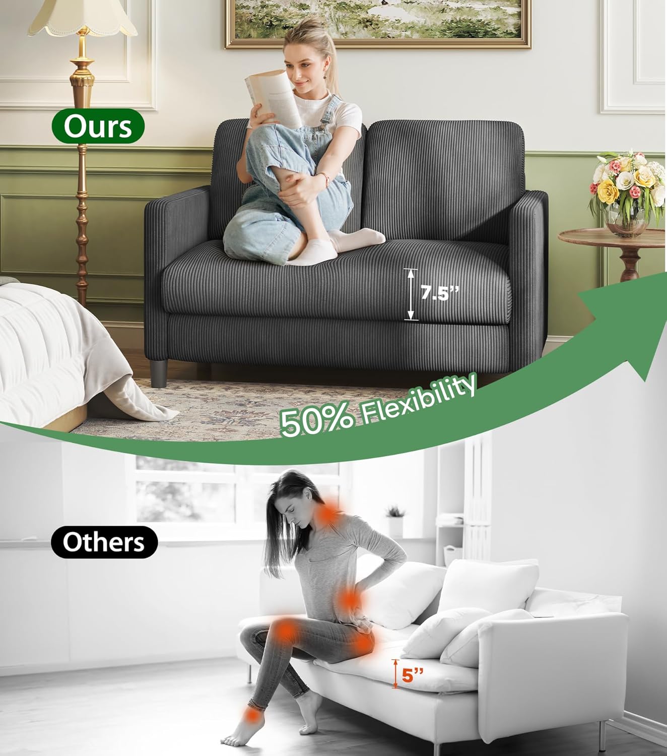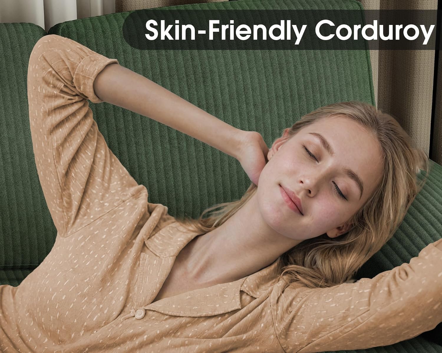 Loveseat Sofa 51" Love Seat, Comfy Corduroy Small Loveseat for Small Spaces, Tool-Free Setup Couch for Bedroom, All-Wood Couches for Living Room, No Pillow Included, Green