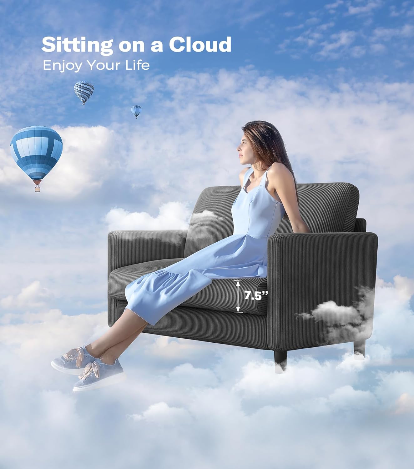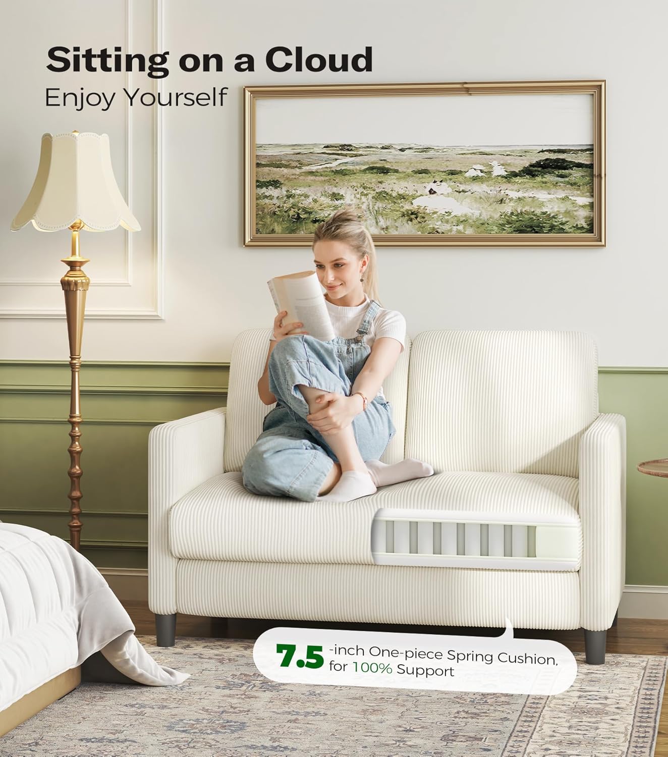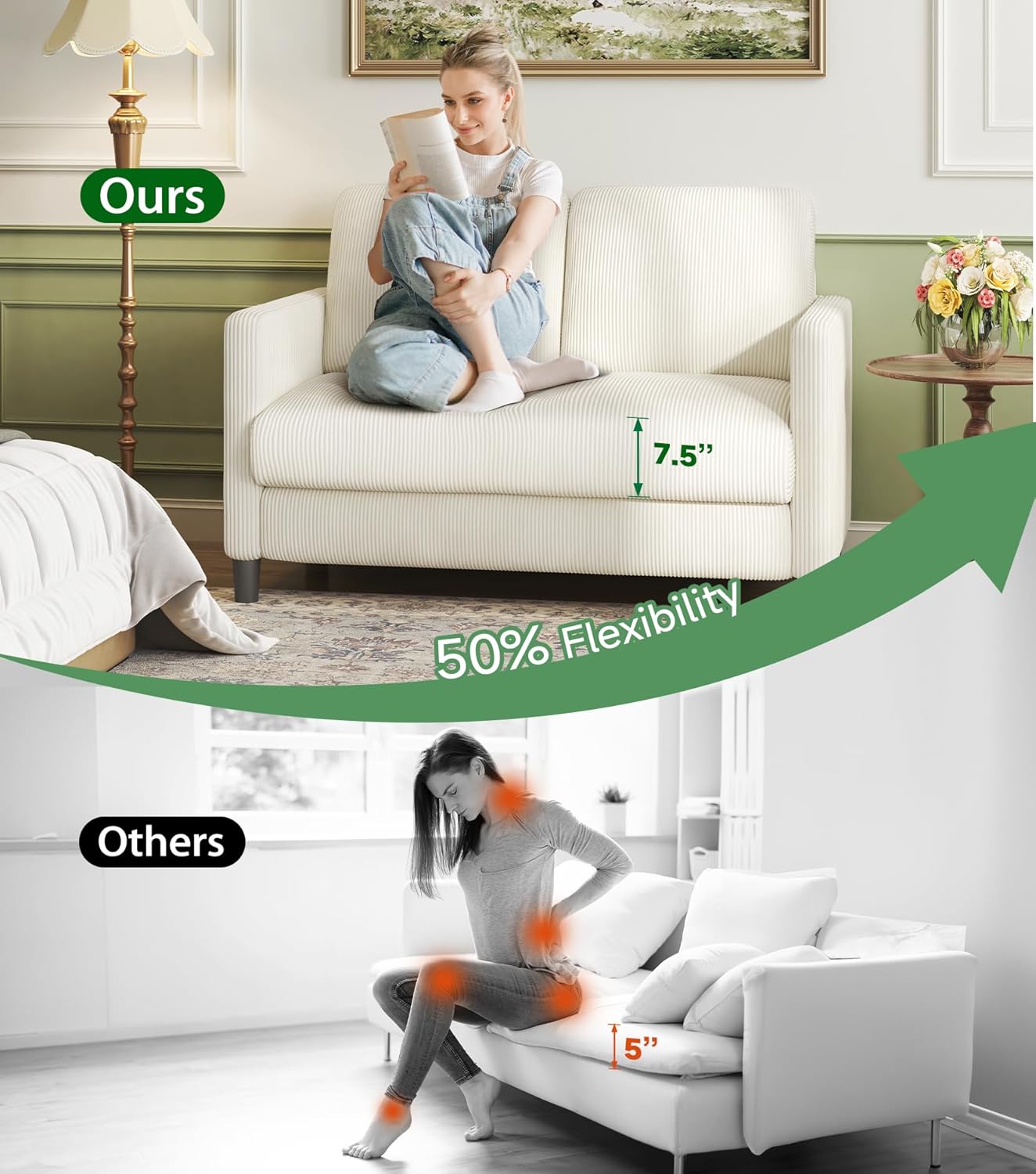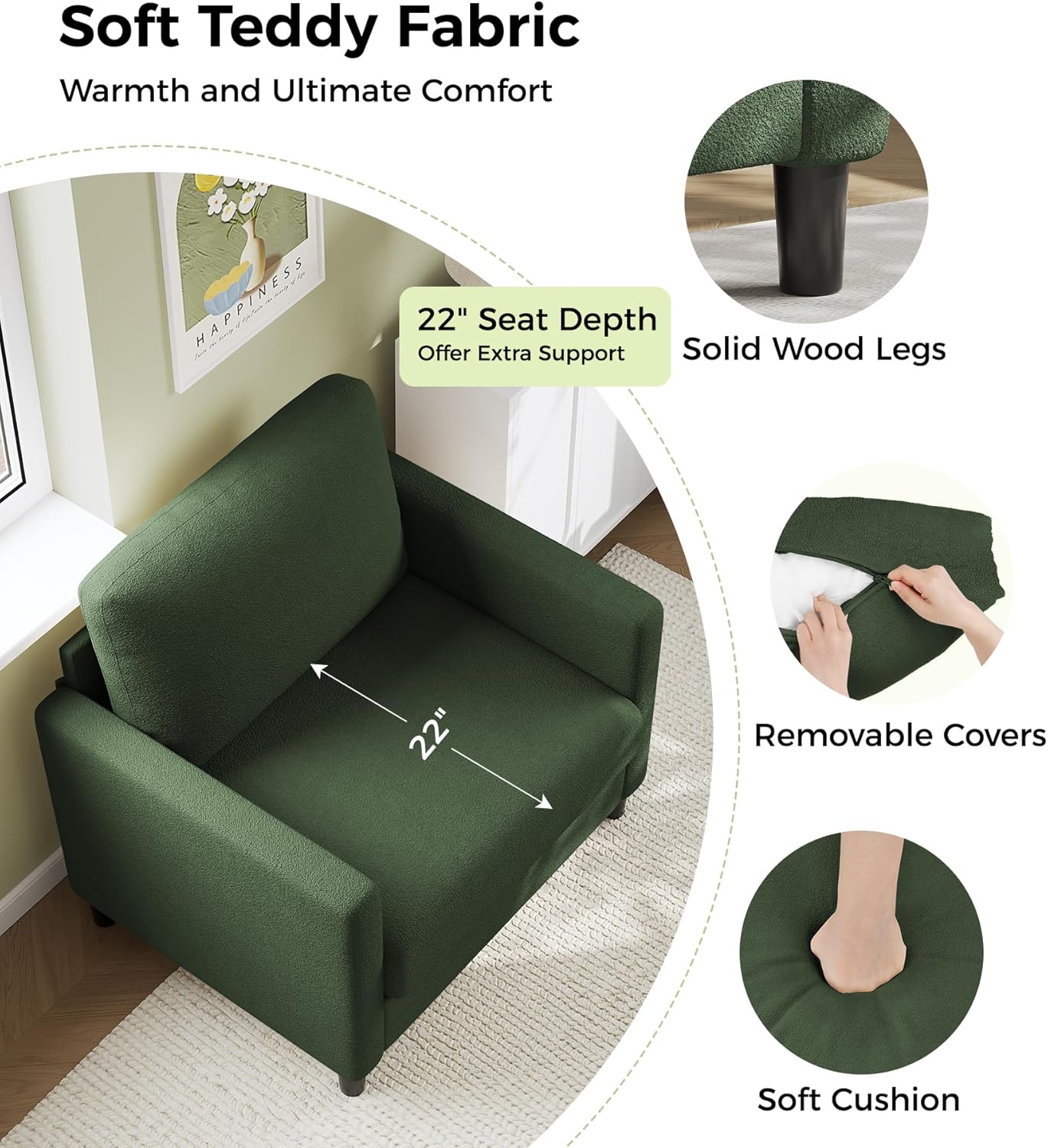 Loveseat Sofa 51" Love Seat, Comfy Corduroy Small Loveseat for Small Spaces, Tool-Free Setup Couch for Bedroom, All-Wood Couches for Living Room, No Pillow Included, Green