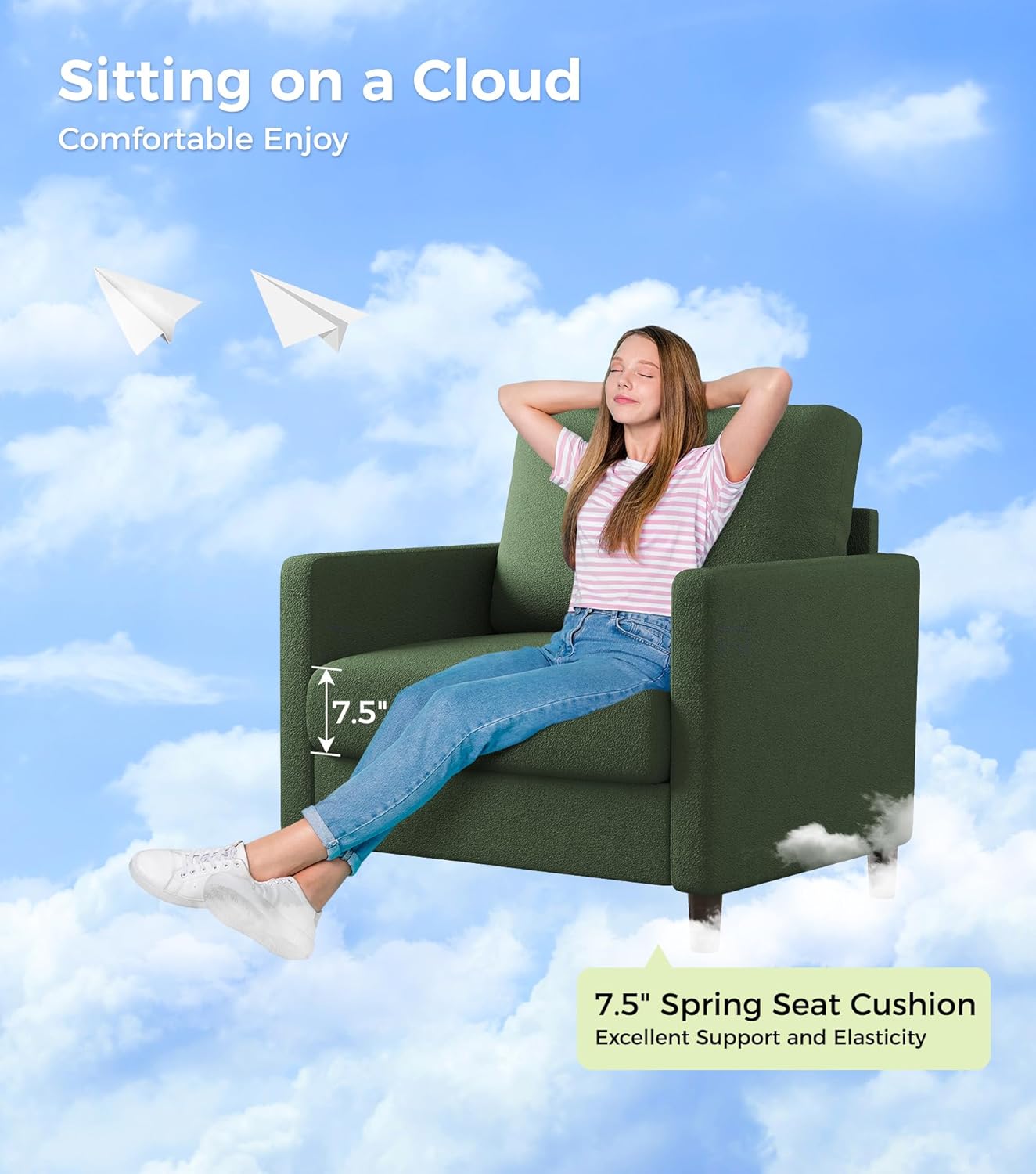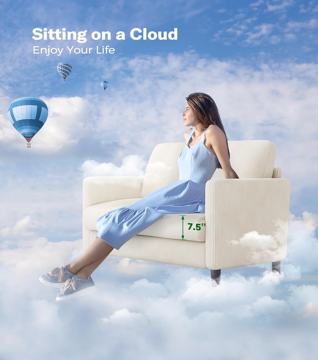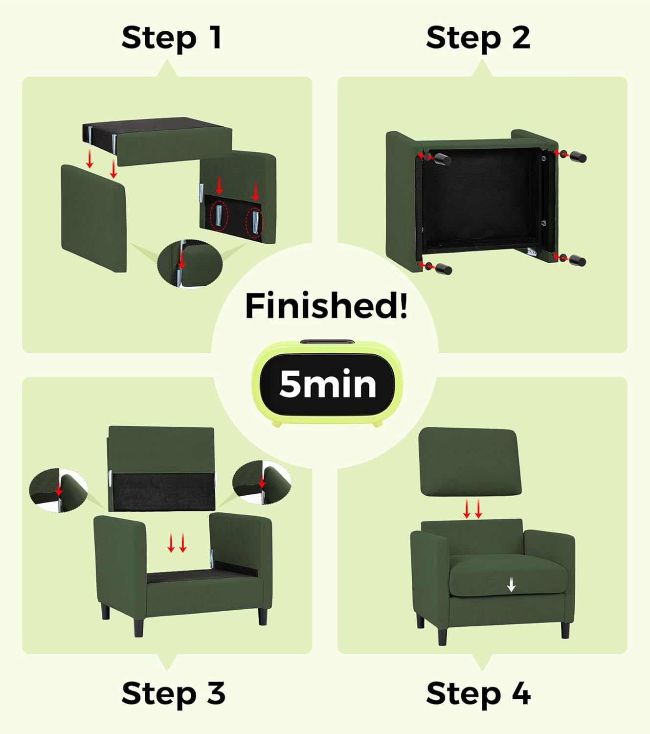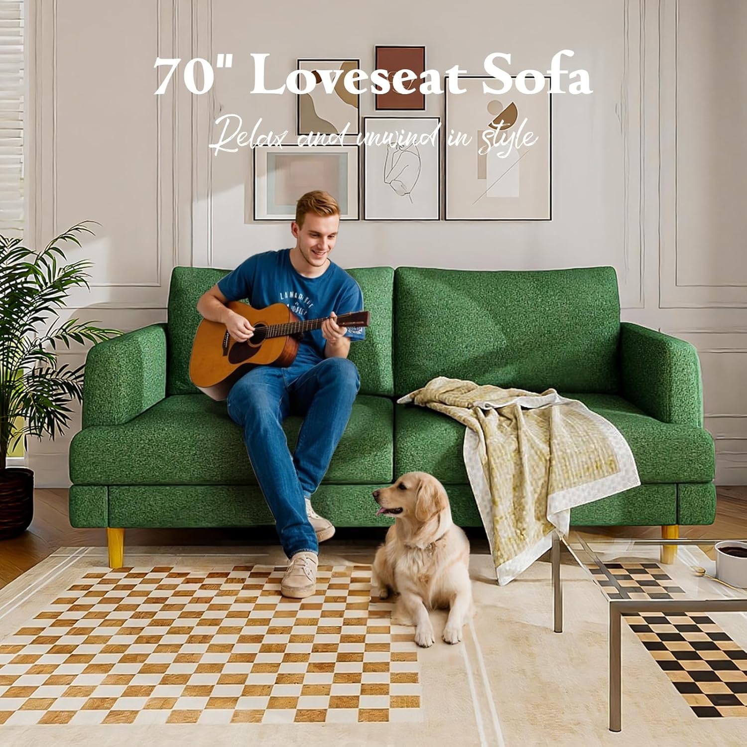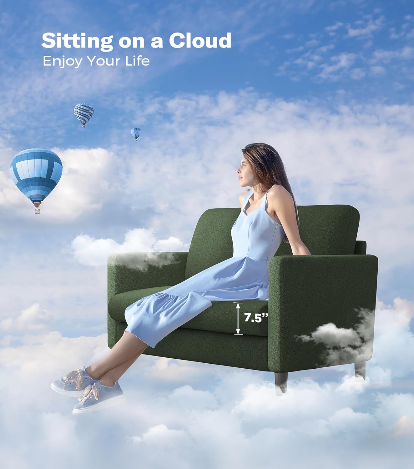 Loveseat Sofa 51" Love Seat, Comfy Corduroy Small Loveseat for Small Spaces, Tool-Free Setup Couch for Bedroom, All-Wood Couches for Living Room, No Pillow Included, Green