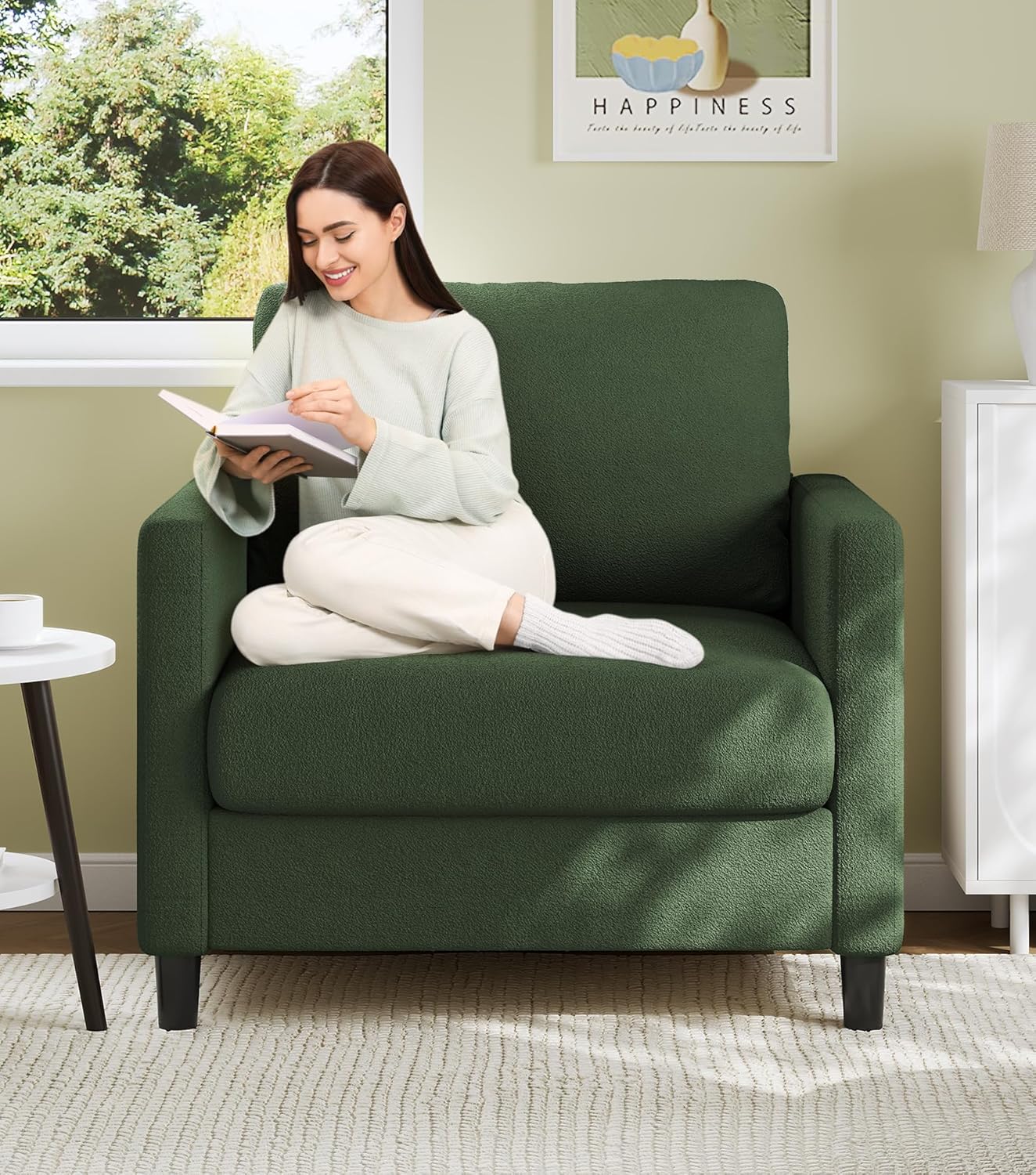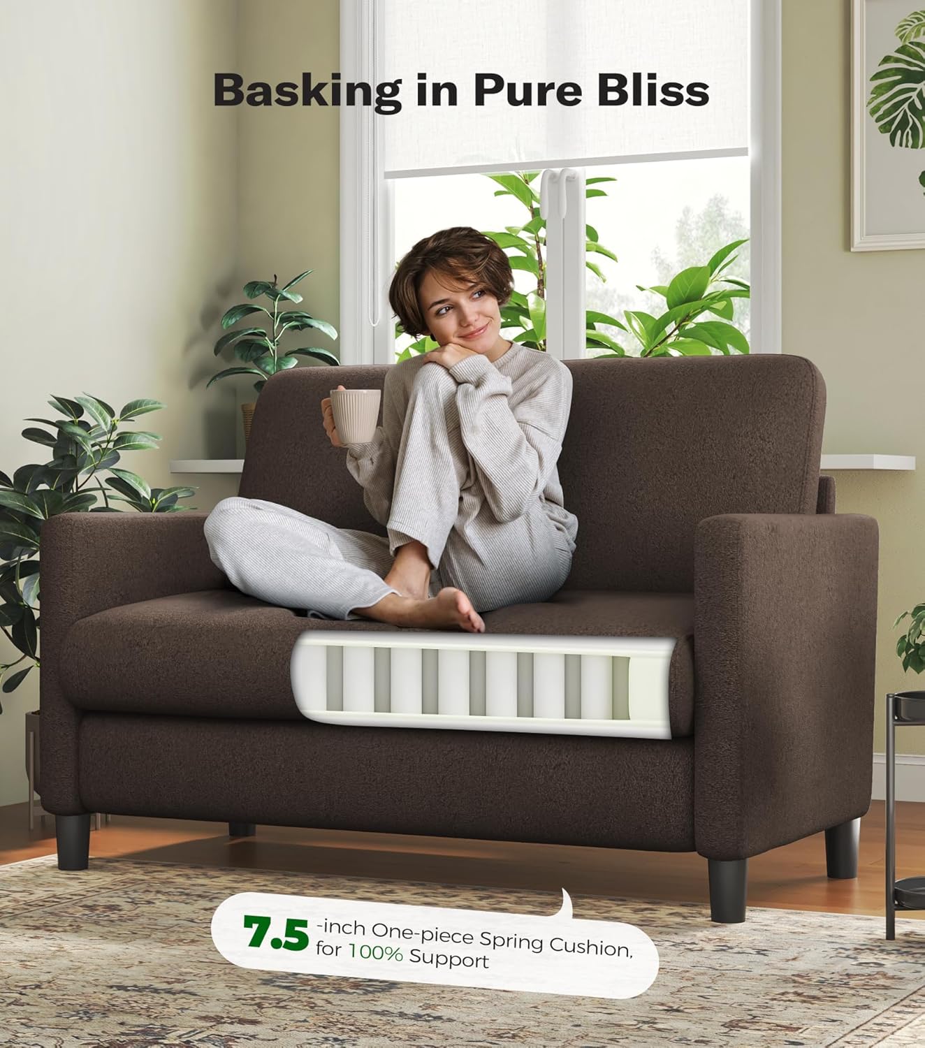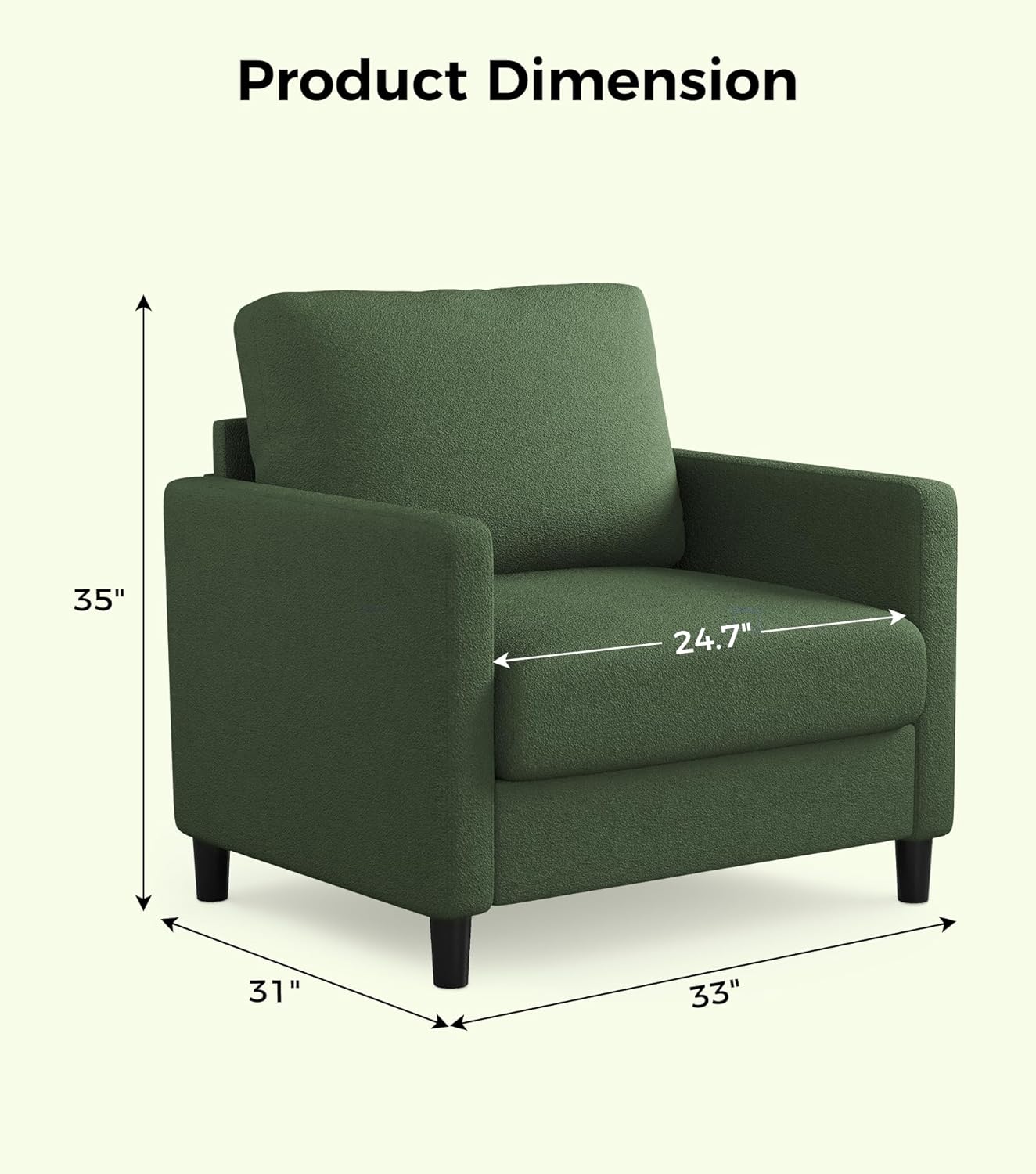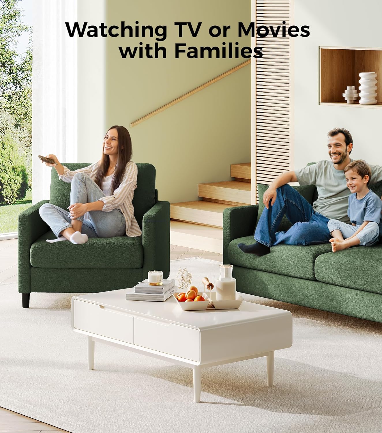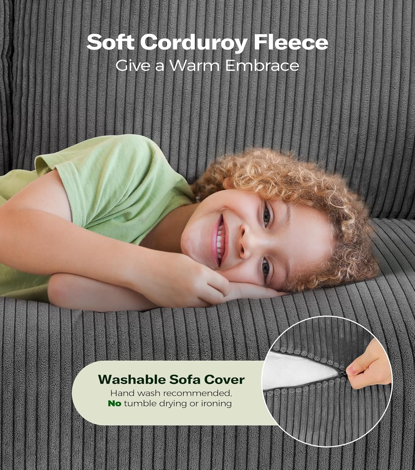 Loveseat Sofa 51" Love Seat, Comfy Corduroy Small Loveseat for Small Spaces, Tool-Free Setup Couch for Bedroom, All-Wood Couches for Living Room, No Pillow Included, Green