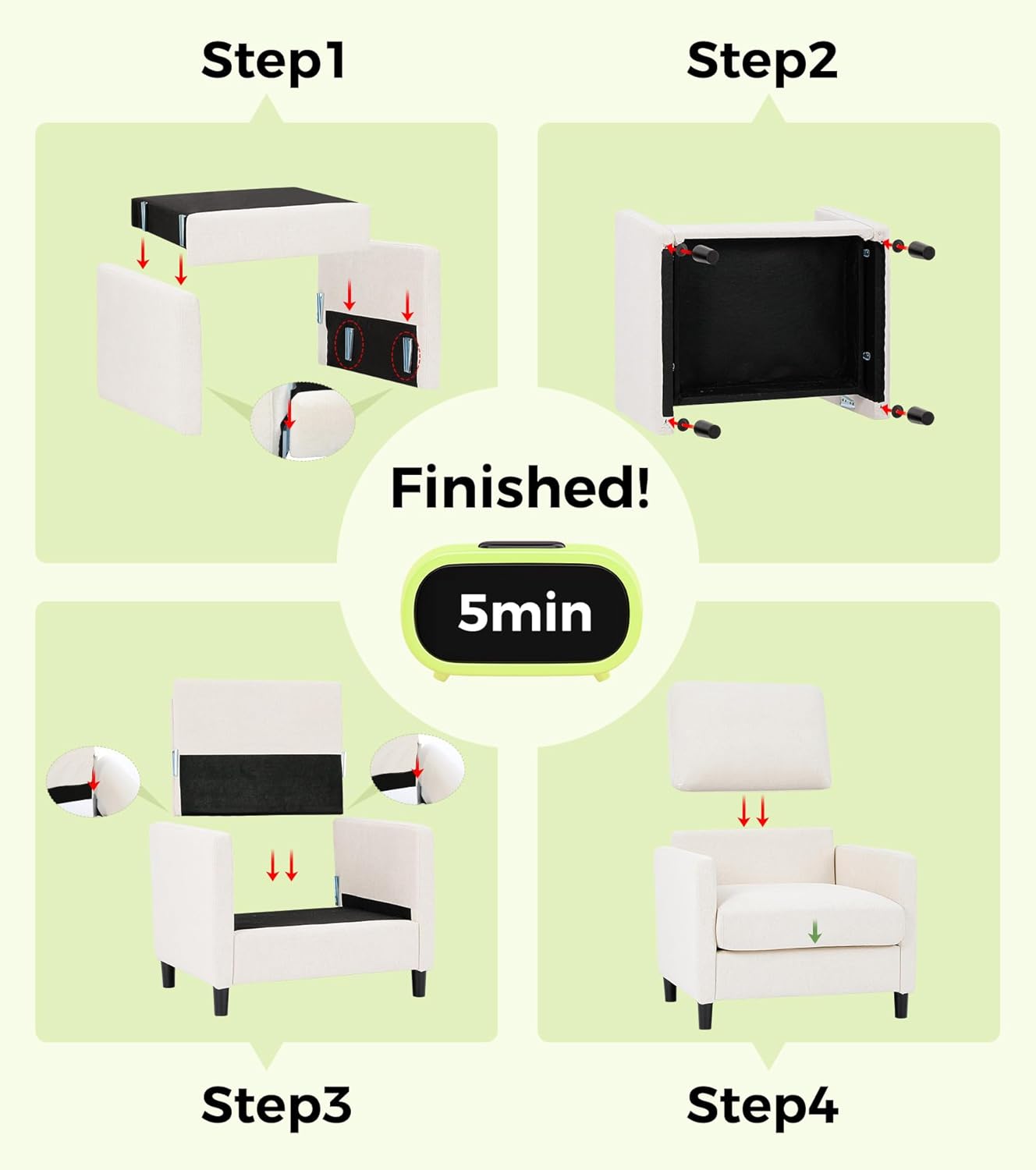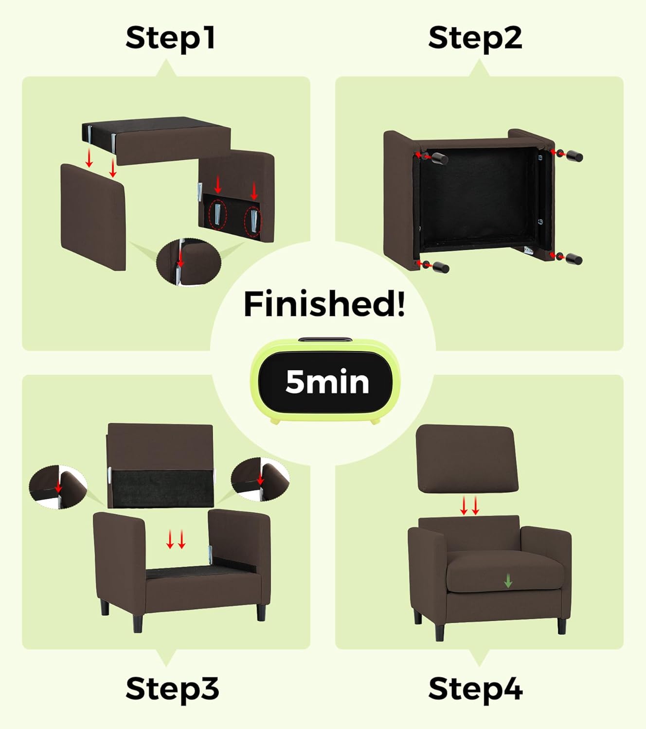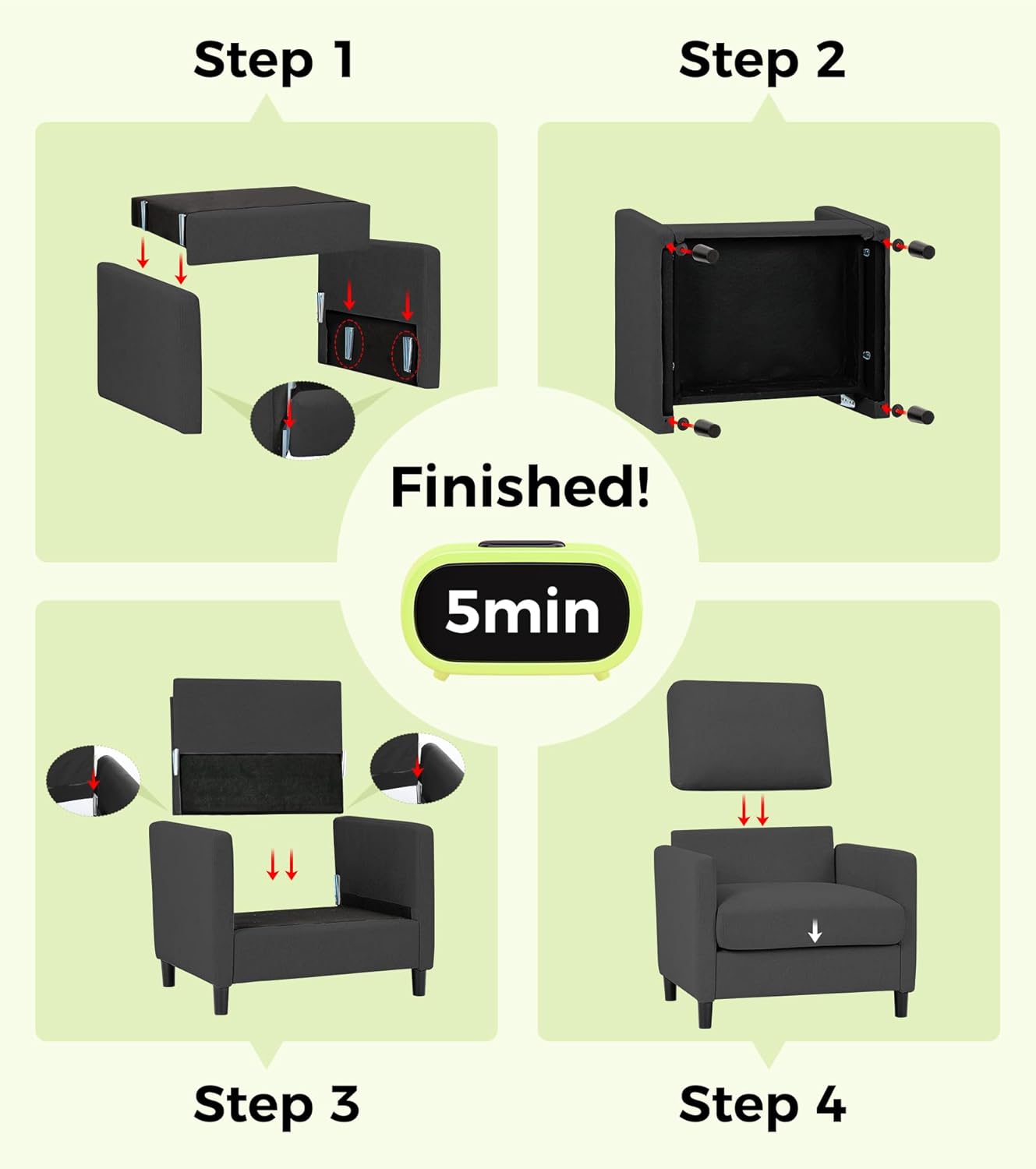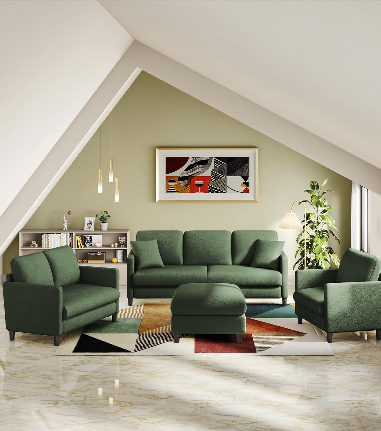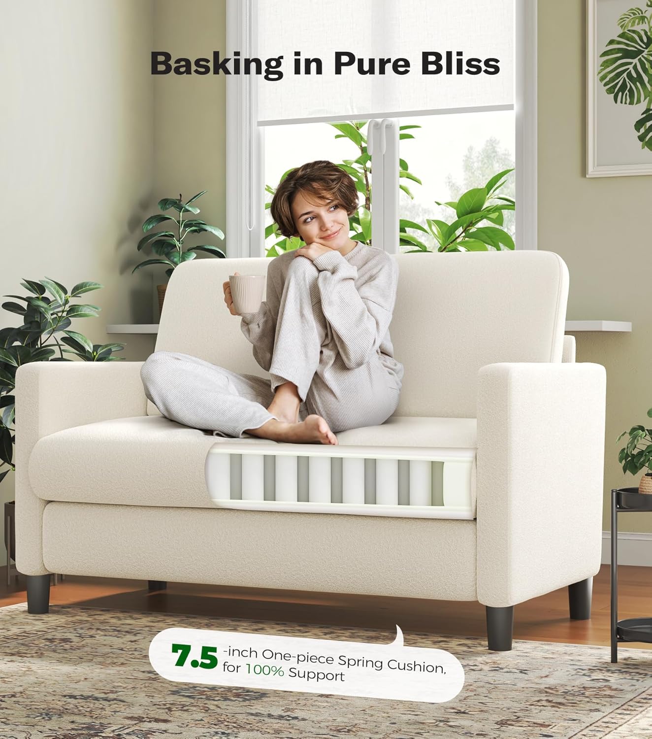 Loveseat Sofa 51" Love Seat, Comfy Corduroy Small Loveseat for Small Spaces, Tool-Free Setup Couch for Bedroom, All-Wood Couches for Living Room, No Pillow Included, Green