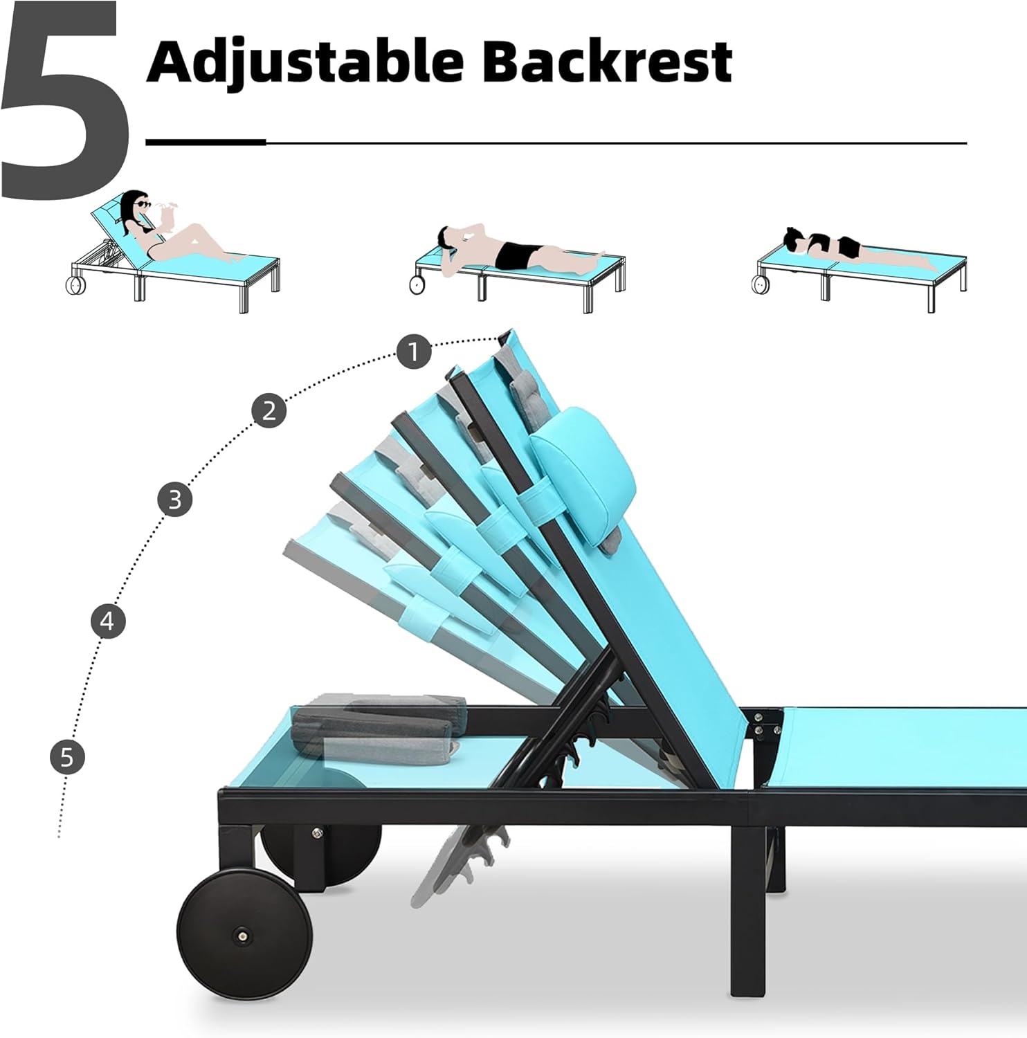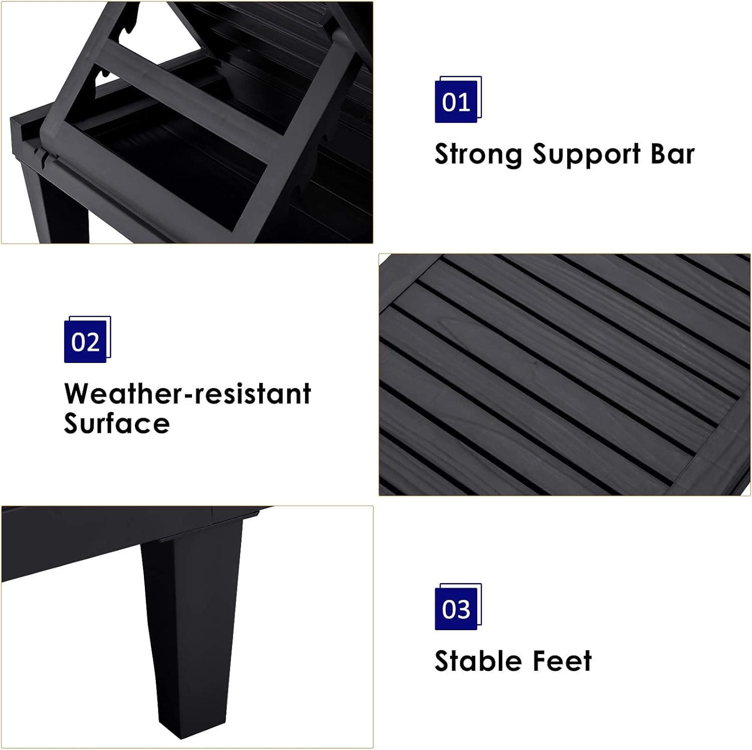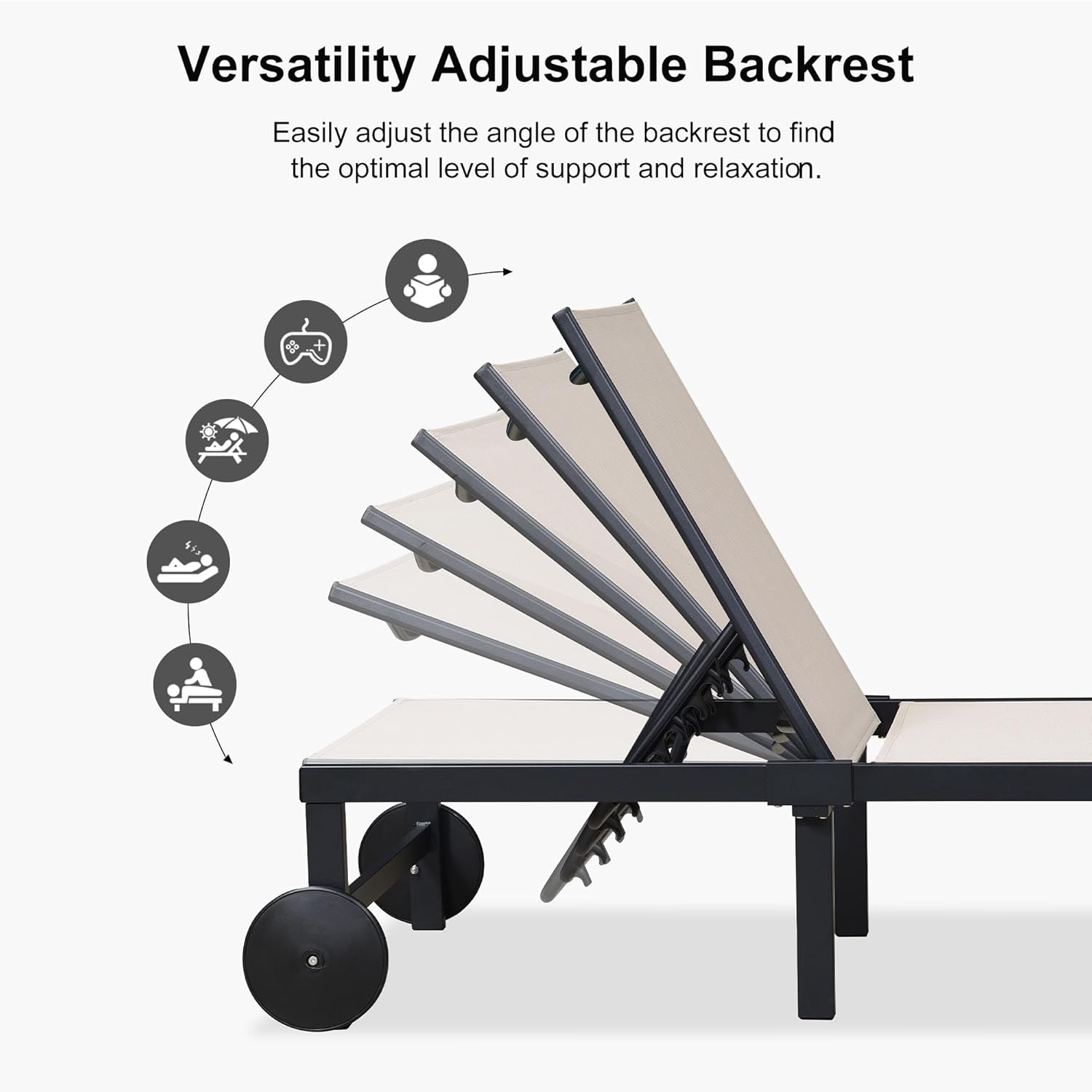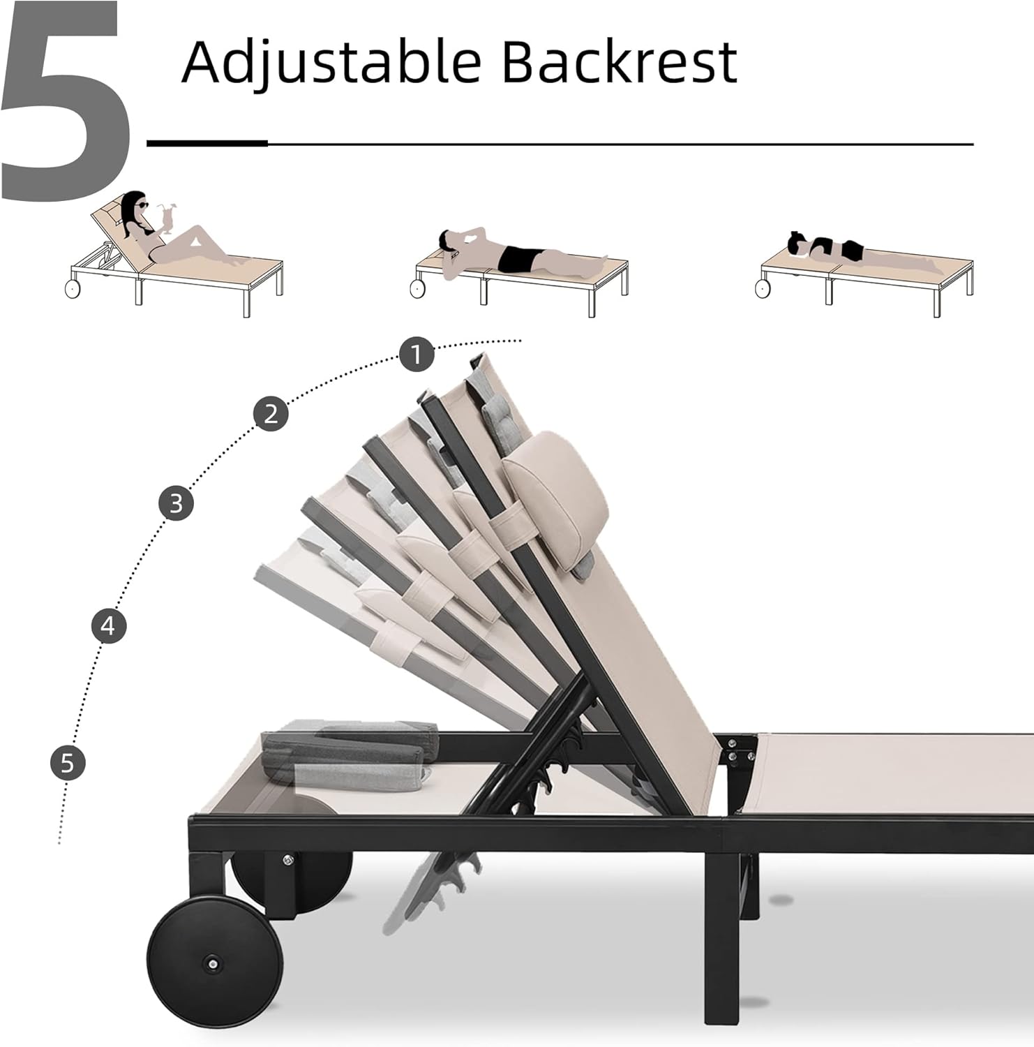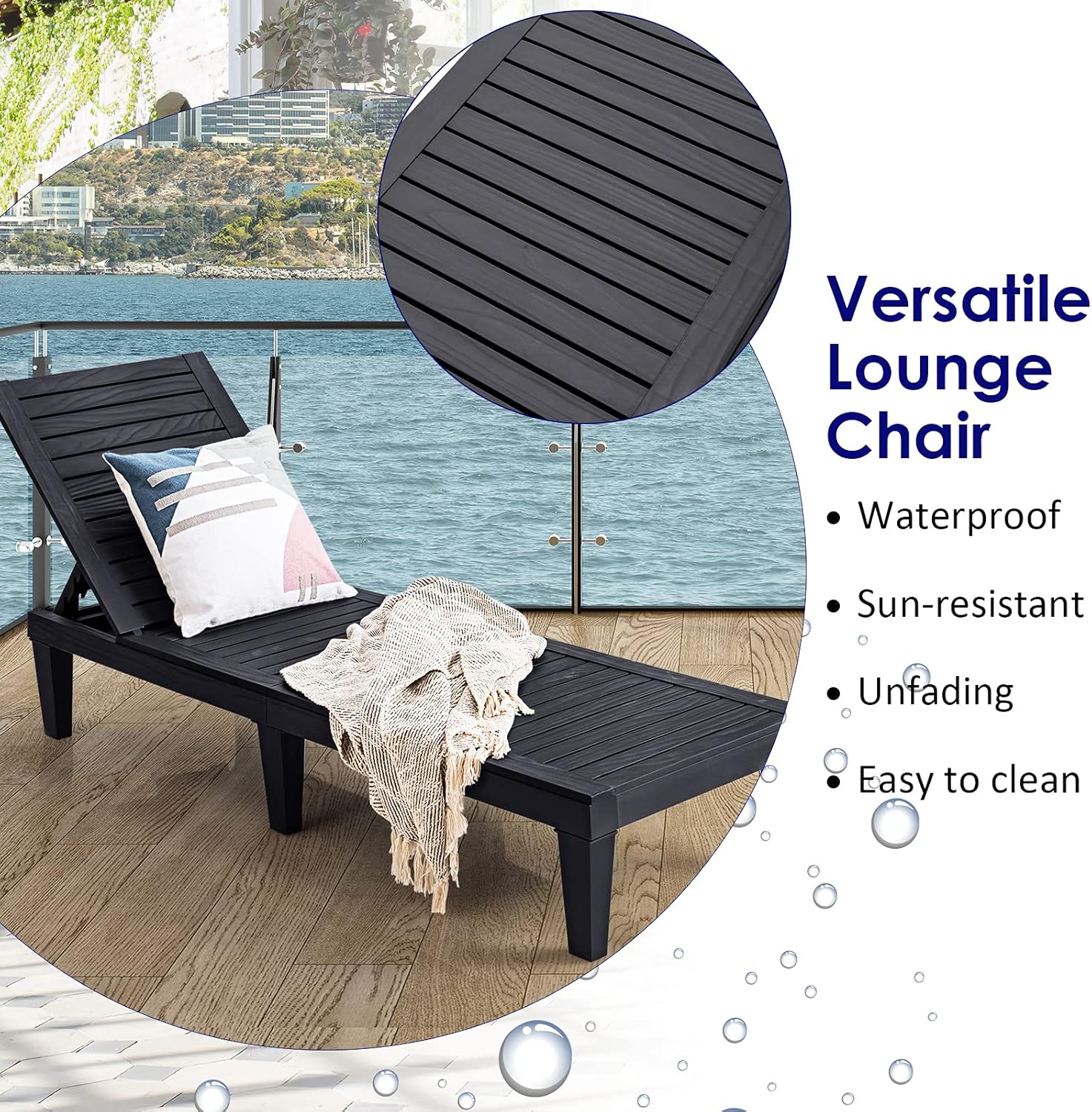 Outdoor Chaise Lounge Chair, Lightweight Patio Lounge Recliner Chair with Adjustable Backrest, 5 Reclining Positions Chaise Lounger for Patio, Beach, Balcony, Poolside, Backyard (1, Black)