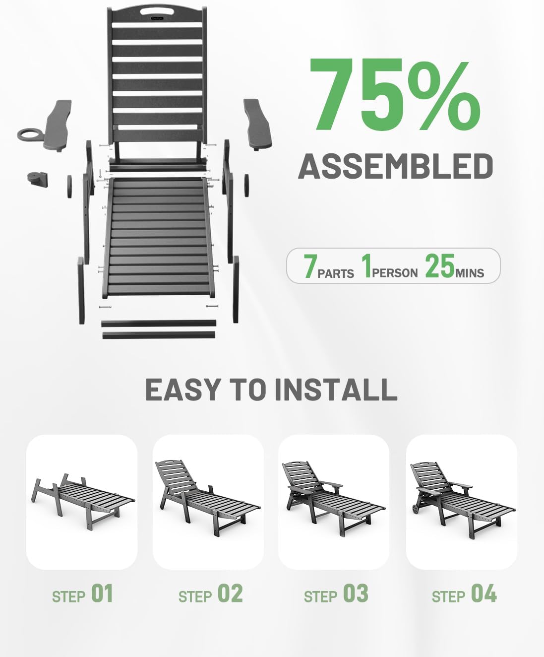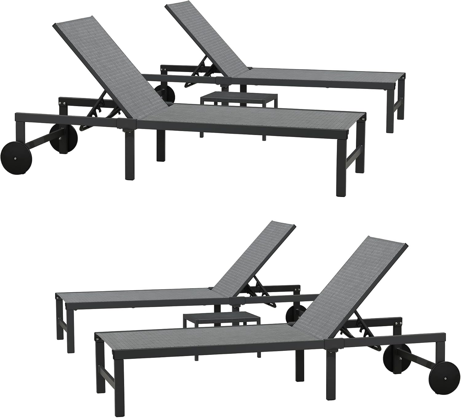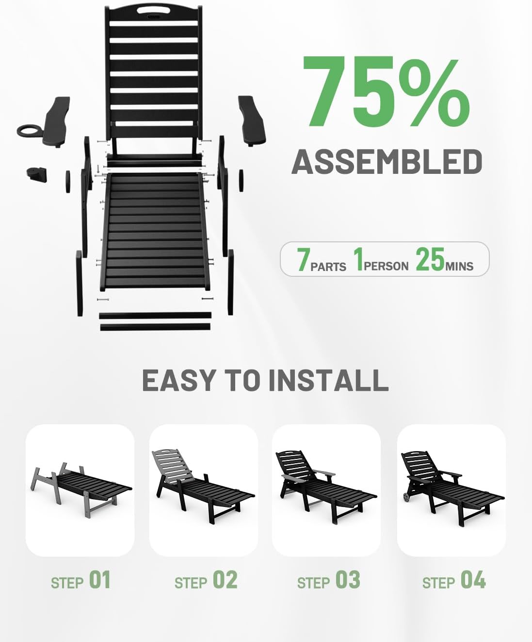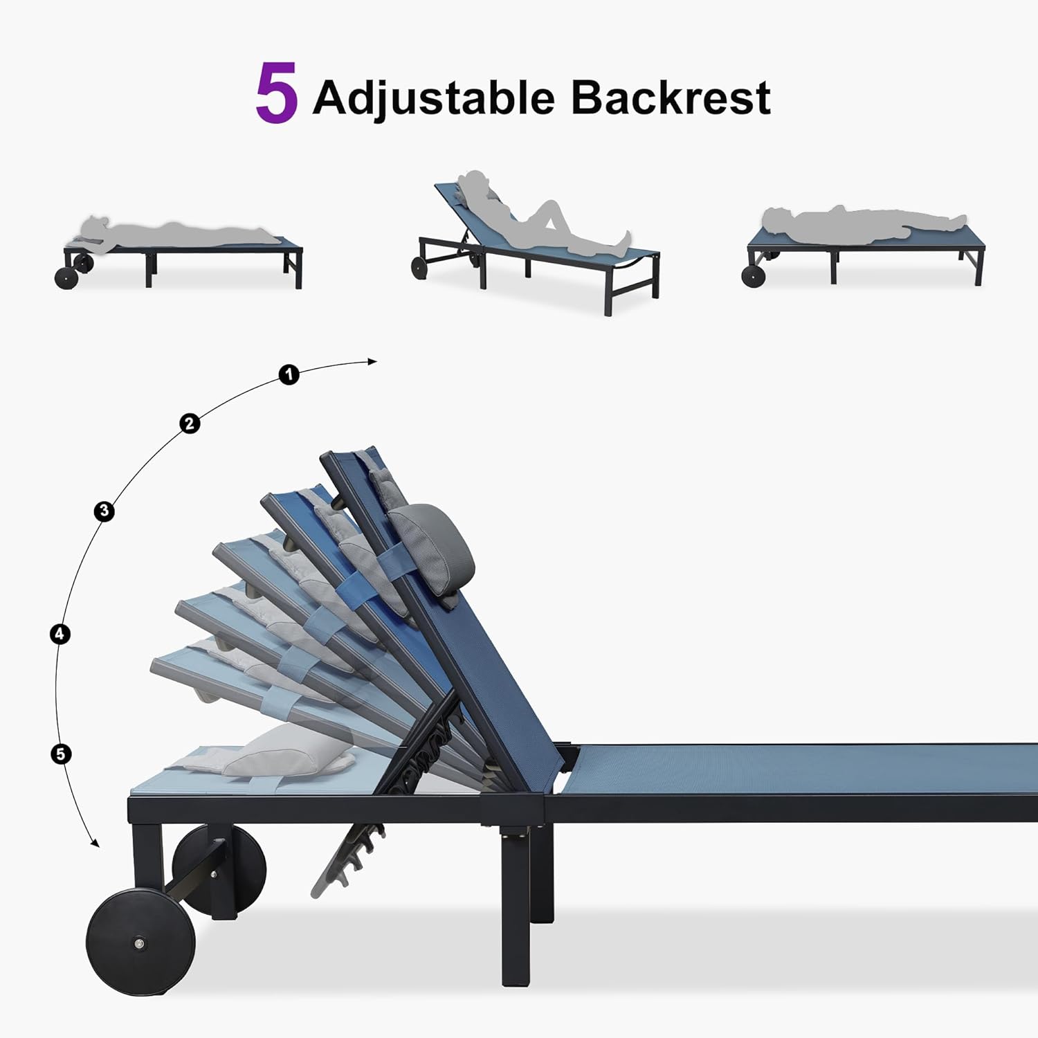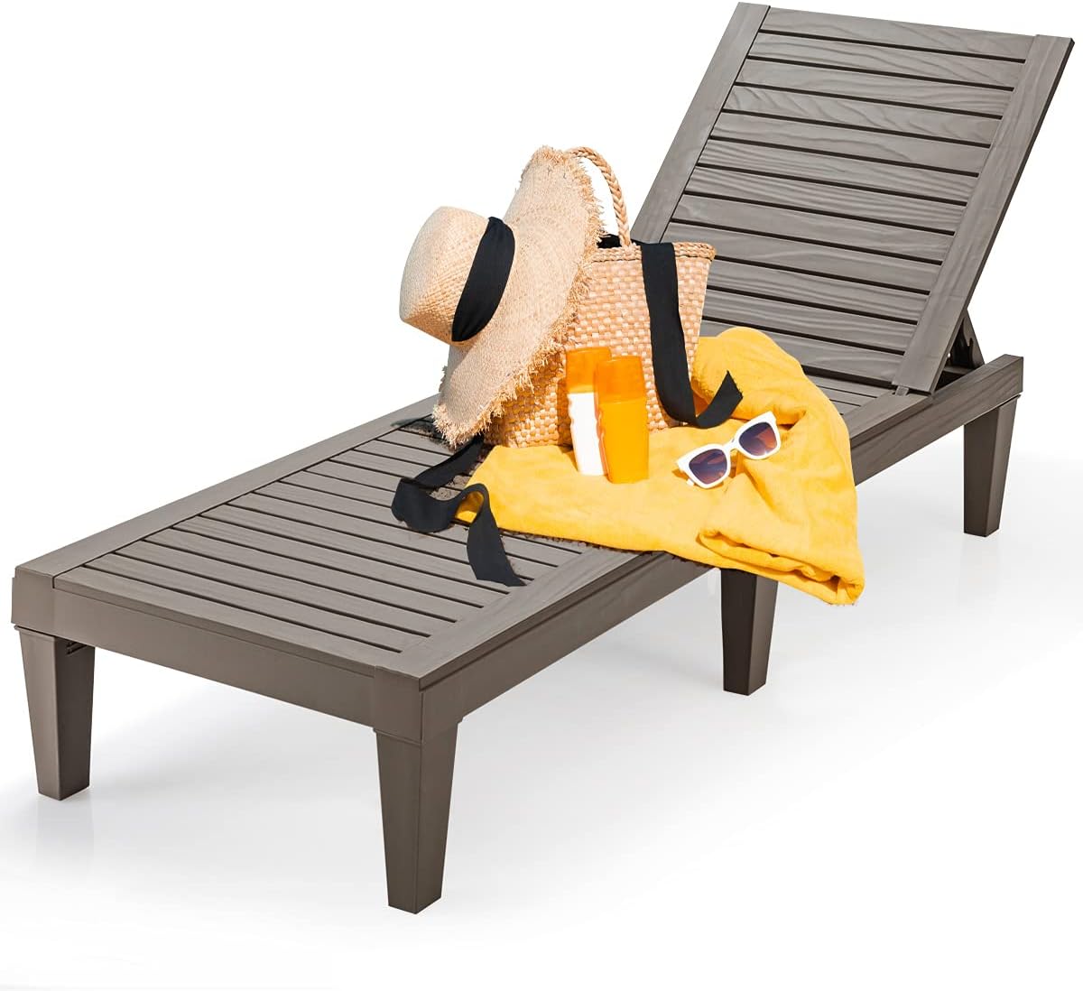 Outdoor Chaise Lounge Chair, Lightweight Patio Lounge Recliner Chair with Adjustable Backrest, 5 Reclining Positions Chaise Lounger for Patio, Beach, Balcony, Poolside, Backyard (1, Black)