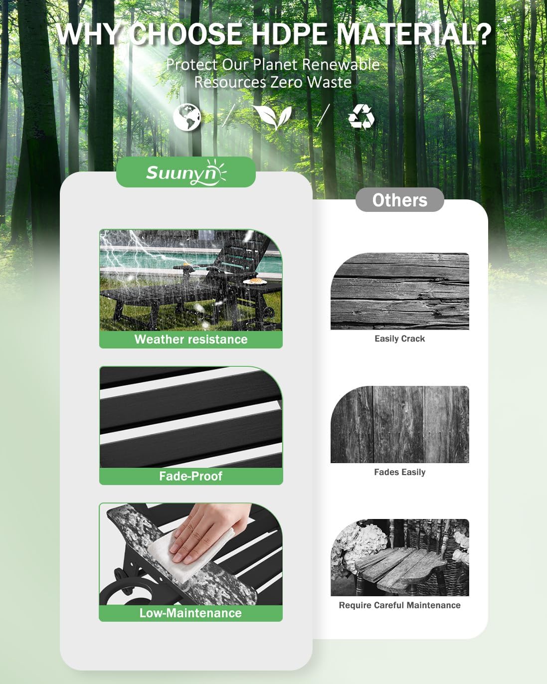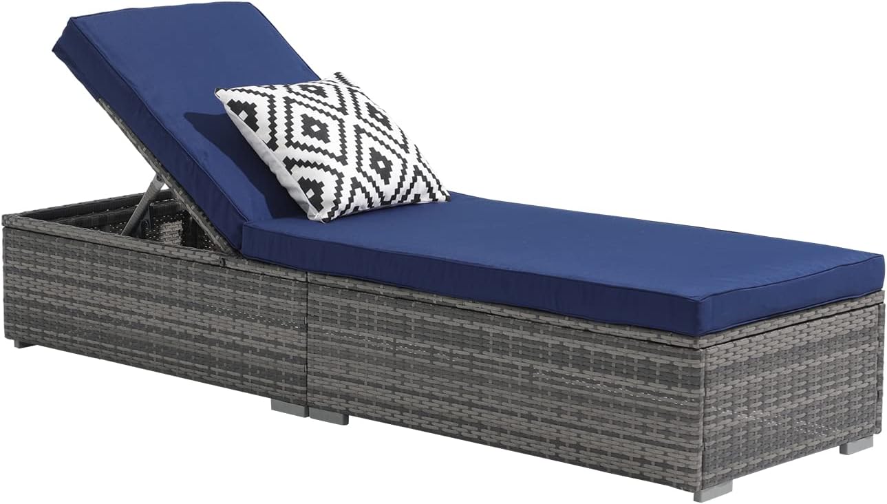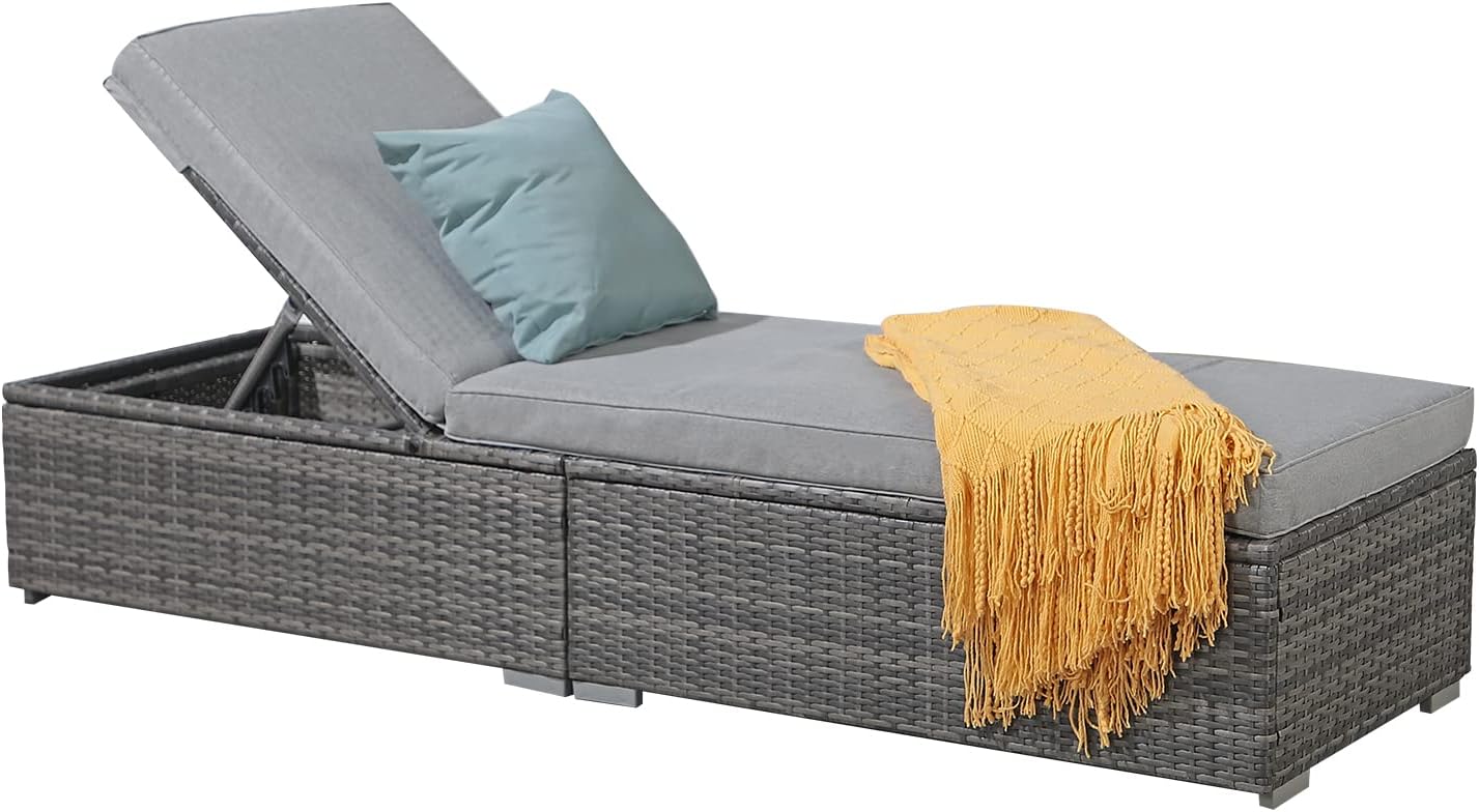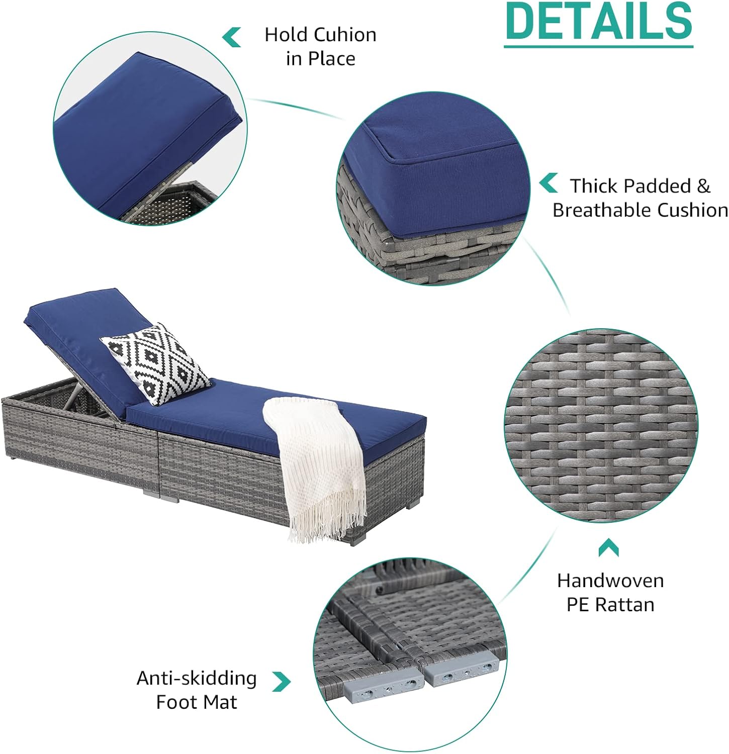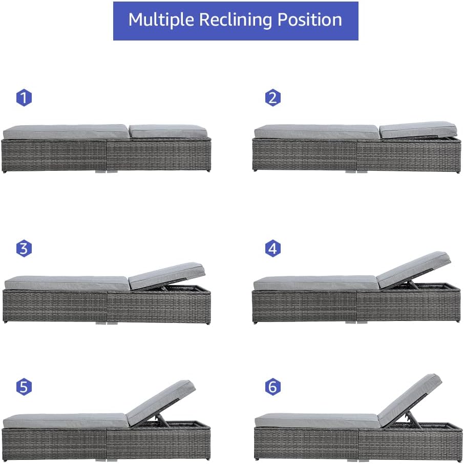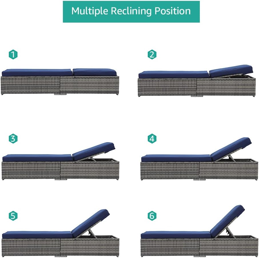 Outdoor Chaise Lounge Chair, Lightweight Patio Lounge Recliner Chair with Adjustable Backrest, 5 Reclining Positions Chaise Lounger for Patio, Beach, Balcony, Poolside, Backyard (1, Black)