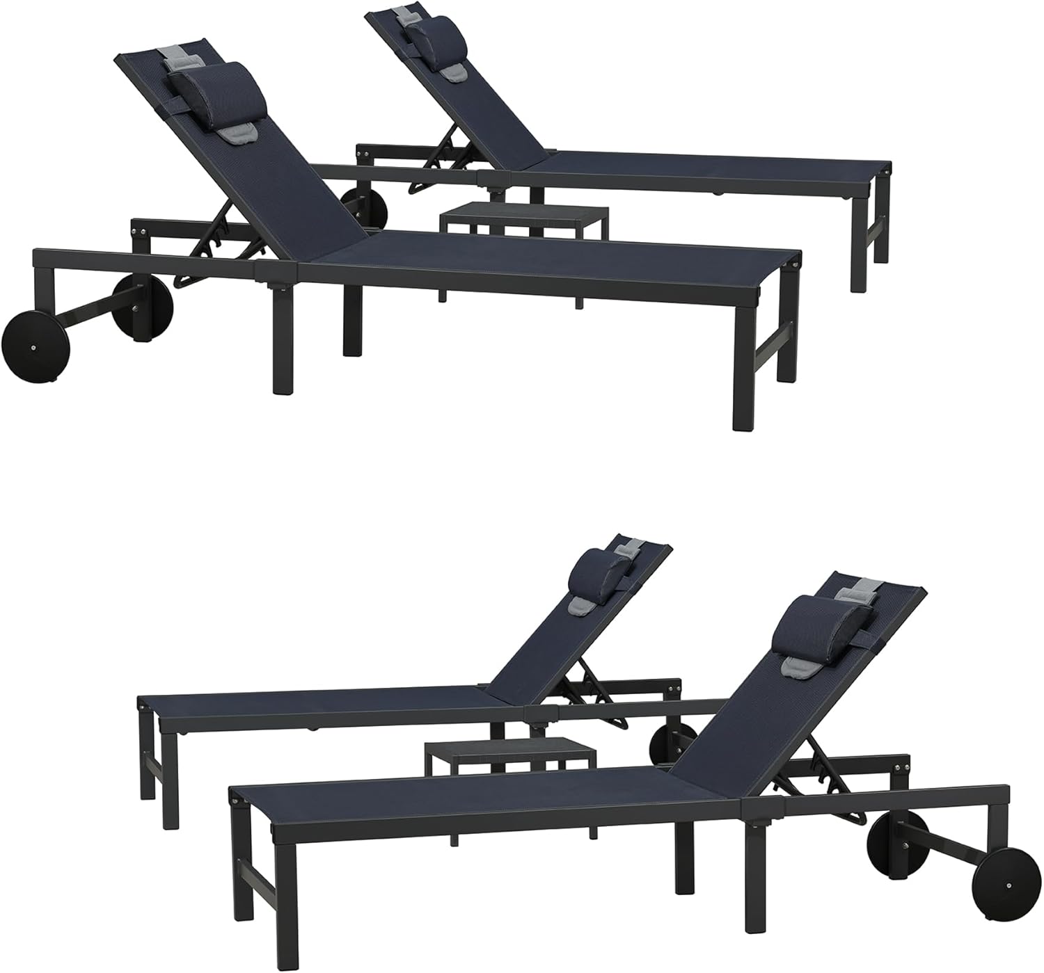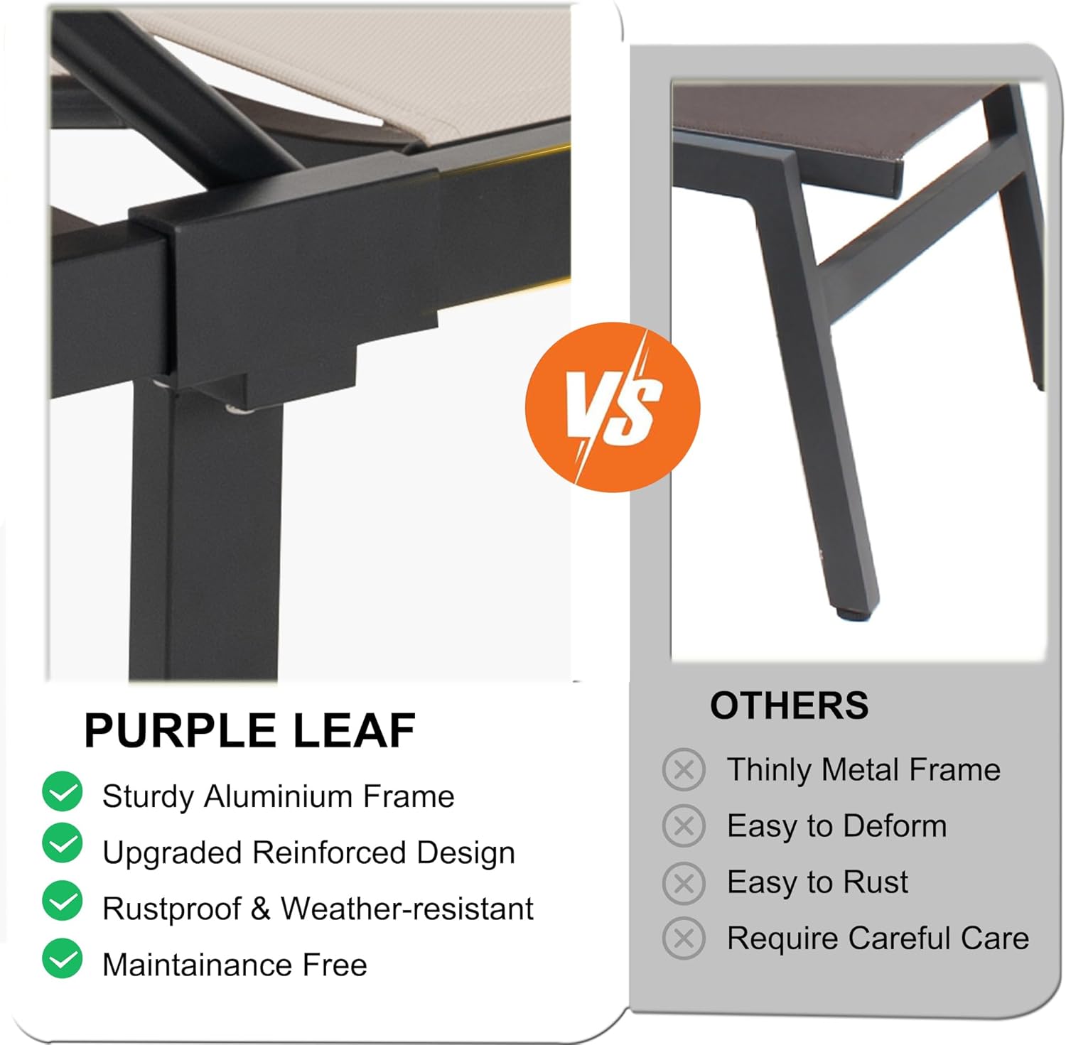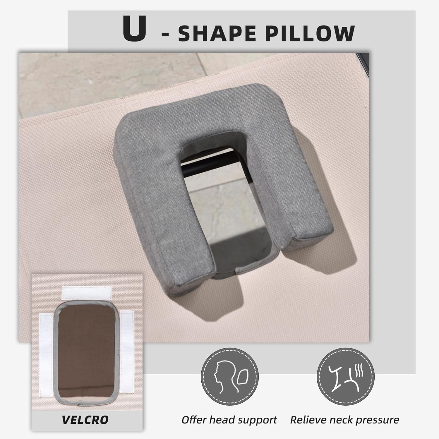 PURPLE LEAF Patio Tanning Lounge Chair Set with Face Down Hole Outdoor Aluminum Adjustable Reclining Chairs Wheels Pillows and Table for Poolside Beach Sunbathing Lounger, Beige