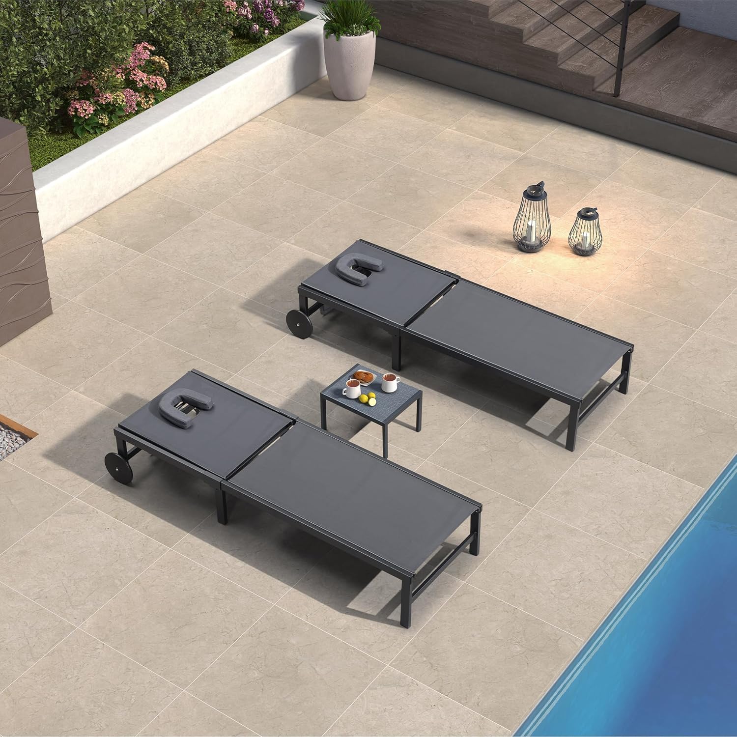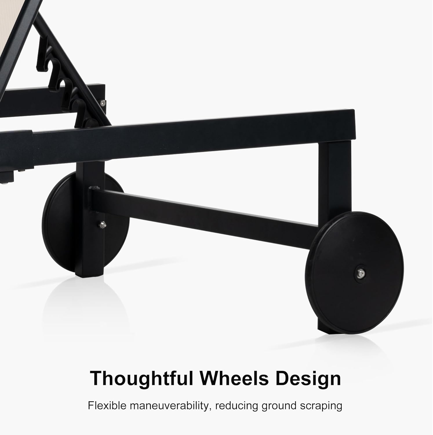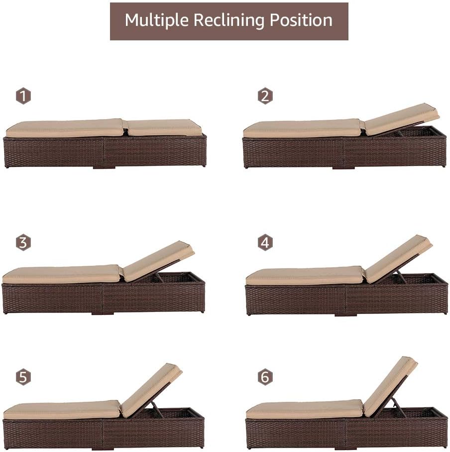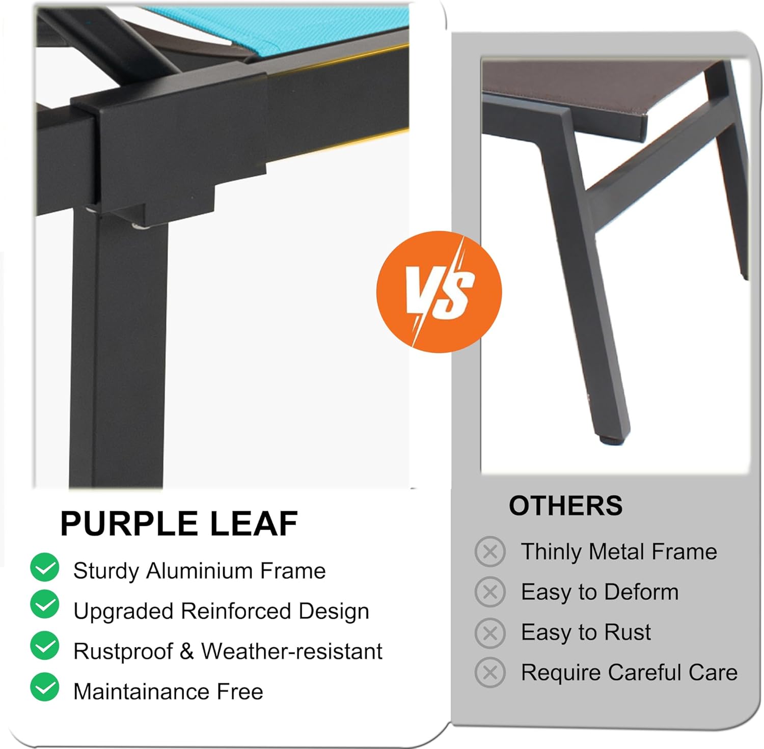 PURPLE LEAF Patio Tanning Lounge Chair Set with Face Down Hole Outdoor Aluminum Adjustable Reclining Chairs Wheels Pillows and Table for Poolside Beach Sunbathing Lounger, Beige