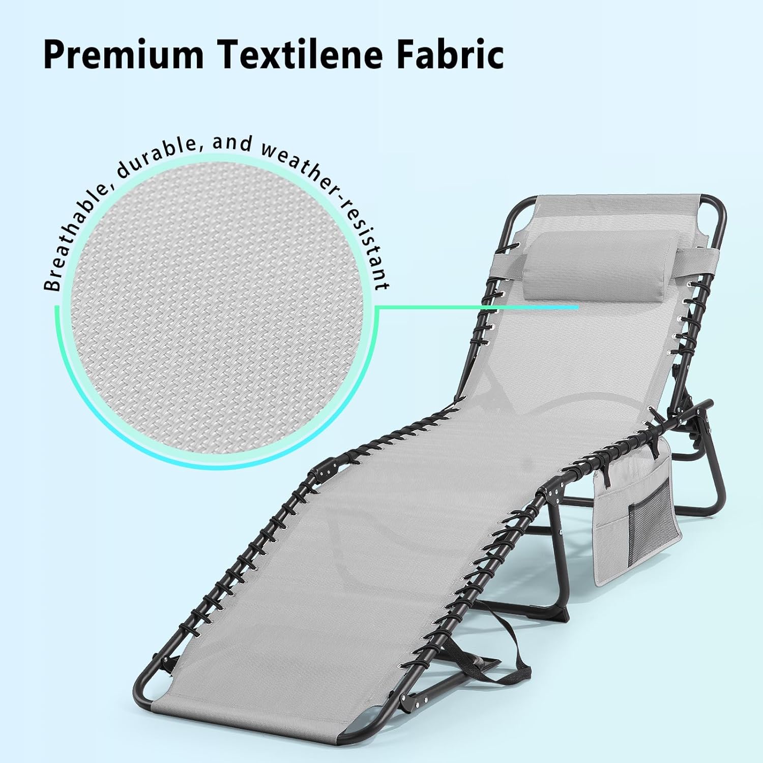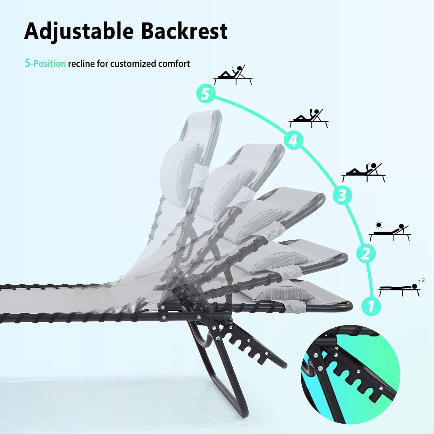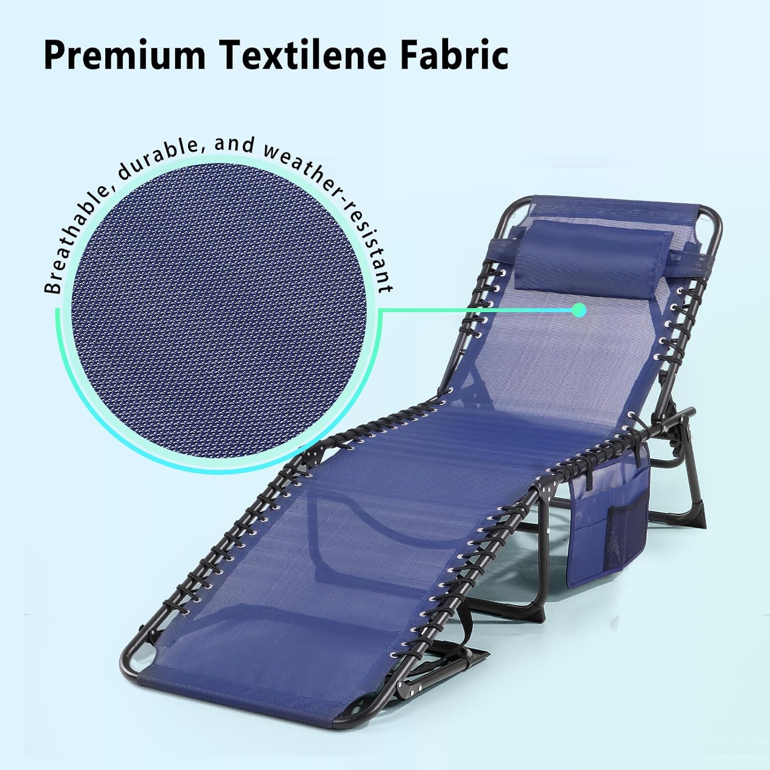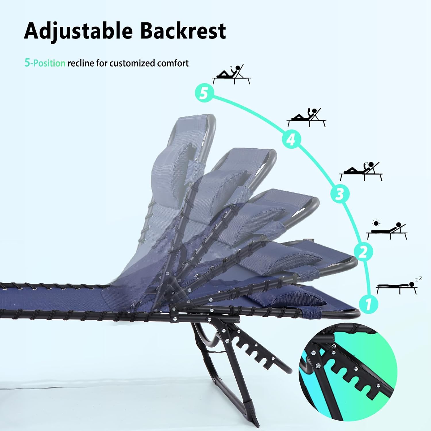 2 Pack Outdoor Chaise Lounge Chair - Portable Folding Patio Pool Lounge Chair, 5 Positions Adjustable Reclining Camping Chair with Side Table,Shoulder Strap, Pillow for Beach Sunbathing Lawn