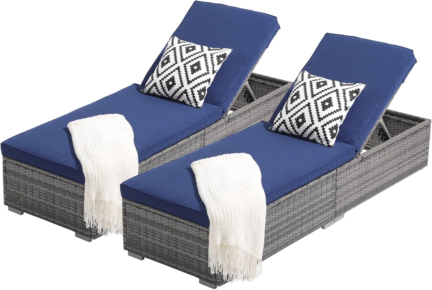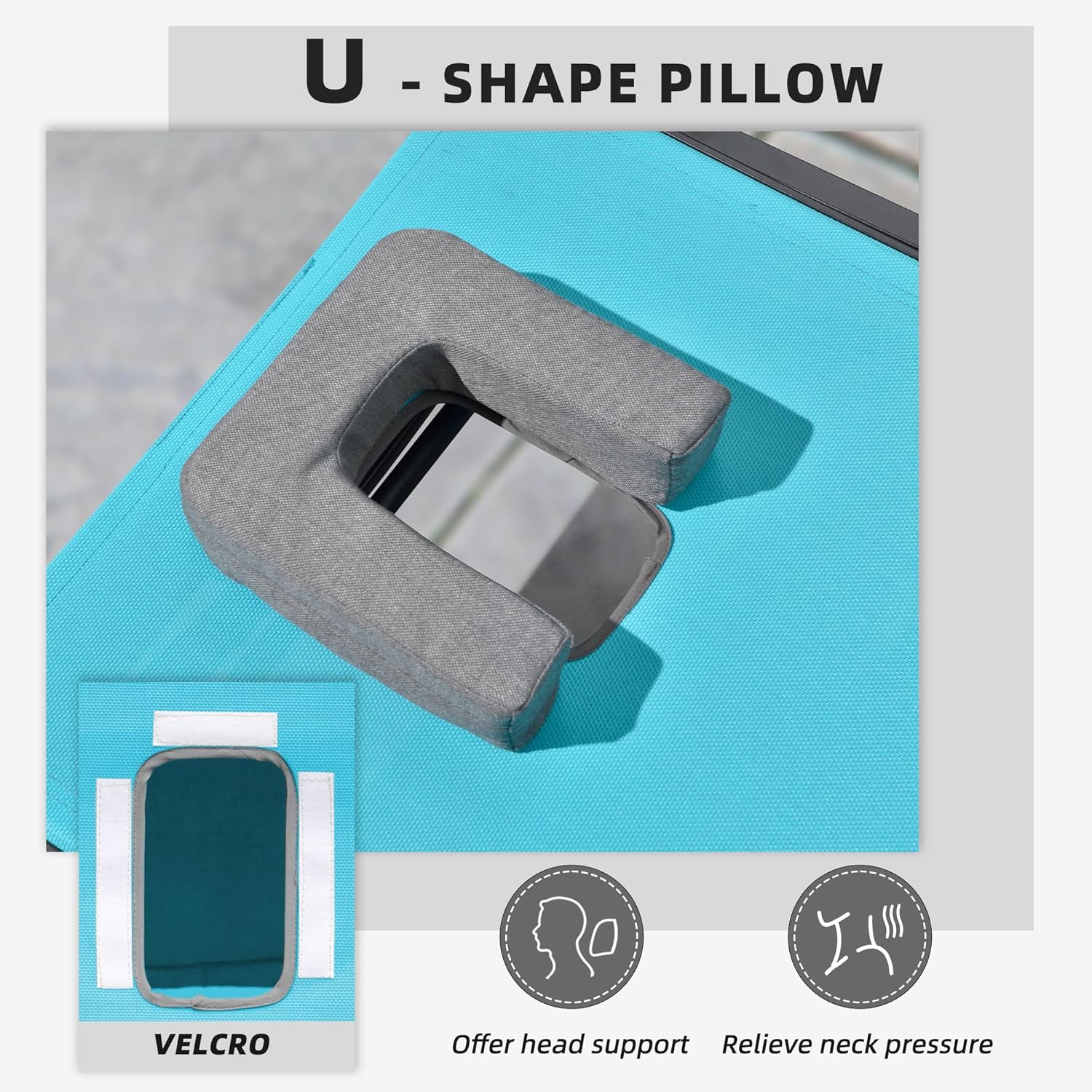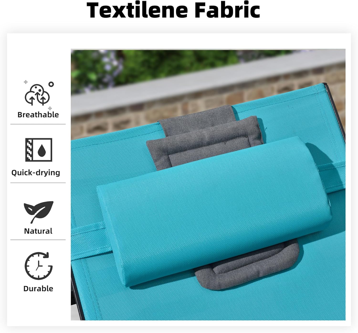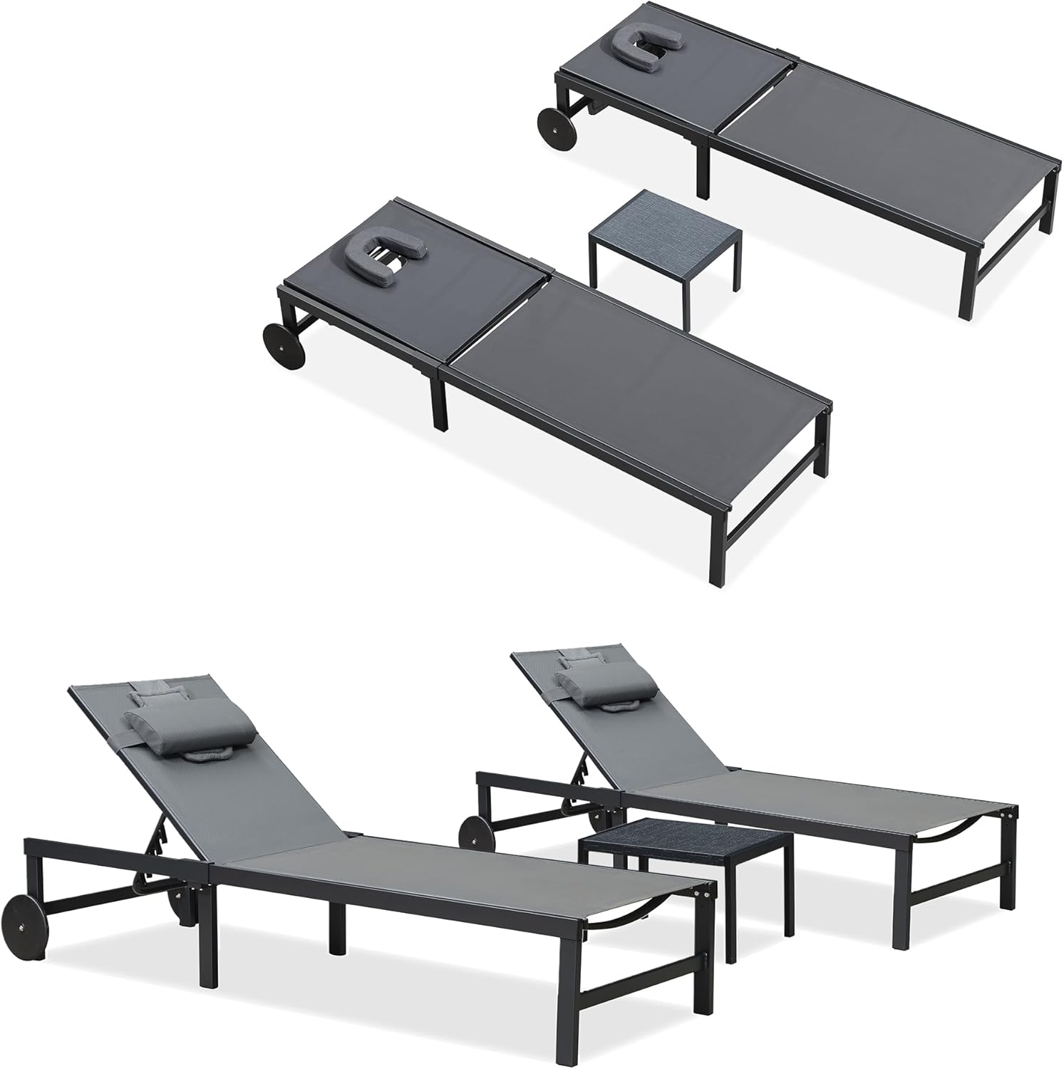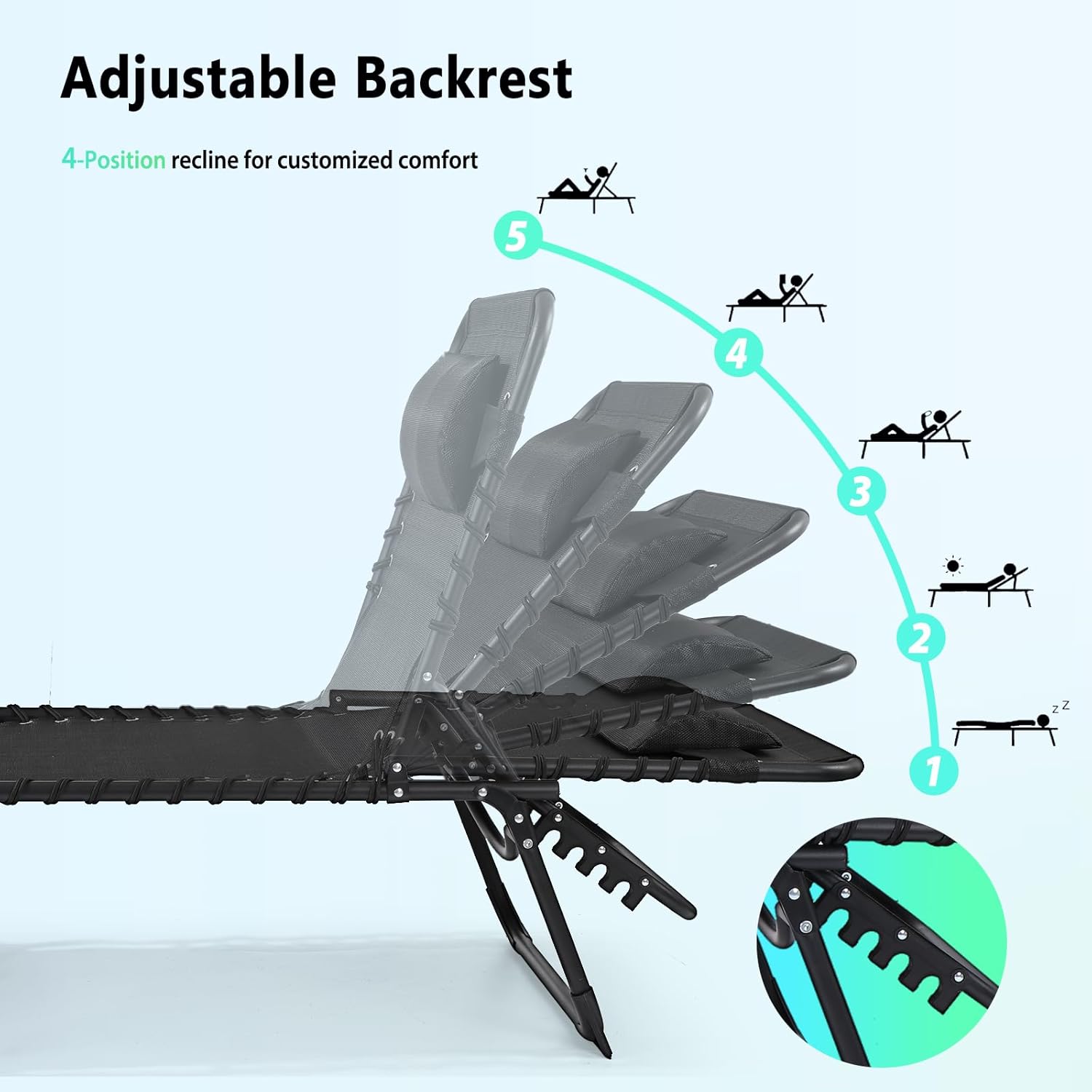 2 Pack Outdoor Chaise Lounge Chair - Portable Folding Patio Pool Lounge Chair, 5 Positions Adjustable Reclining Camping Chair with Side Table,Shoulder Strap, Pillow for Beach Sunbathing Lawn