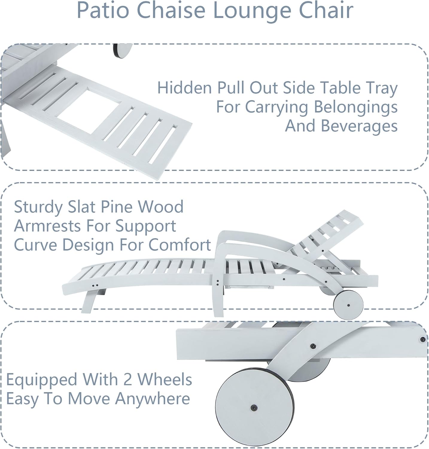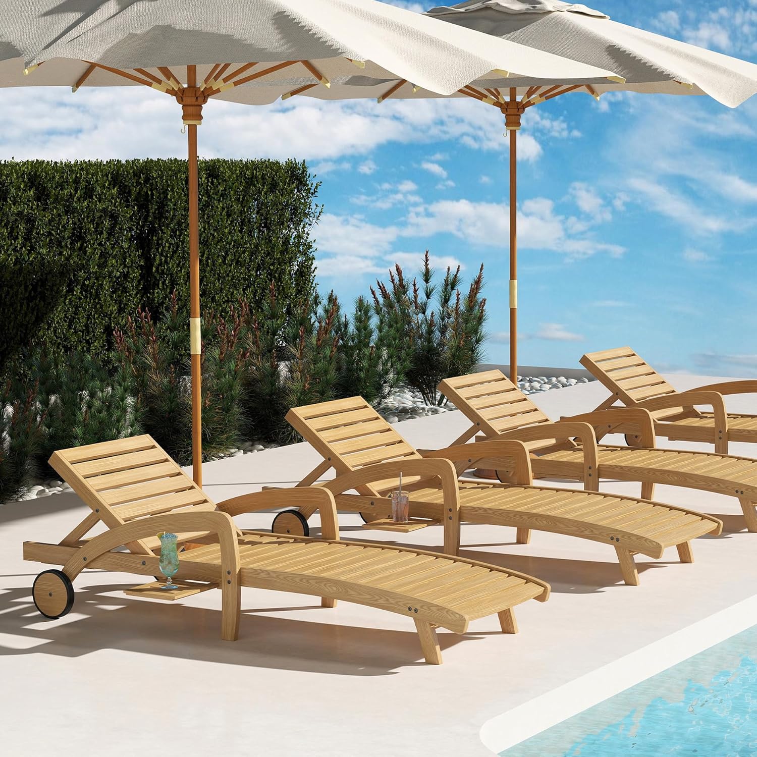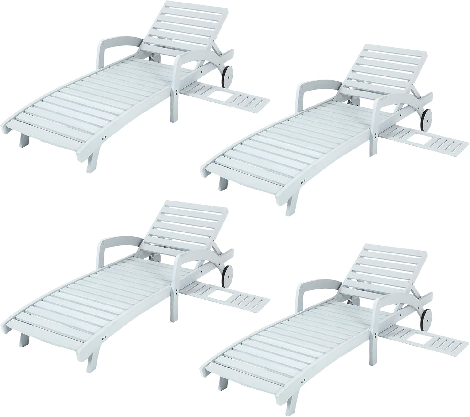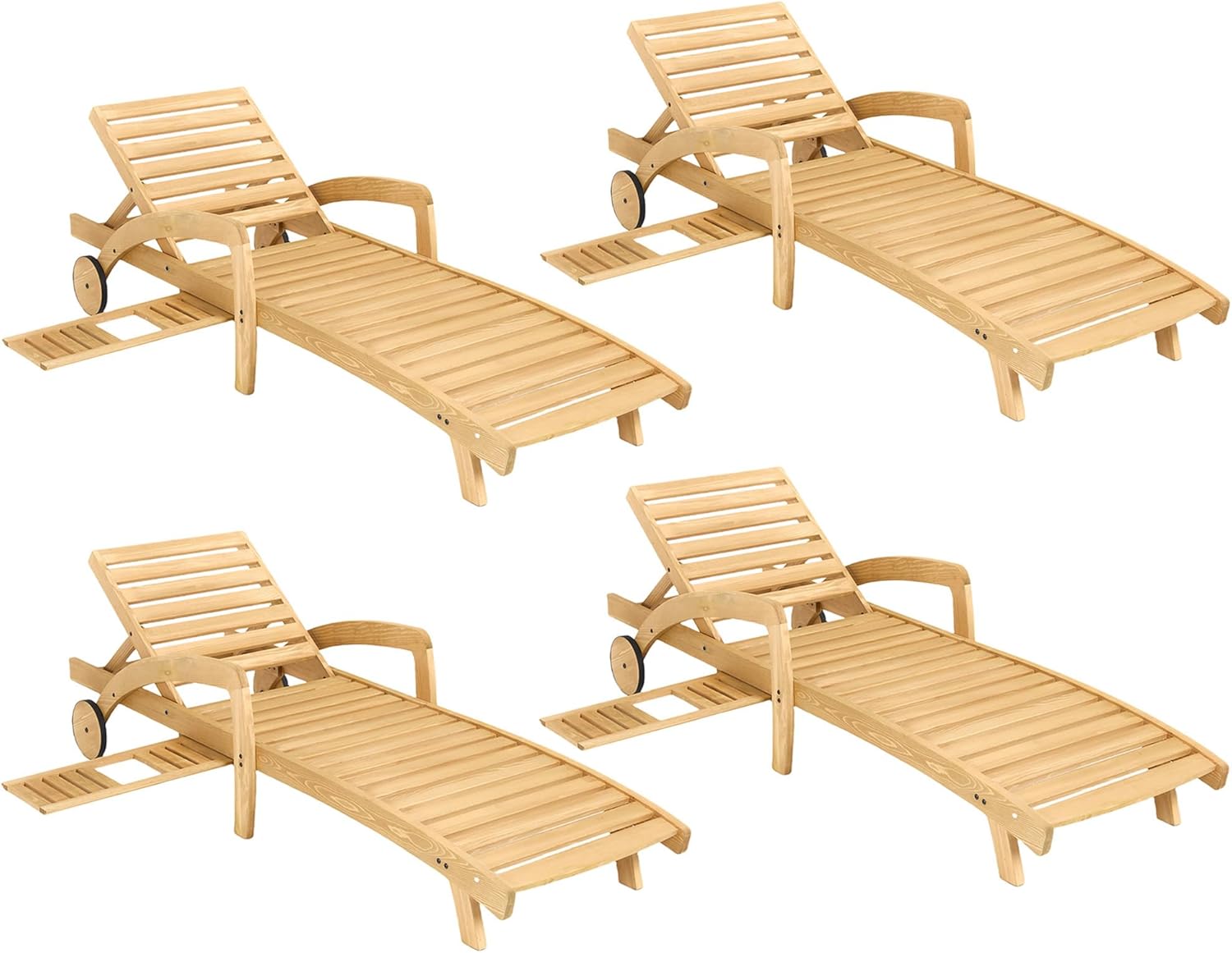 Pool Chaise Lounge Chairs Set of 4 5-Position Adjustable Outdoor Patio Lounge Chairs Wood Reclining Chaise Lounger Chair with Pullout Side Table