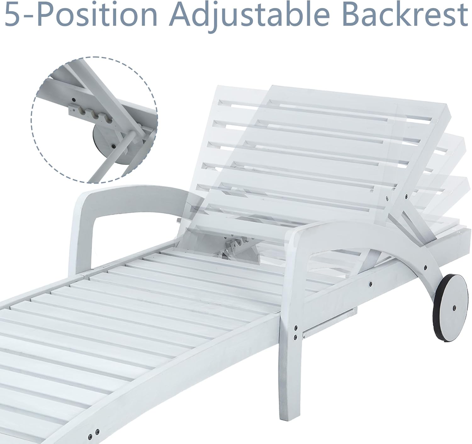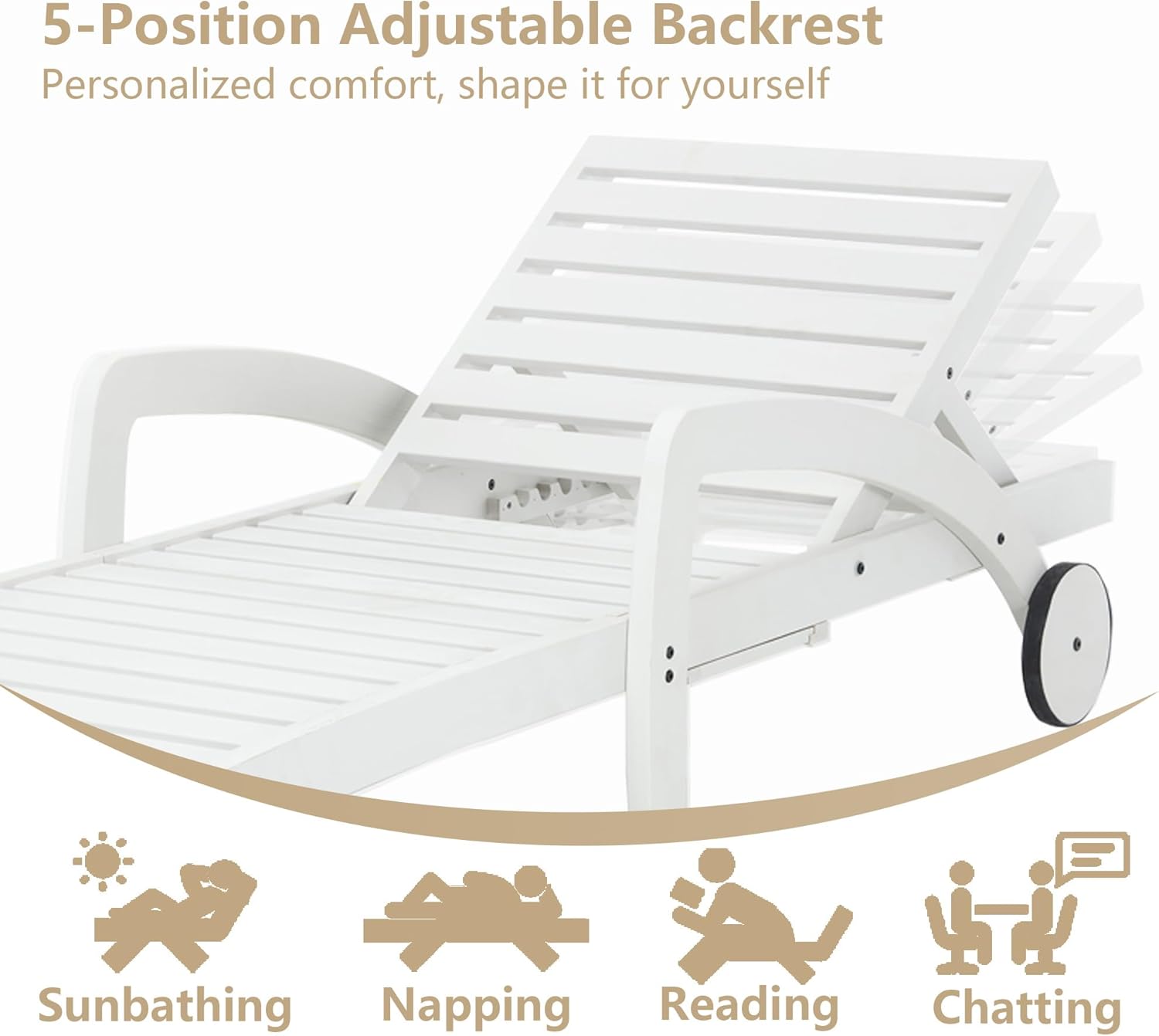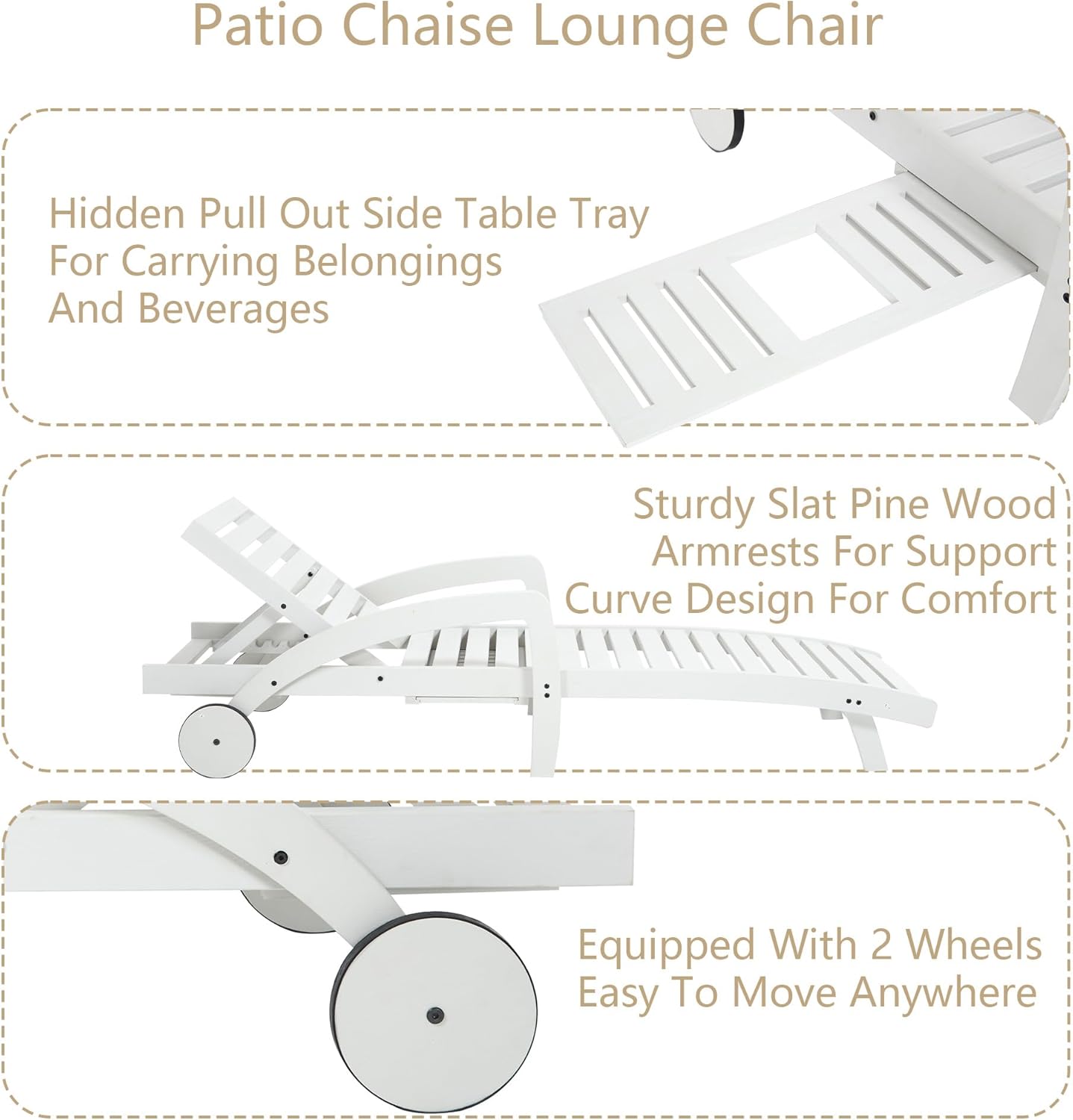 Pool Chaise Lounge Chairs Set of 4 5-Position Adjustable Outdoor Patio Lounge Chairs Wood Reclining Chaise Lounger Chair with Pullout Side Table