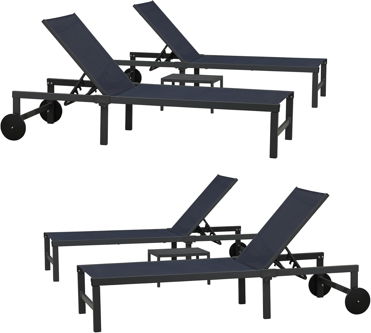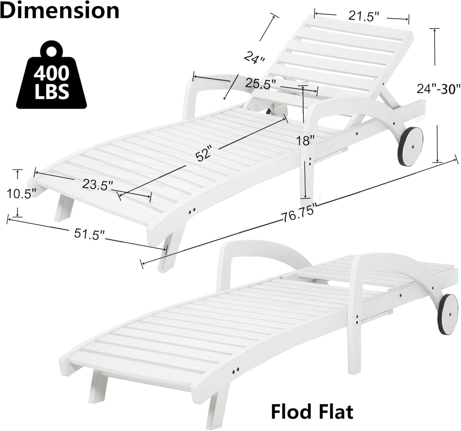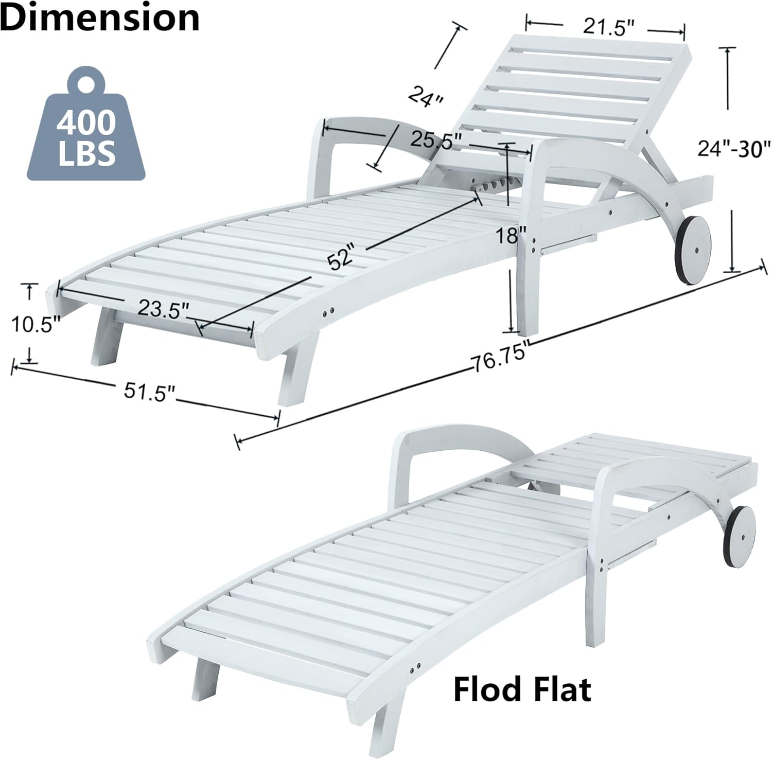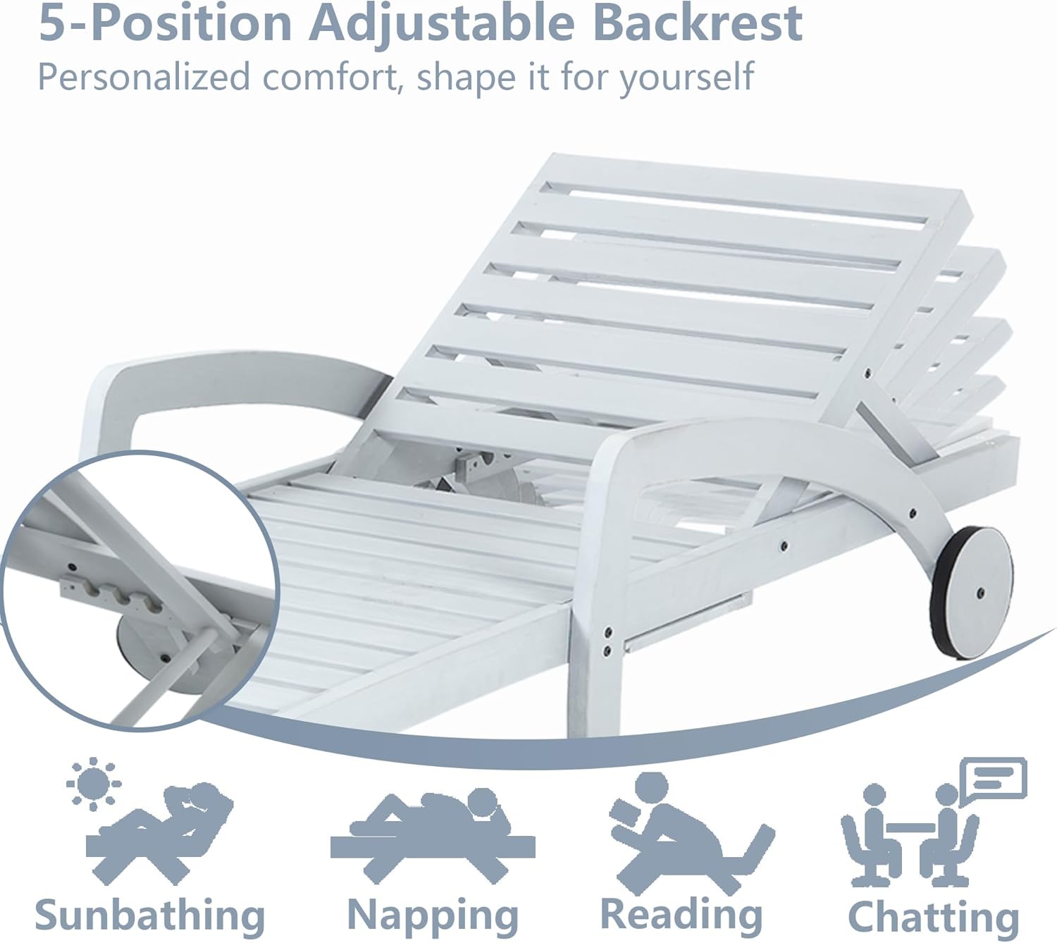 Pool Chaise Lounge Chairs Set of 4 5-Position Adjustable Outdoor Patio Lounge Chairs Wood Reclining Chaise Lounger Chair with Pullout Side Table