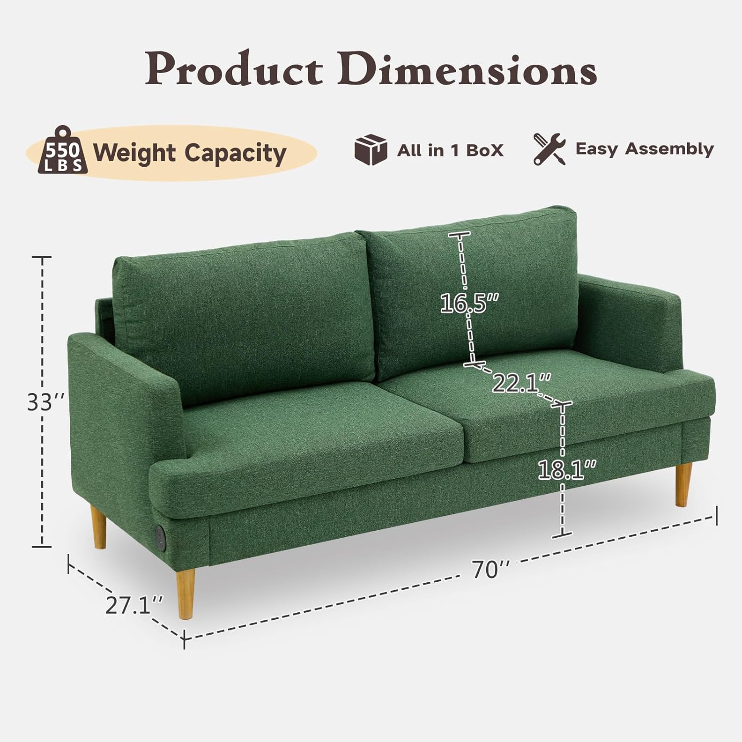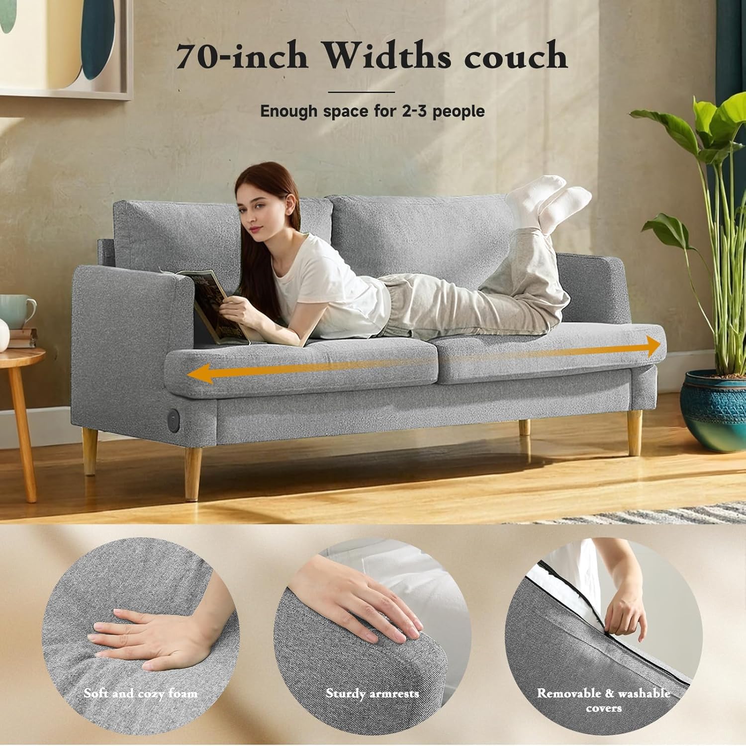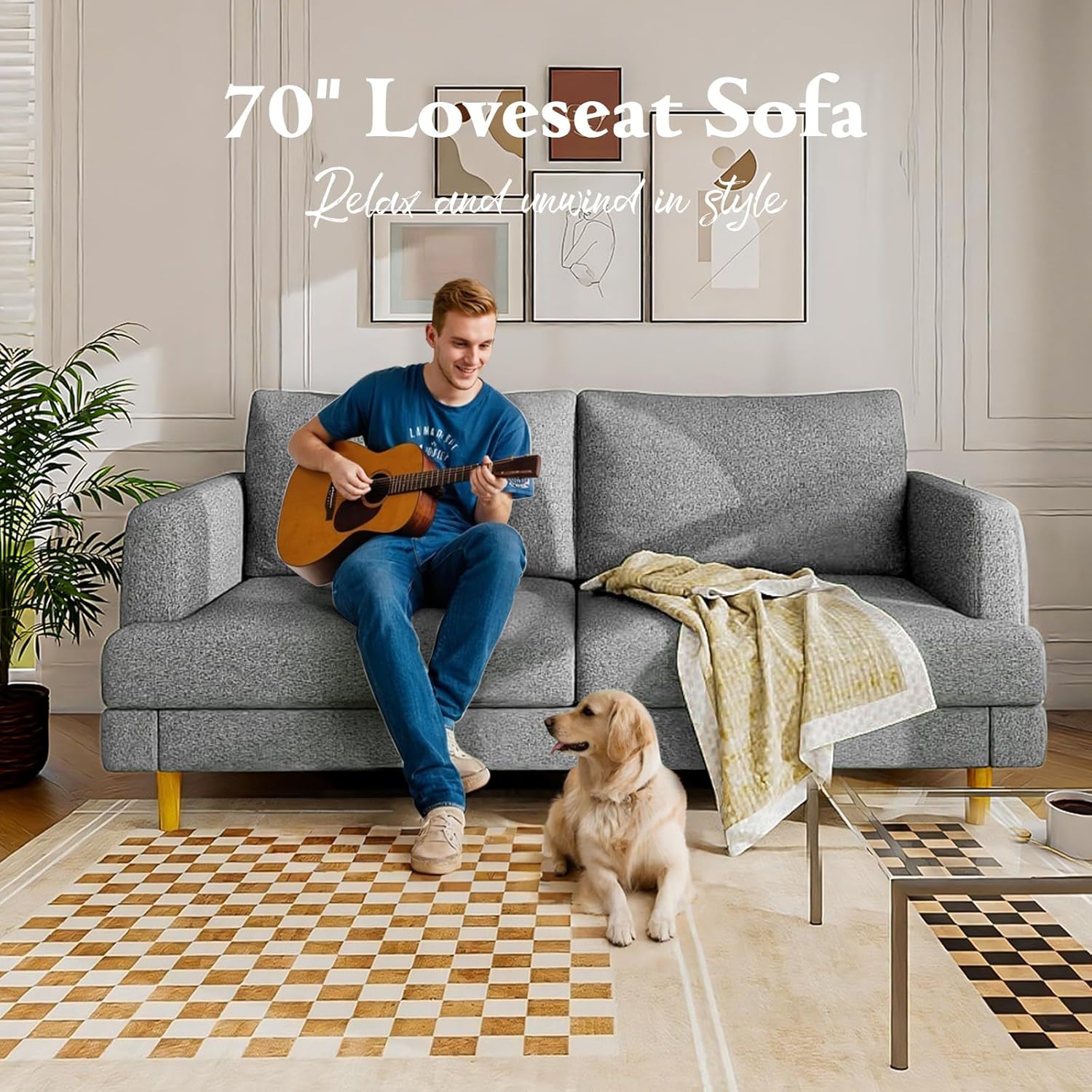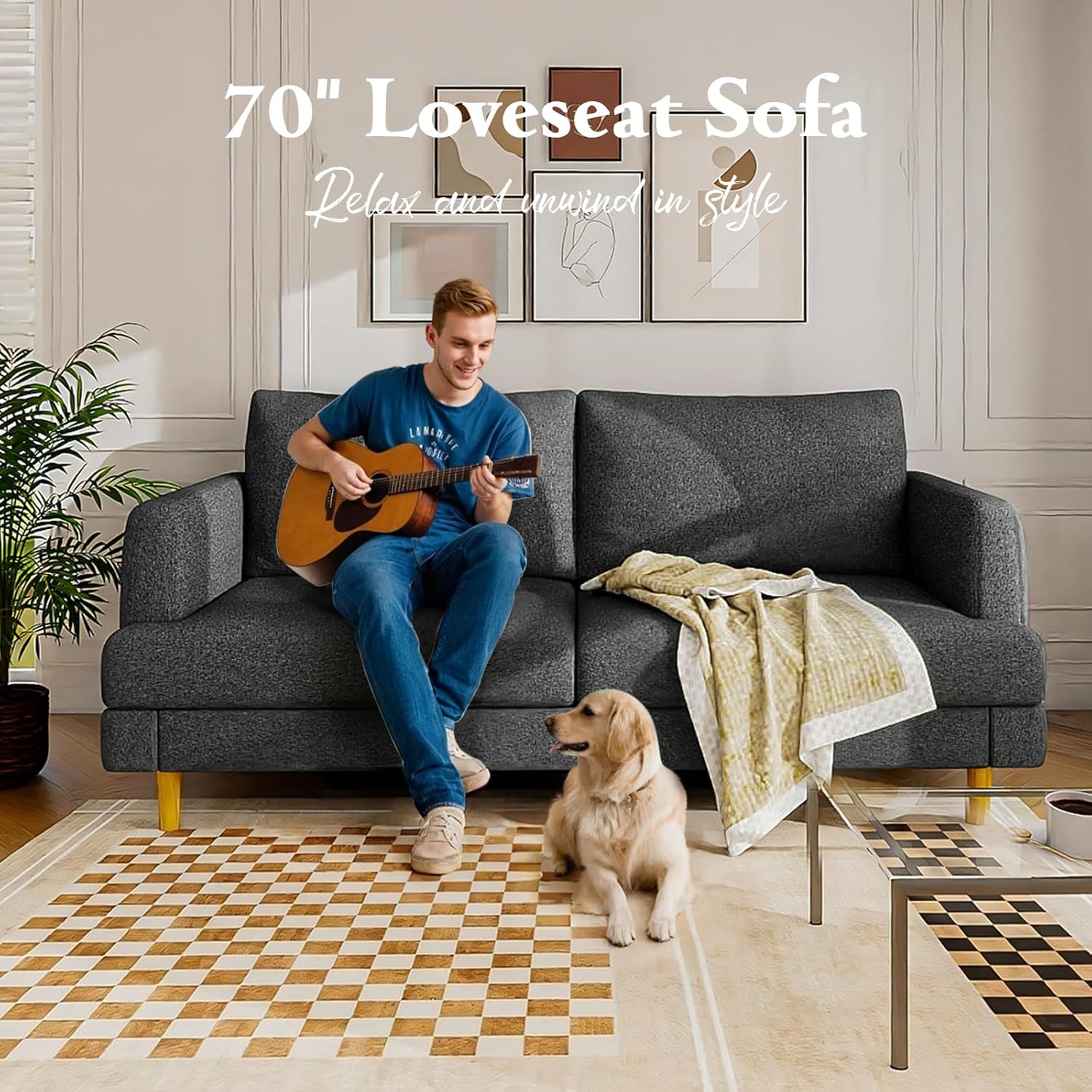 Loveseat Sofa Couch for Living Room with USB Type C Ports – Dark Gray Upholstered 70" Small Couches for Bedroom, Office or Apartment–Modern 2-Seater Deep Seating with Soft Cushions & Sturdy Frame
